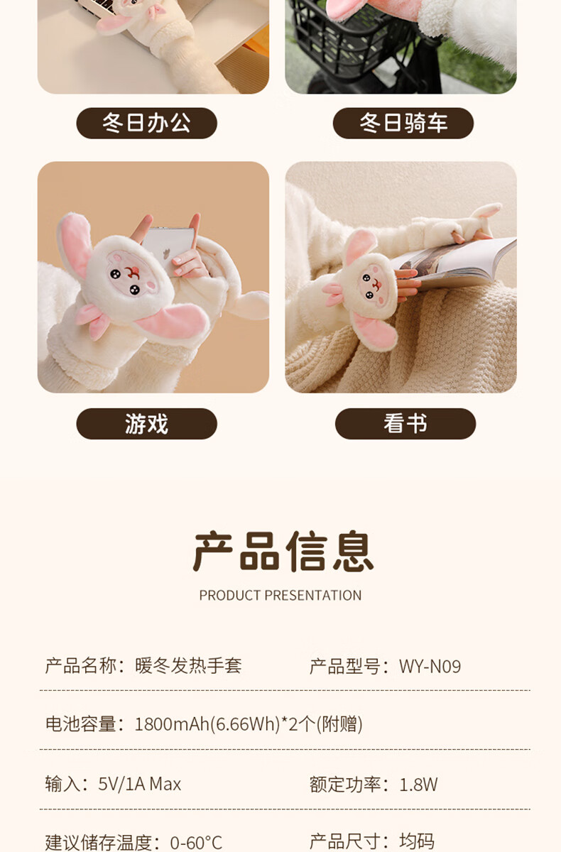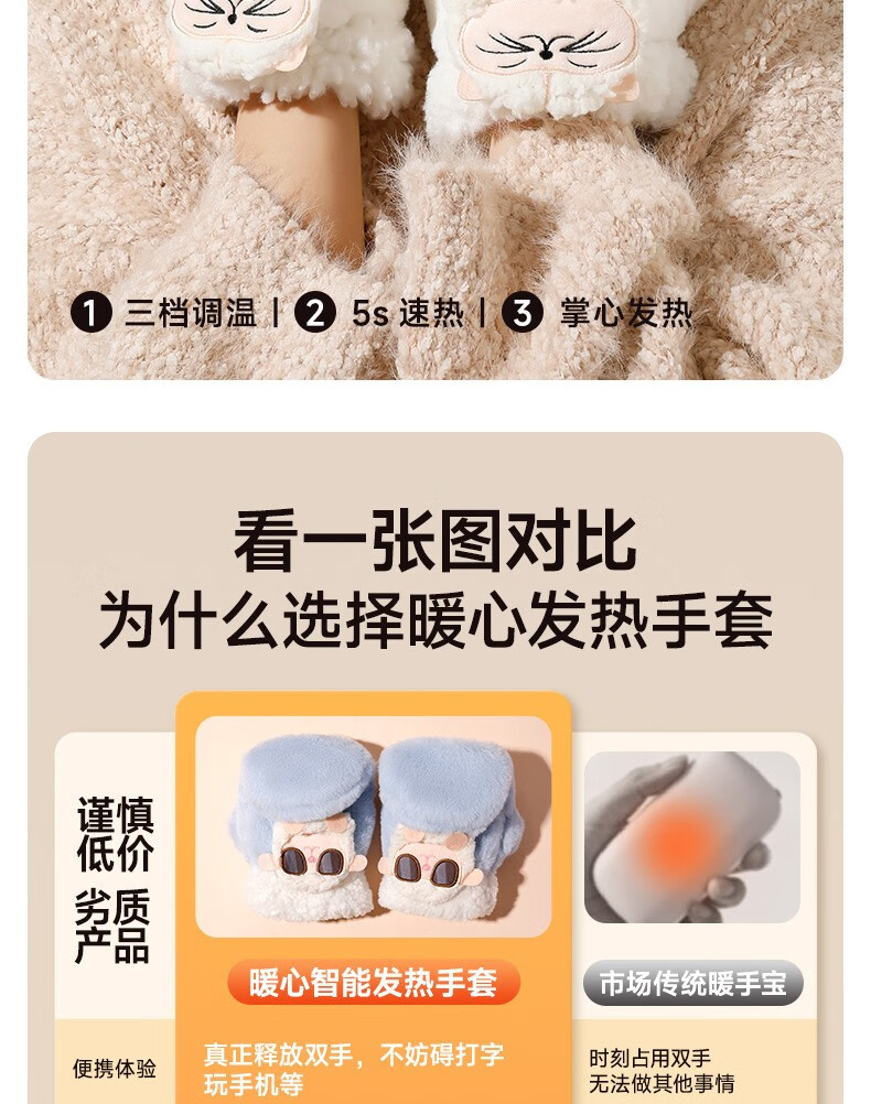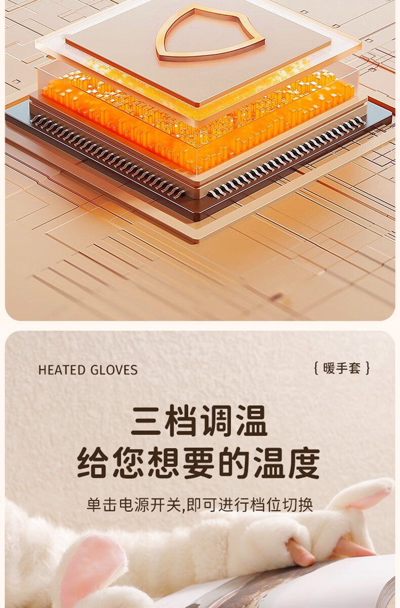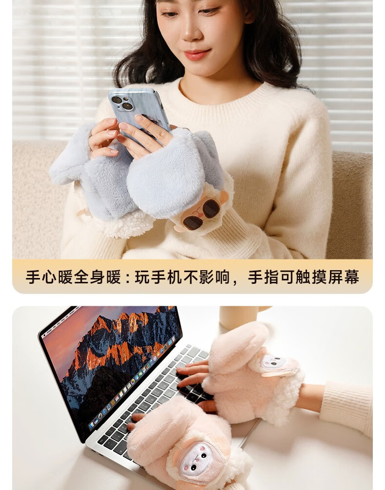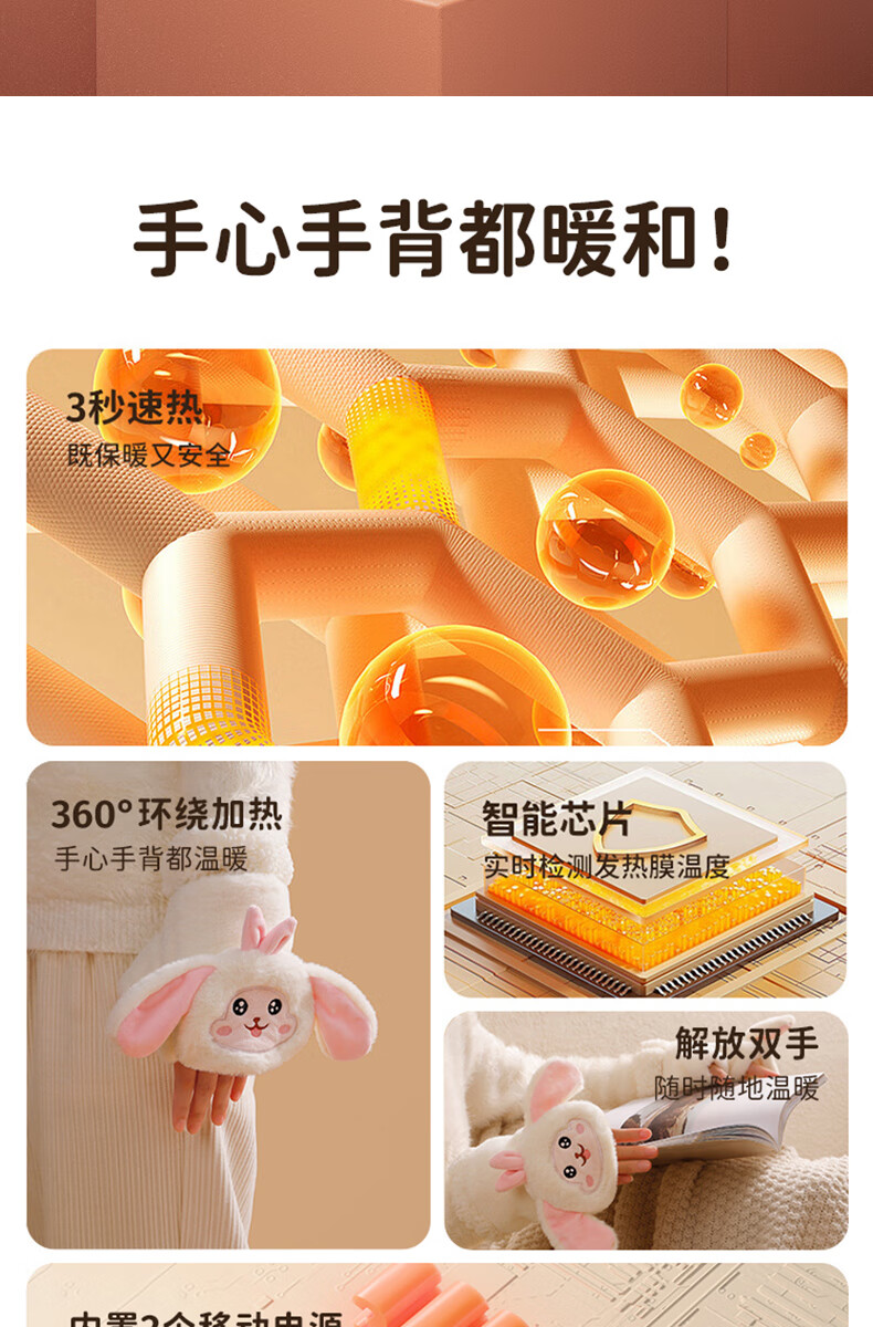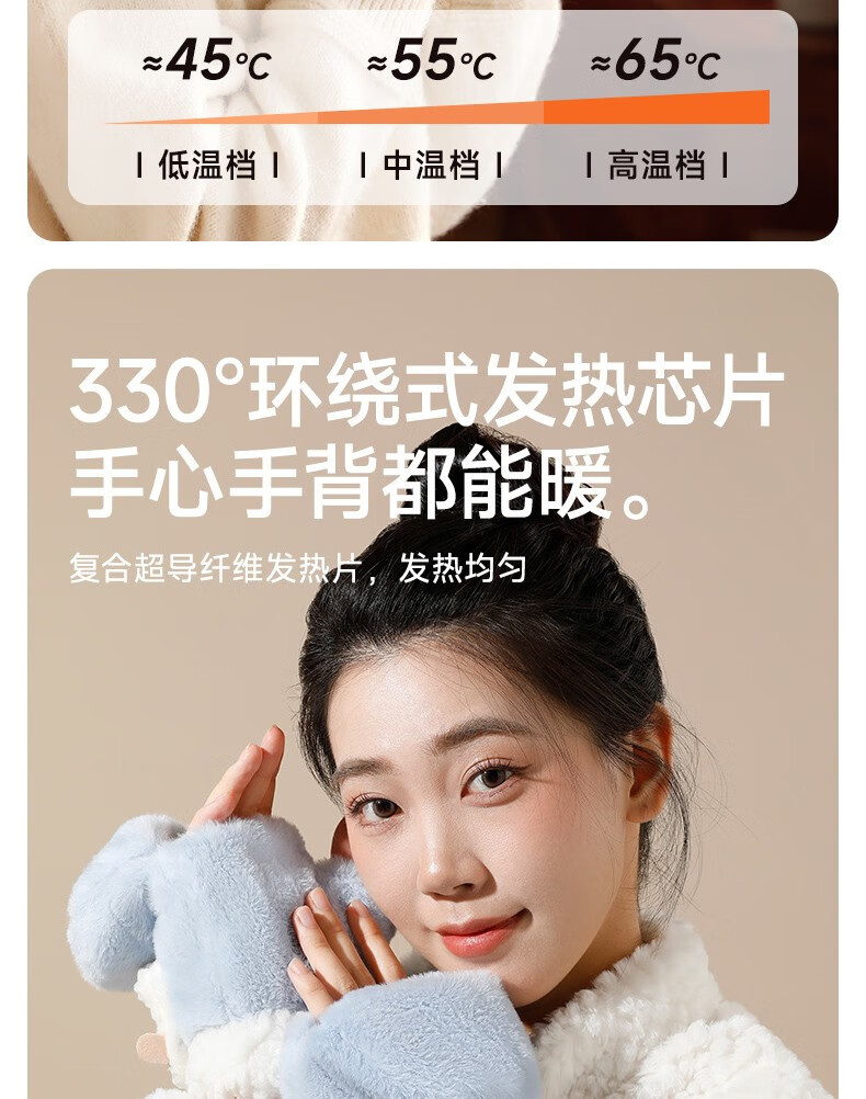 Gaboran Electric Heating Gloves Hand Warmer Heating Gloves Christmas Gift for Girlfriend Rechargeable Heating Magic Device Warmer Baby Finger-Open White Rabbit Three-speed Temperature Adjustment + Washable 3 Seconds Quick Heating丨Free Mobile Power Supply*2