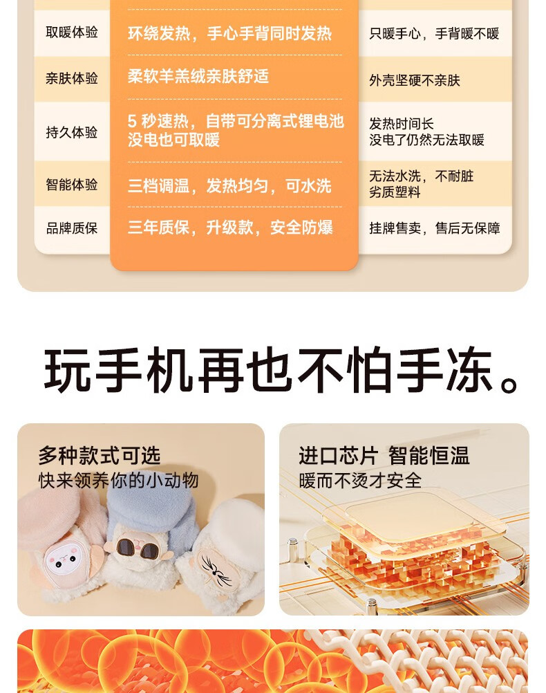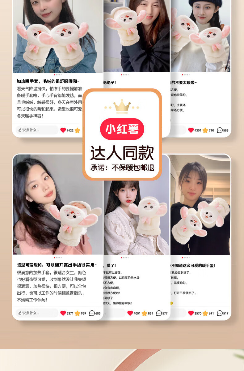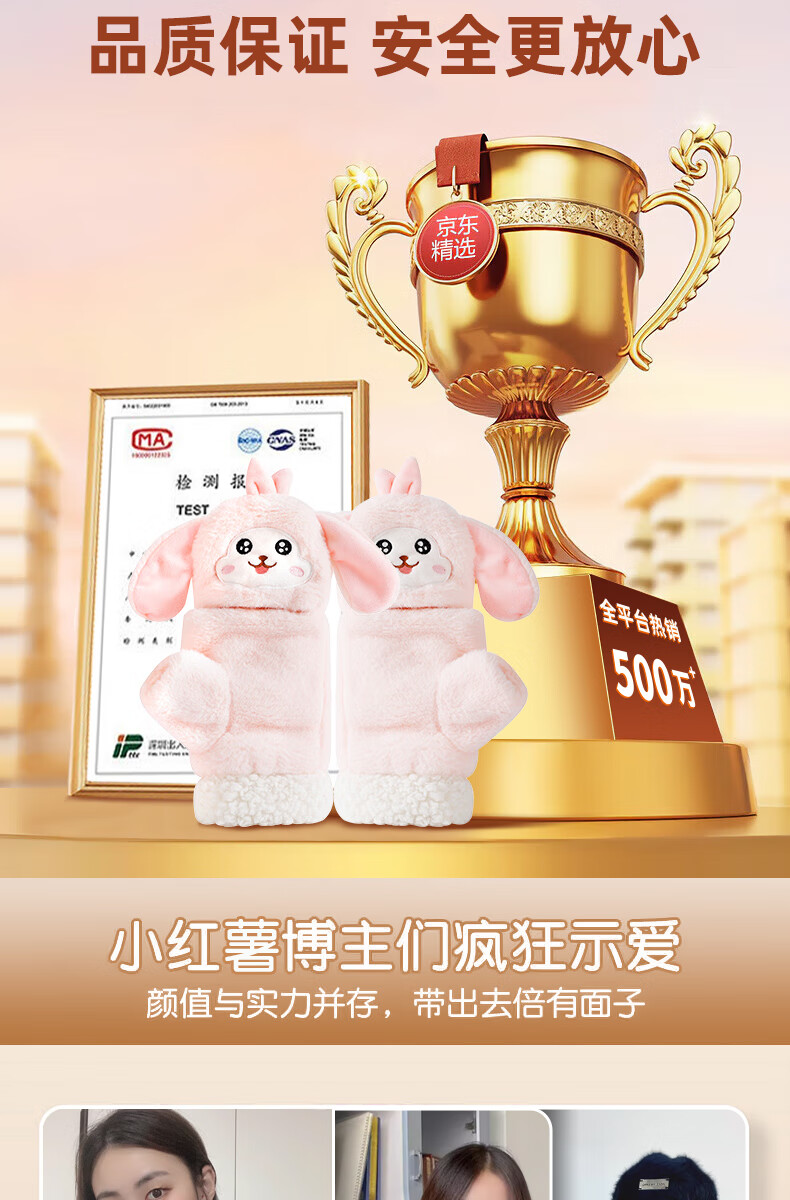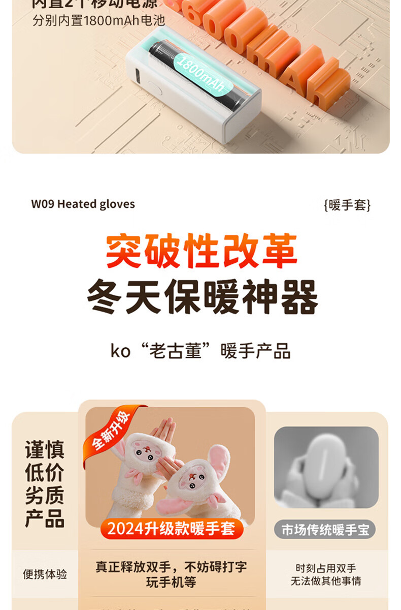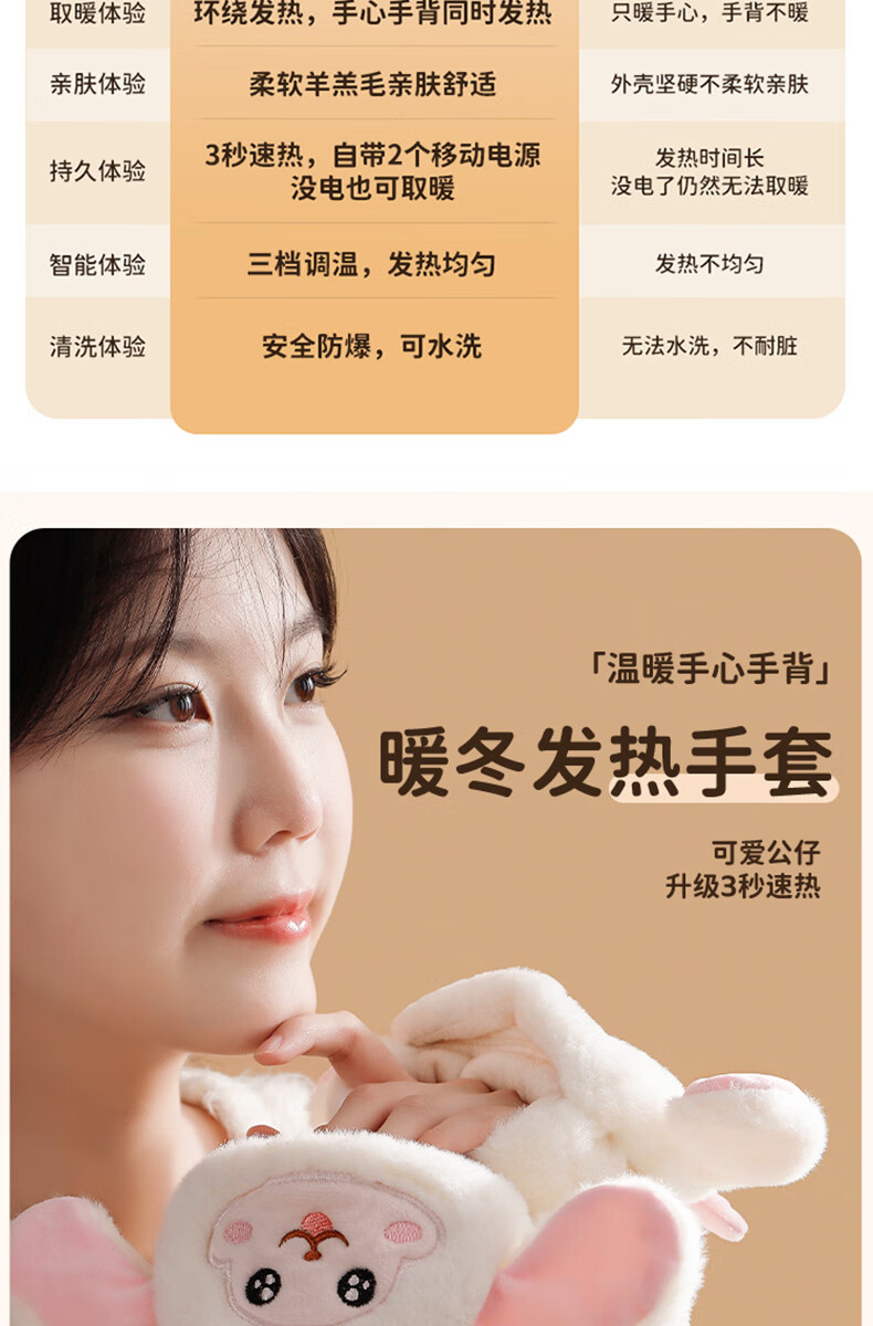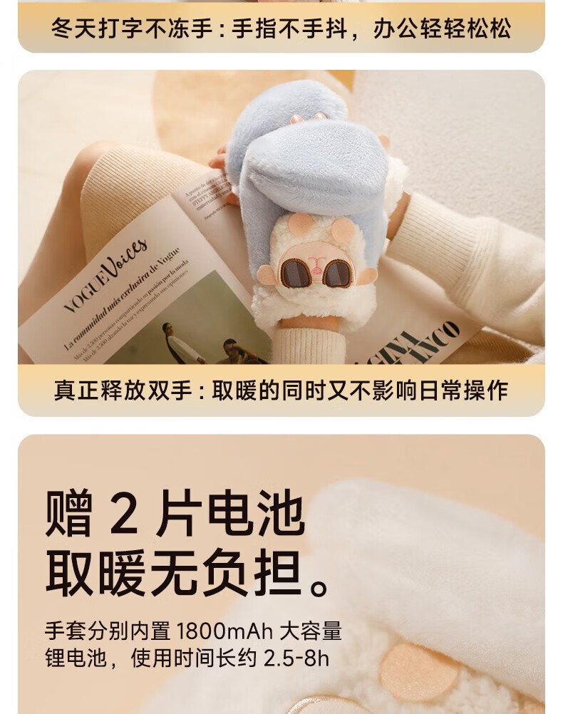 Gaboran Electric Heating Gloves Hand Warmer Heating Gloves Christmas Gift for Girlfriend Rechargeable Heating Magic Device Warmer Baby Finger-Open White Rabbit Three-speed Temperature Adjustment + Washable 3 Seconds Quick Heating丨Free Mobile Power Supply*2