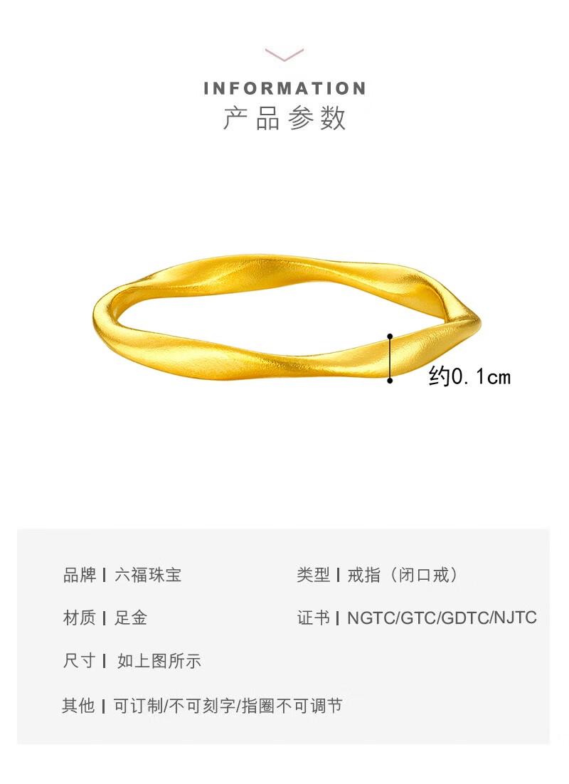 Lukfook Jewelry Fuman Heirloom Pure Gold Möbius Ring Ancient Method Gold Ring Solid Closed Price G01G0020DS No. 15-1.87g (including labor cost 144 yuan)