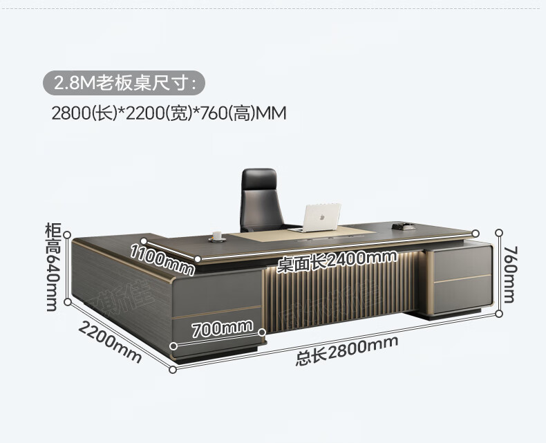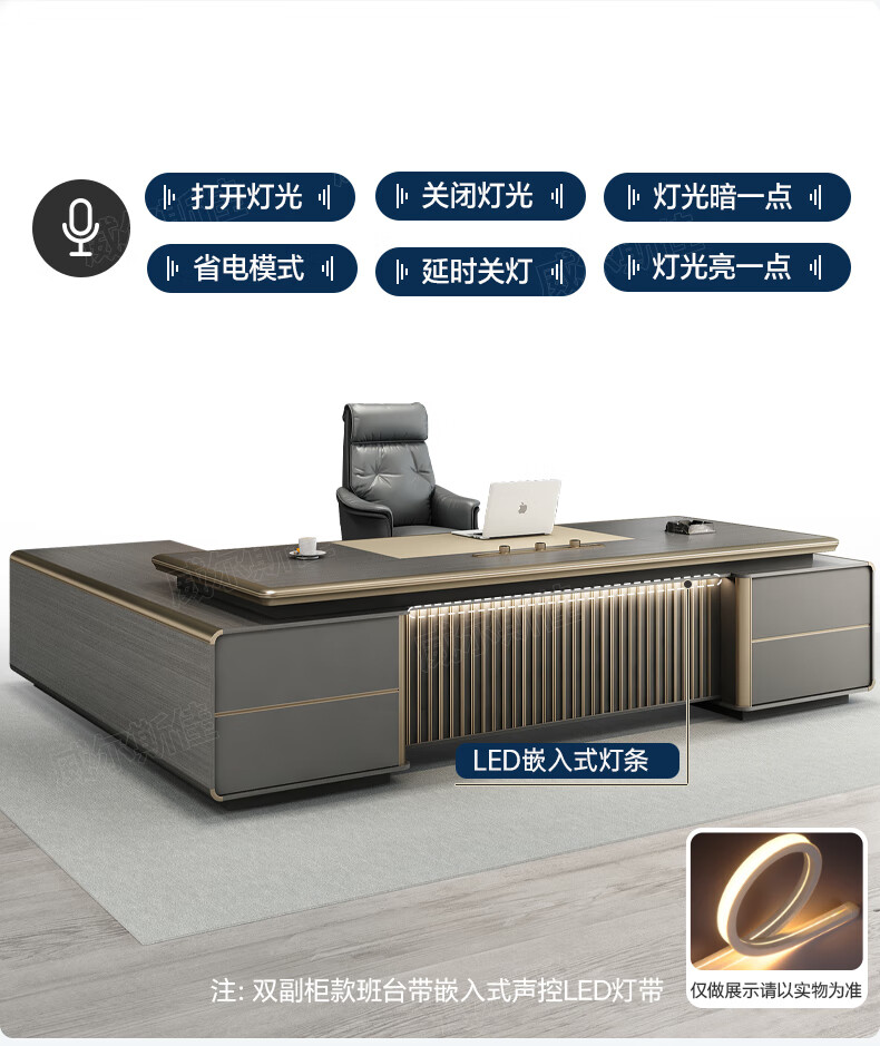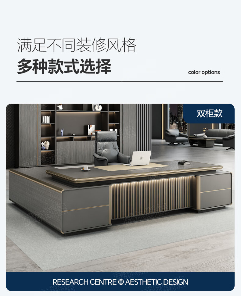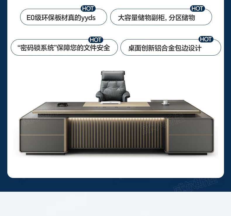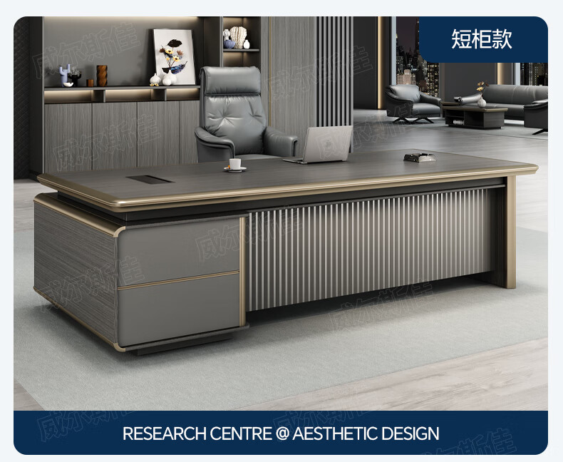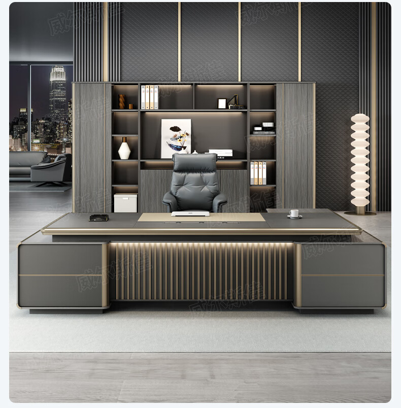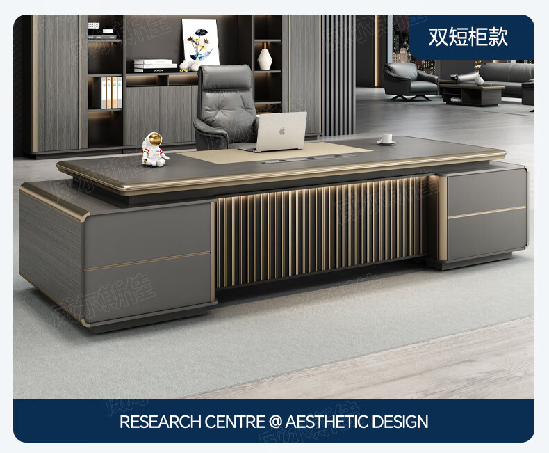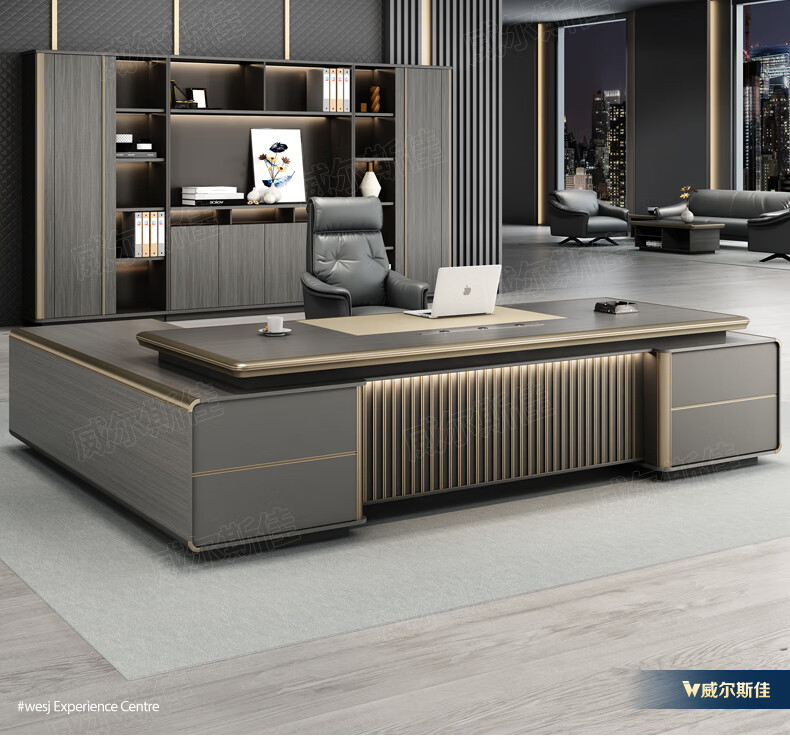 Welski boss desk high-end and atmospheric office leader president desk Italian light luxury general manager desk set 2.4 meters double short cabinet boss desk