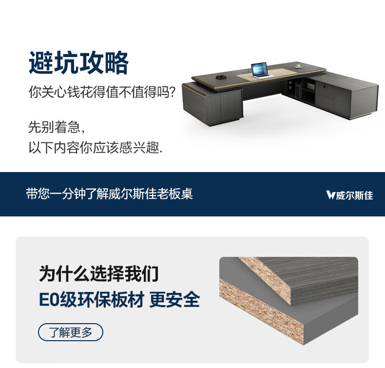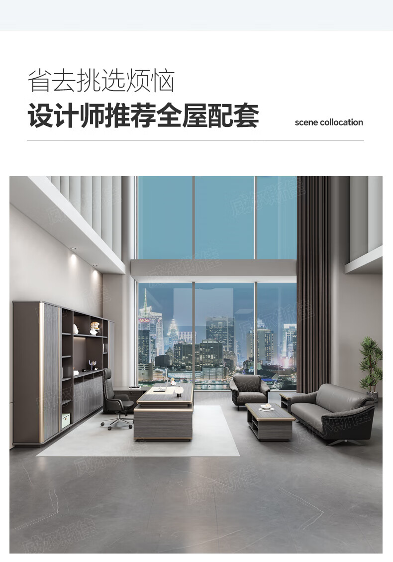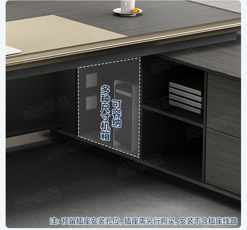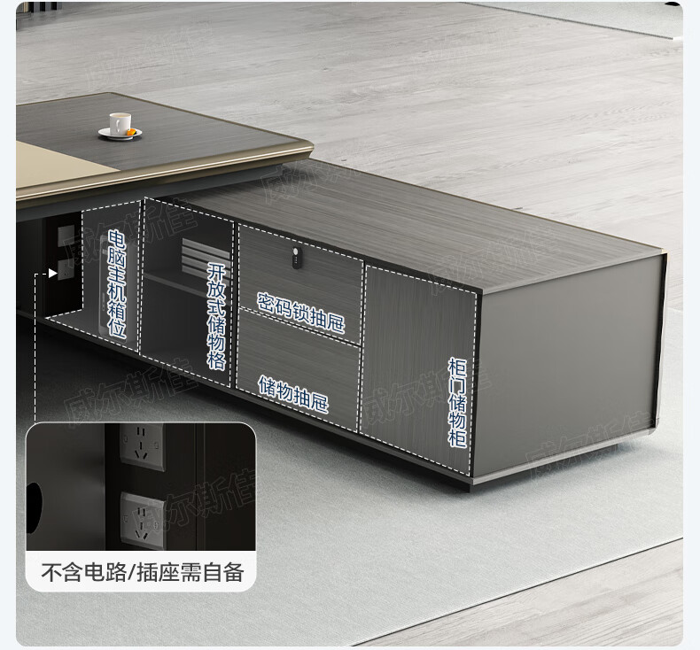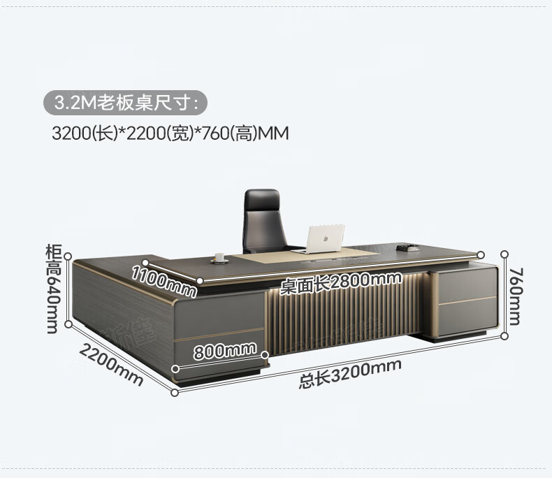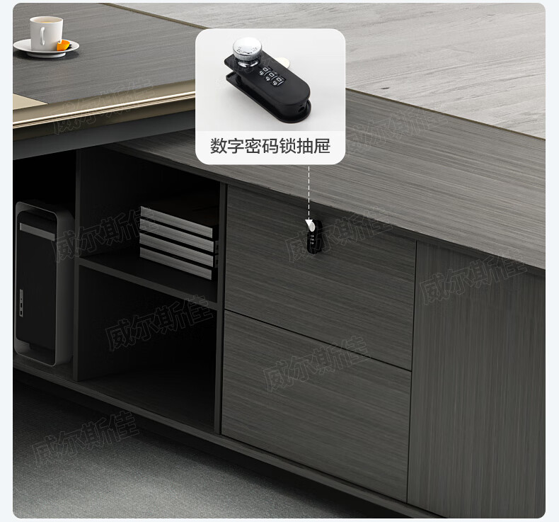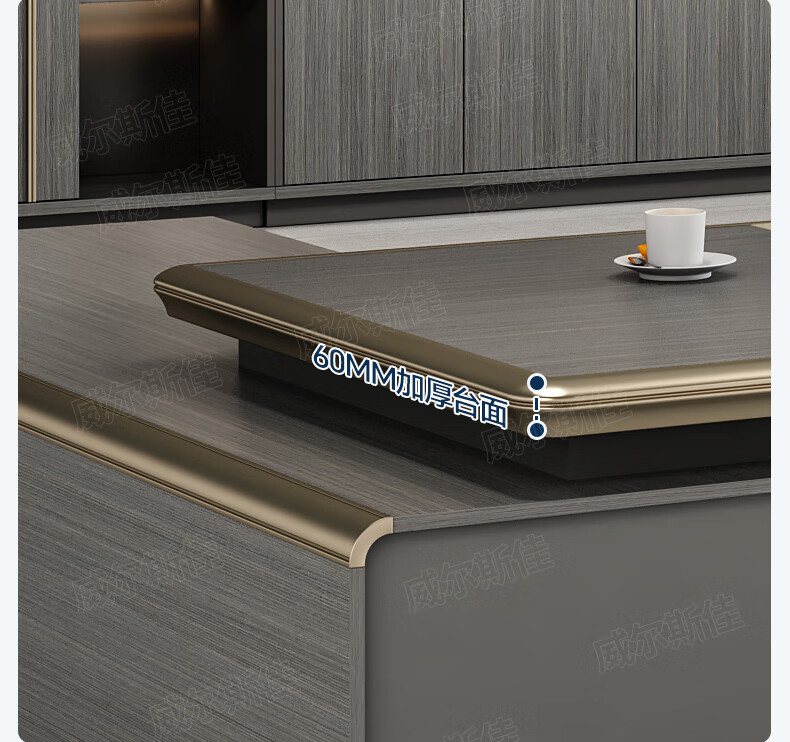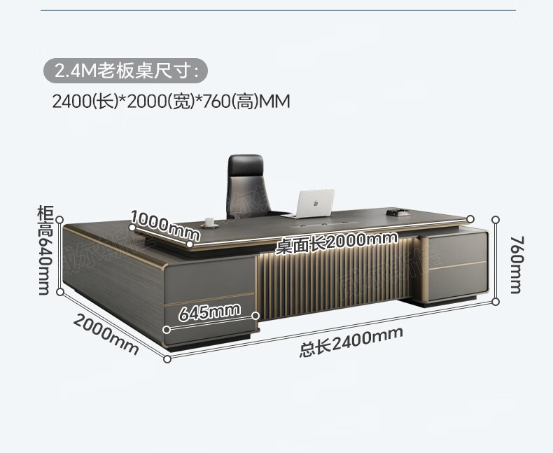 Welski boss desk high-end and atmospheric office leader president desk Italian light luxury general manager desk set 2.4 meters double short cabinet boss desk