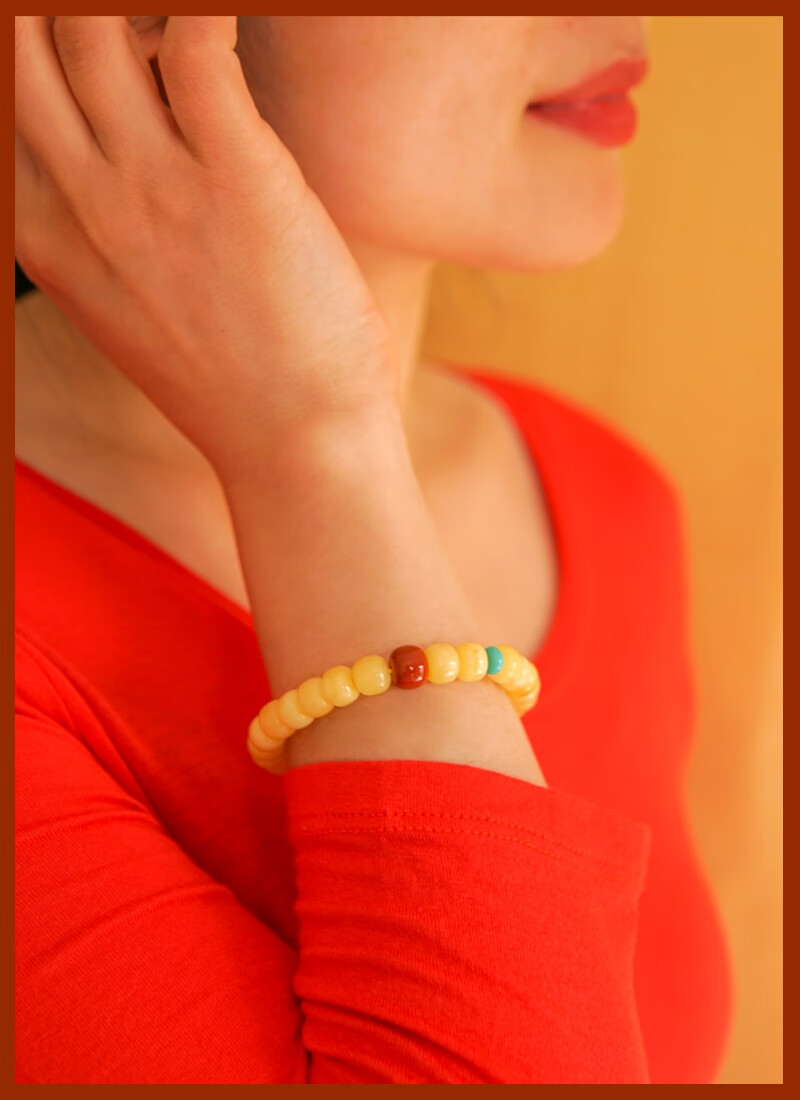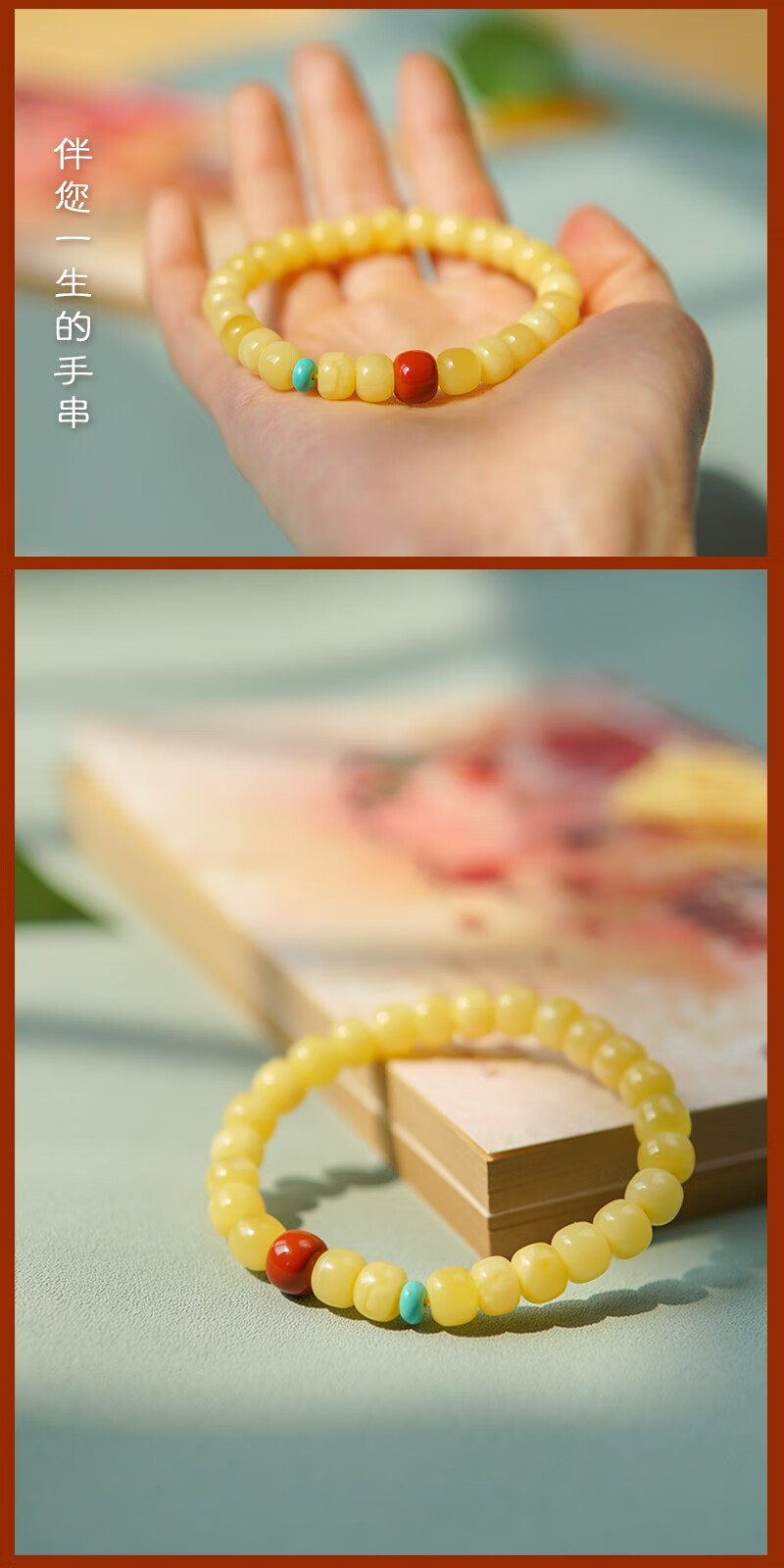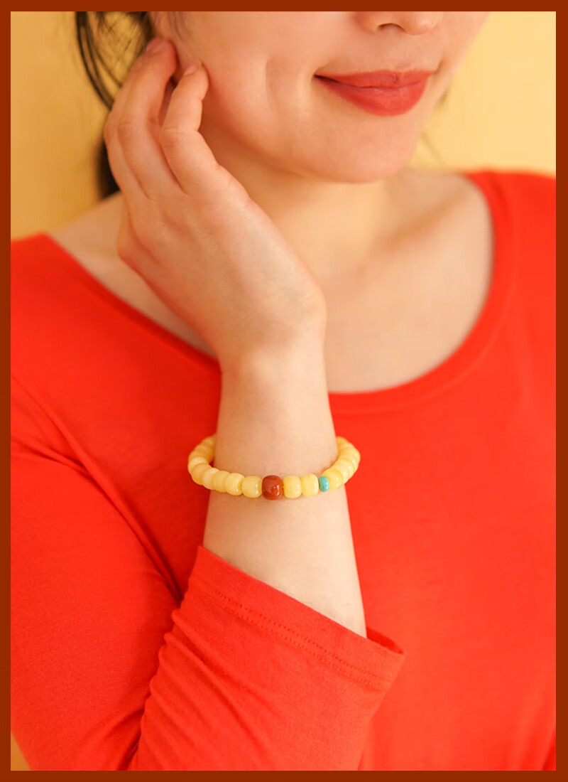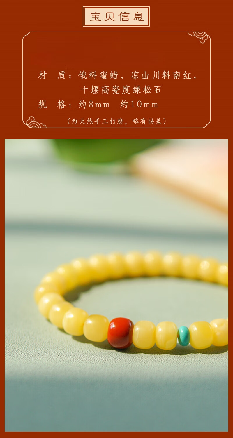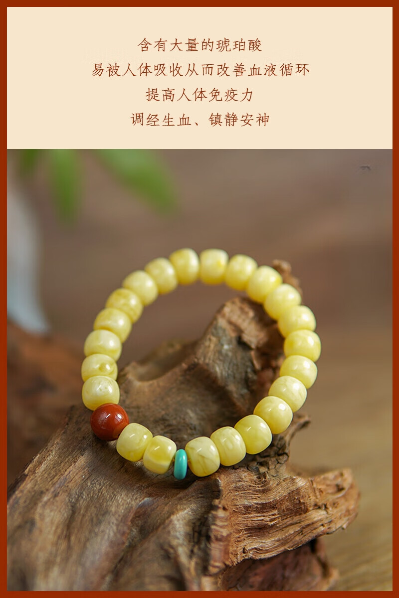 Feng Yuhuang Beeswax Bracelet for Men and Women Original Retro Style Literary Mineral Bracelet Couple Style Old Beeswax Amber Bracelet 10mm Textured and Attractive Style