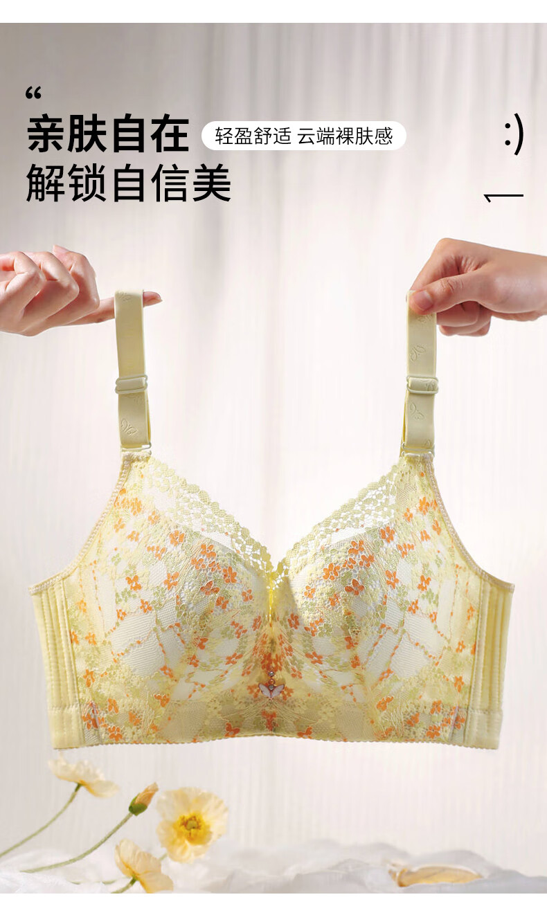Weiyou large size underwear for women 200Jin Jin is equal to 0.5kg, thin soft steel ring, anti-sagging, beautiful back, adjustable, push-up big breasts, make the breast smaller, champagne 42/95C