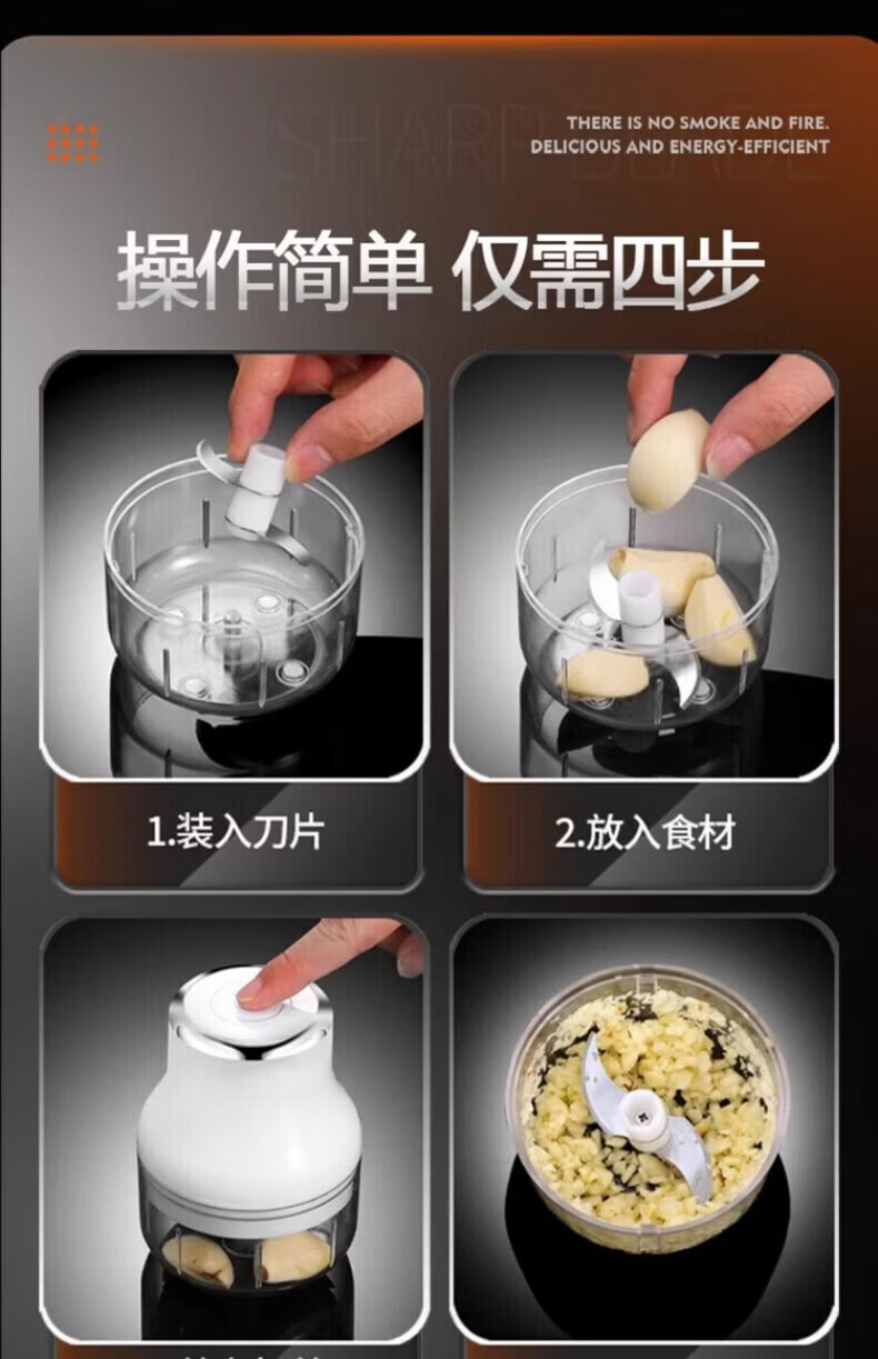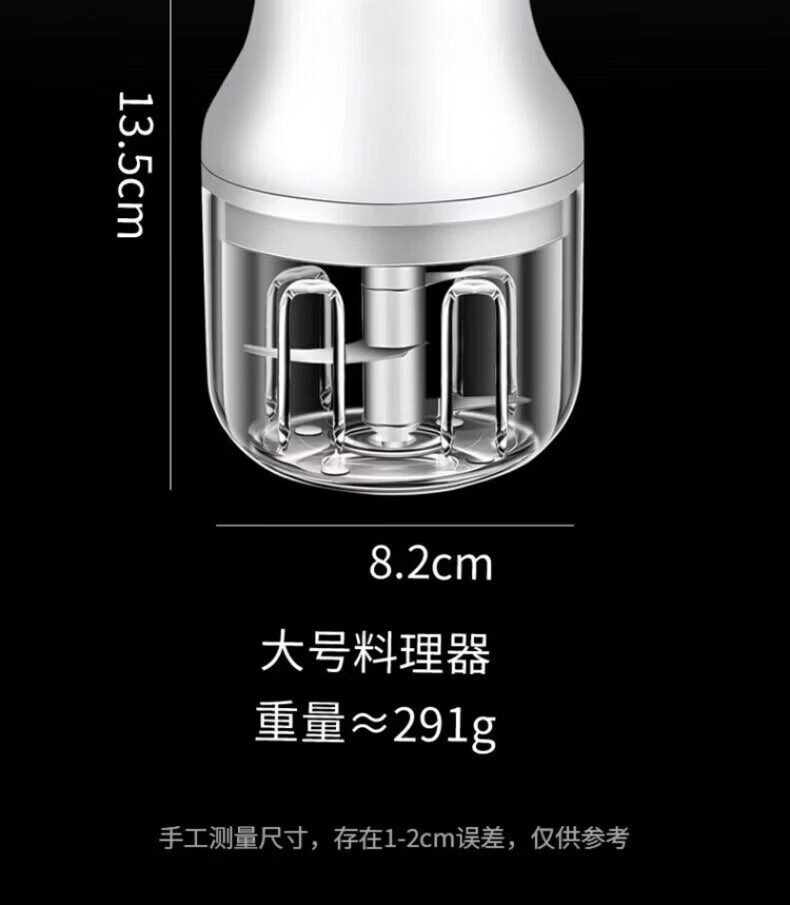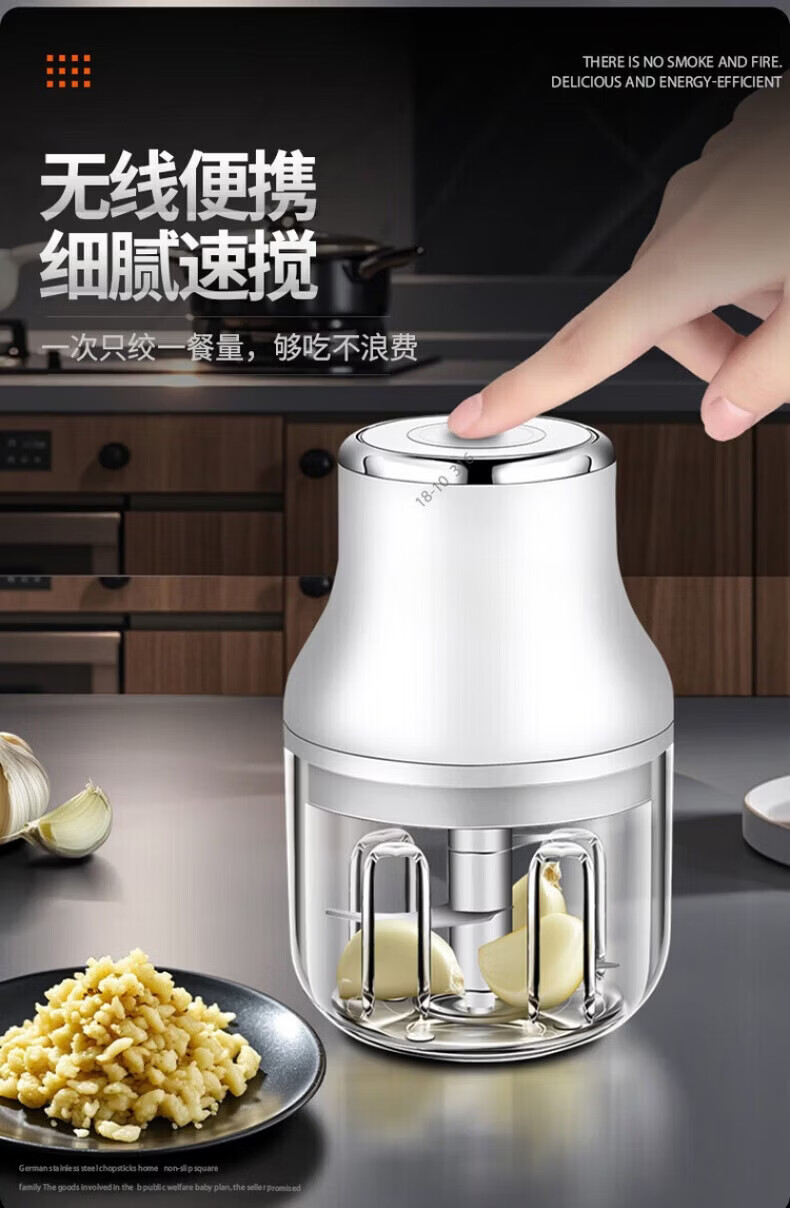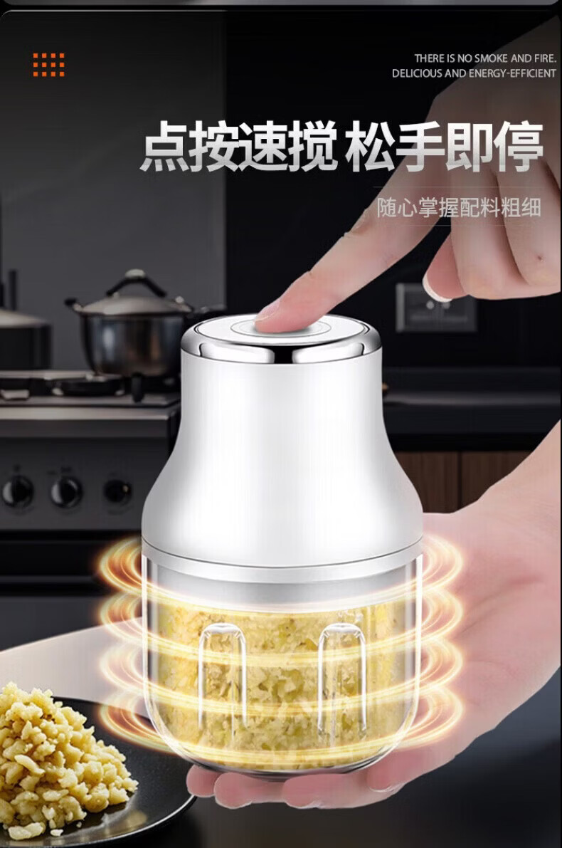 GERTHRON German garlic smasher, garlic smasher, household small minced garlic smasher glass, 3-leaf knife-large electric garlic smasher 291ml