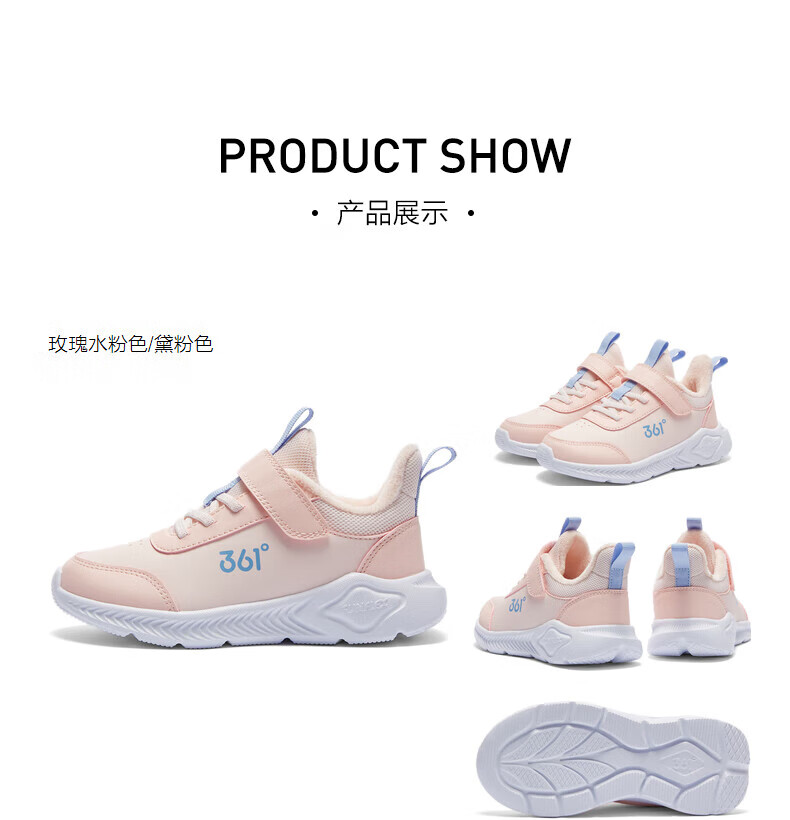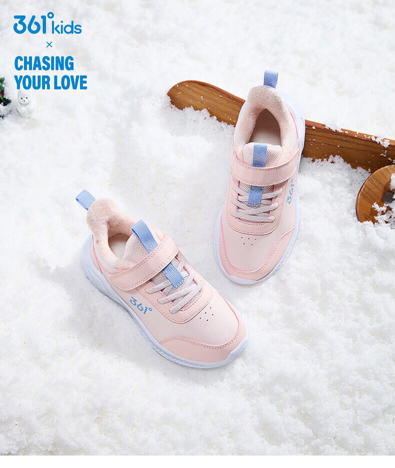 361 Children's shoes for boys and girls, velvet warm cotton shoes, winter new soft-soled running children's casual cotton shoes, rose water pink/dark pink 31