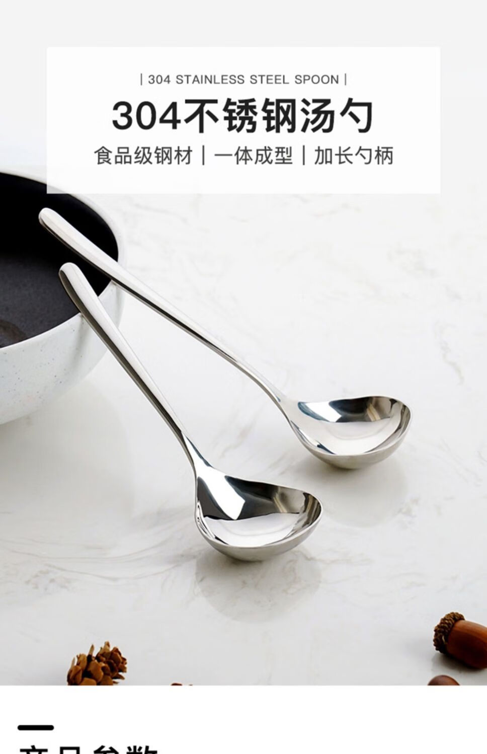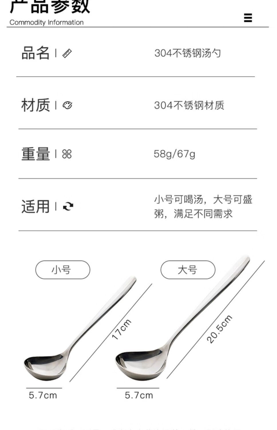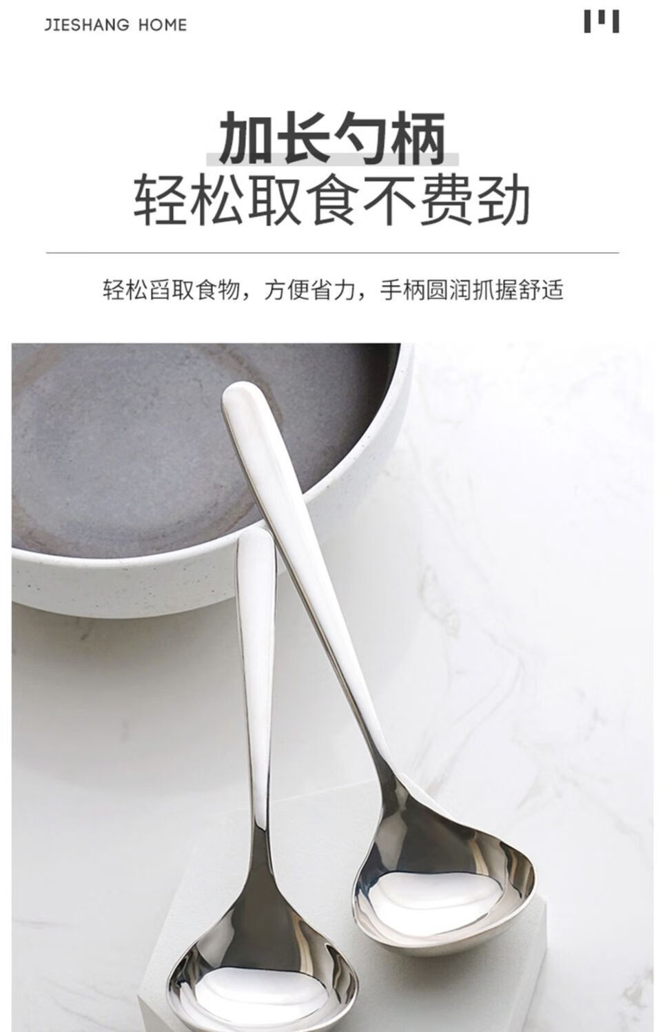 Chino 304 Korean food grade household large spoon for soup long handle large spoon porridge spoon thickened hot pot spoon silver 1 piece