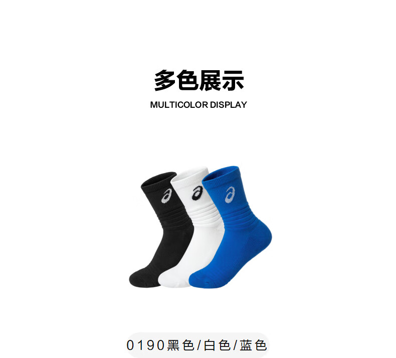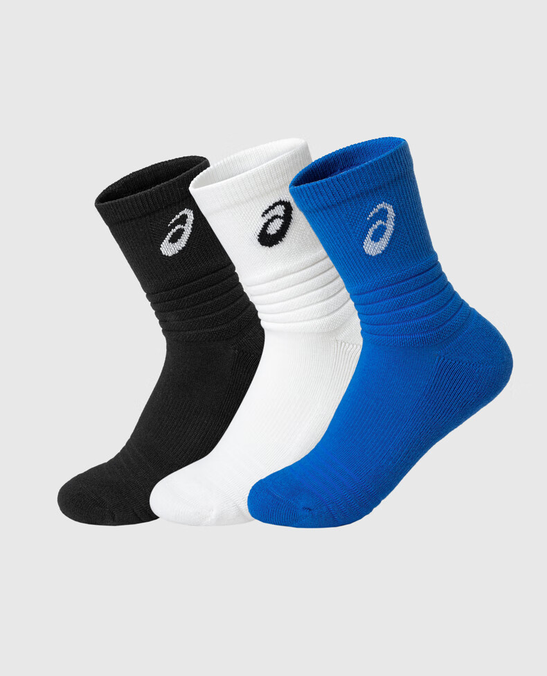 ASICS children's new dry and breathable sports-cut socks for boys and girls for all seasons, three pairs of 0190 black/white/blue, 3 pairs, one size L