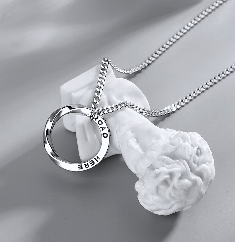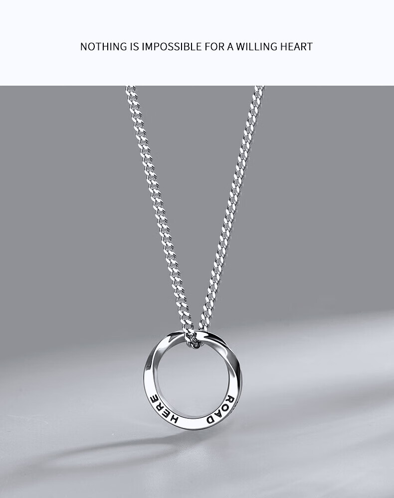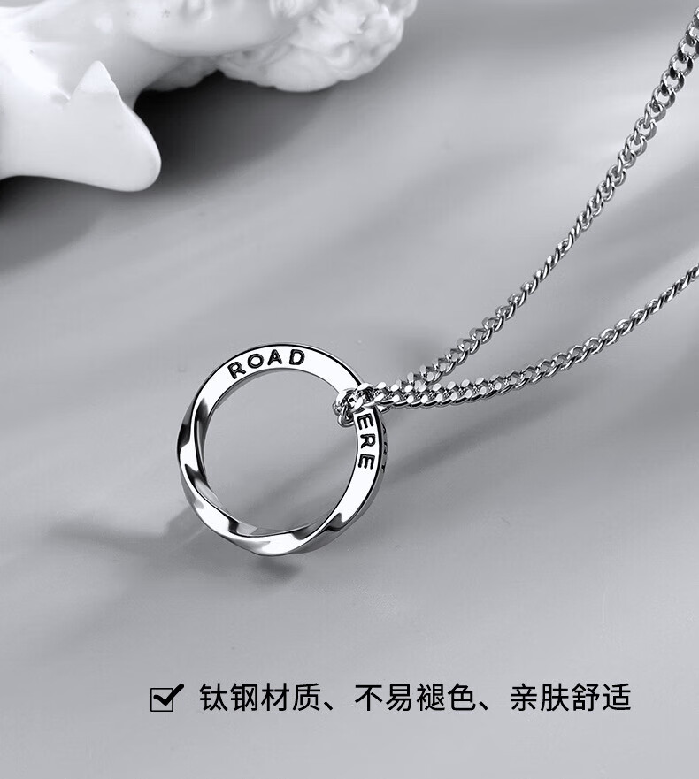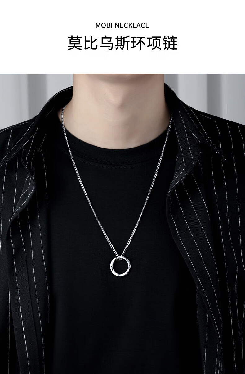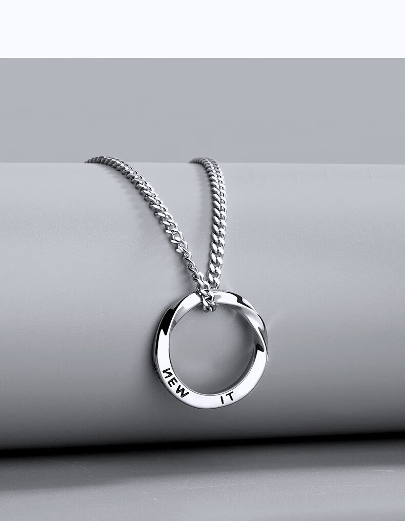 Bai Qixin Necklace Men's Möbius Ring Trendy Brand Versatile New Women's Silver Horsewhip Chain Titanium Steel Pendant Men's Gift Möbius Ring Necklace