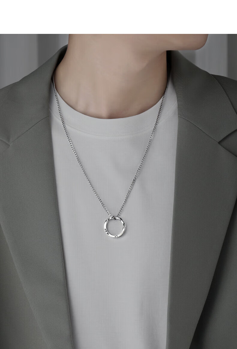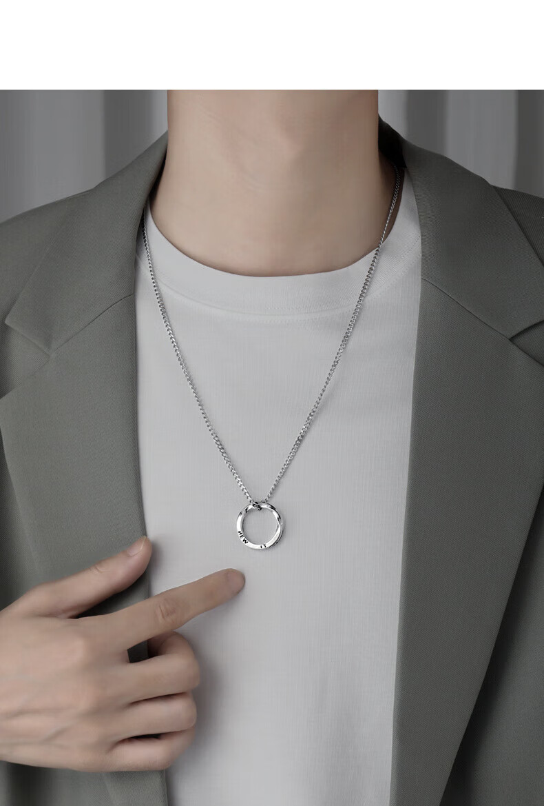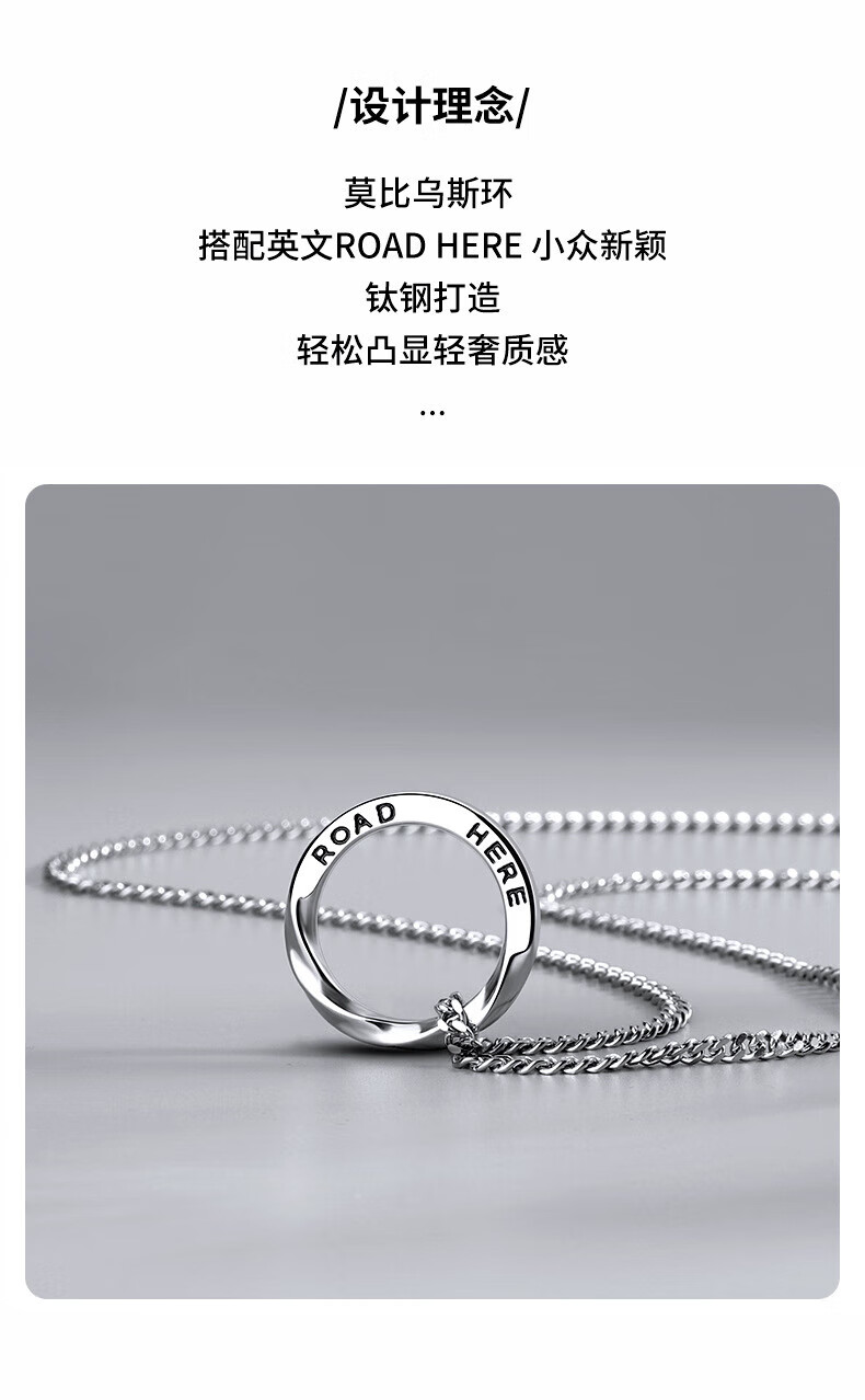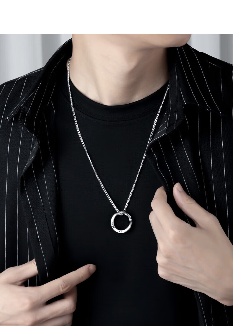 Bai Qixin Necklace Men's Möbius Ring Trendy Brand Versatile New Women's Silver Horsewhip Chain Titanium Steel Pendant Men's Gift Möbius Ring Necklace