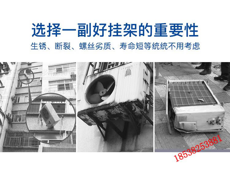 Yangguan soporte de unidad exterior de aire acondicionado 1.5P2P3P5P estante de aire acondicionado galvanizado estante engrosado estante de aire acondicionado soporte de estante de unidad exterior 5P soporte extra grueso 3.0 de espesor con 8 tornillos de fijación