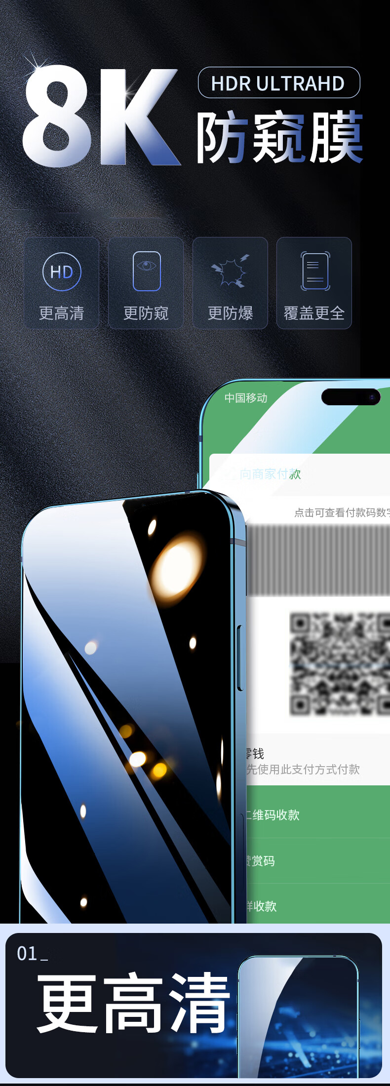 Jingnie suitable for iPhone 15 tempered film anti-peep film iPhone 15 full screen coverage eye protection anti-blue light high-definition anti-fingerprint anti-fall anti-explosion glass mobile phone protective film HD film-electroplating double anti-fingerprint 2 pieces