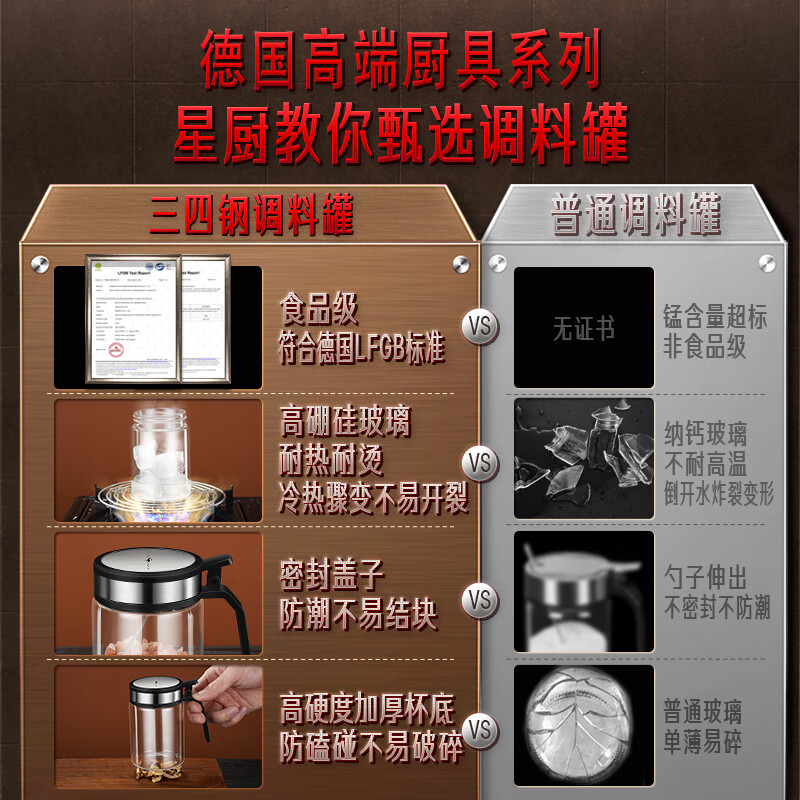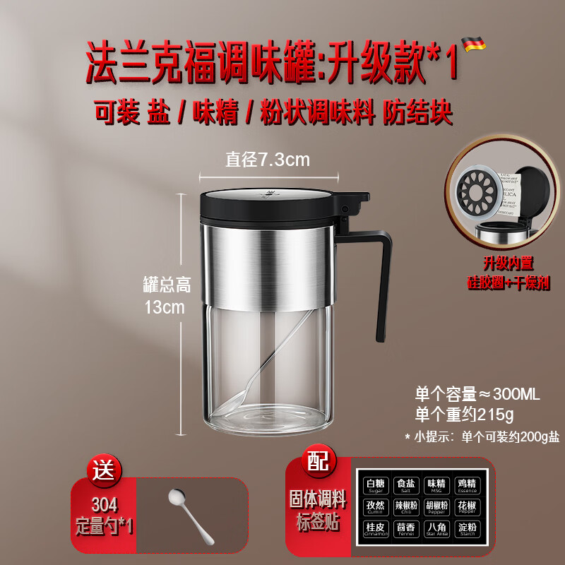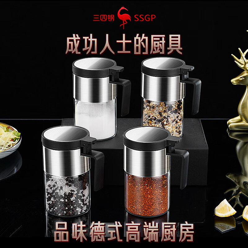 Sansi Steel seasoning jar kitchen seasoning box glass seasoning jar seasoning salt jar seasoning bottle sealed moisture-proof storage high borosilicate single assembly spoon + moisture-proof agent + label
