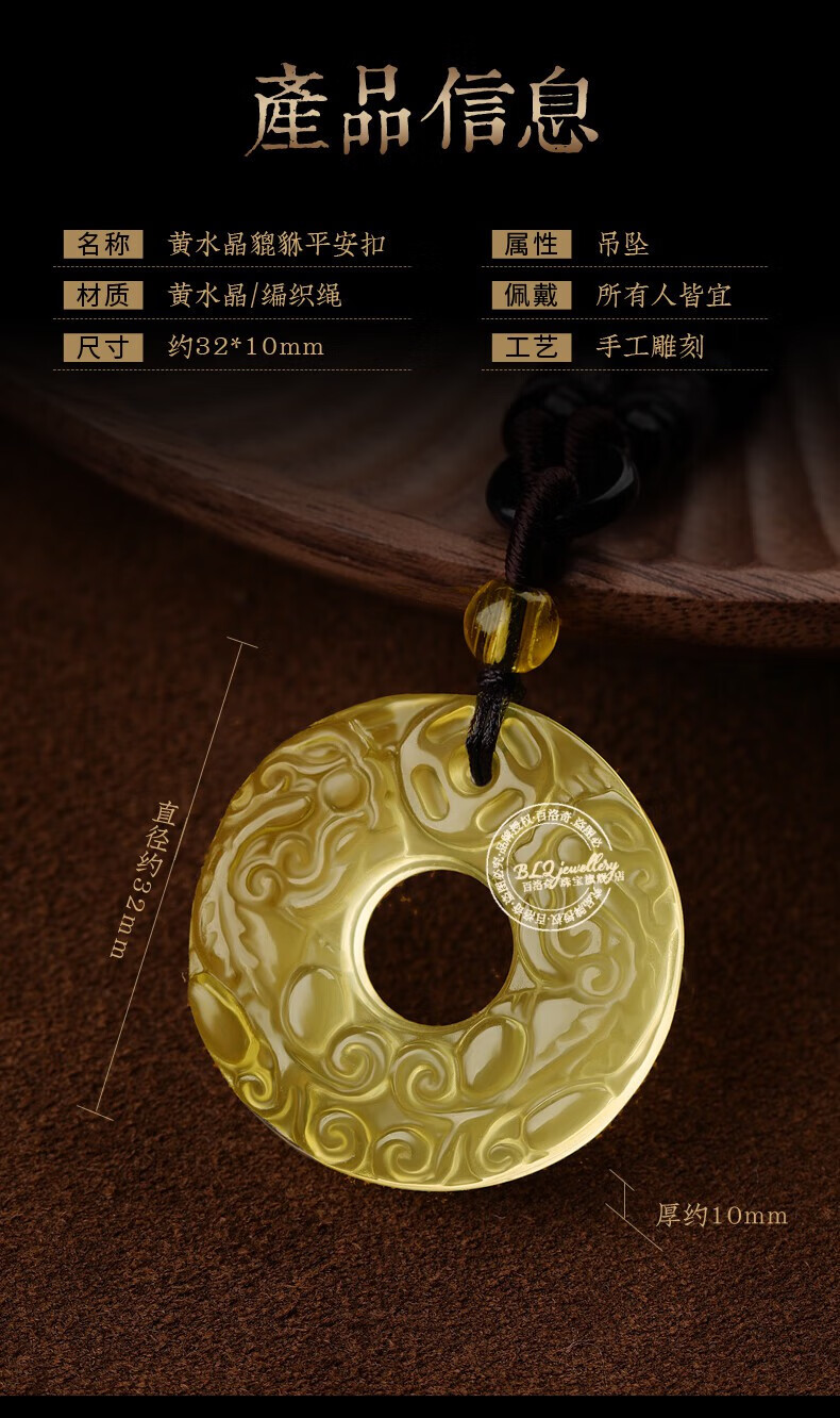 Bailuoqi natural citrine Pixiu pendant, fortune pendant, amulet, men's safety buckle necklace, exquisite lanyard style, citrine Pixiu safety buckle