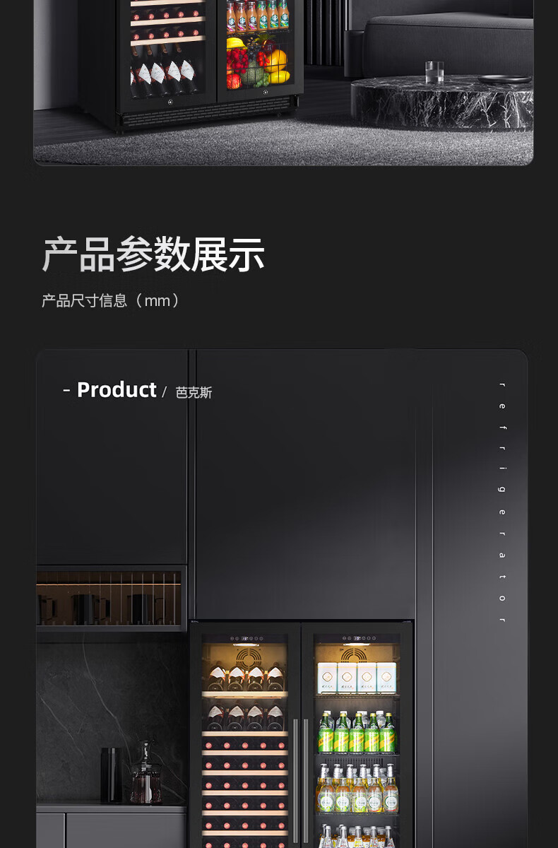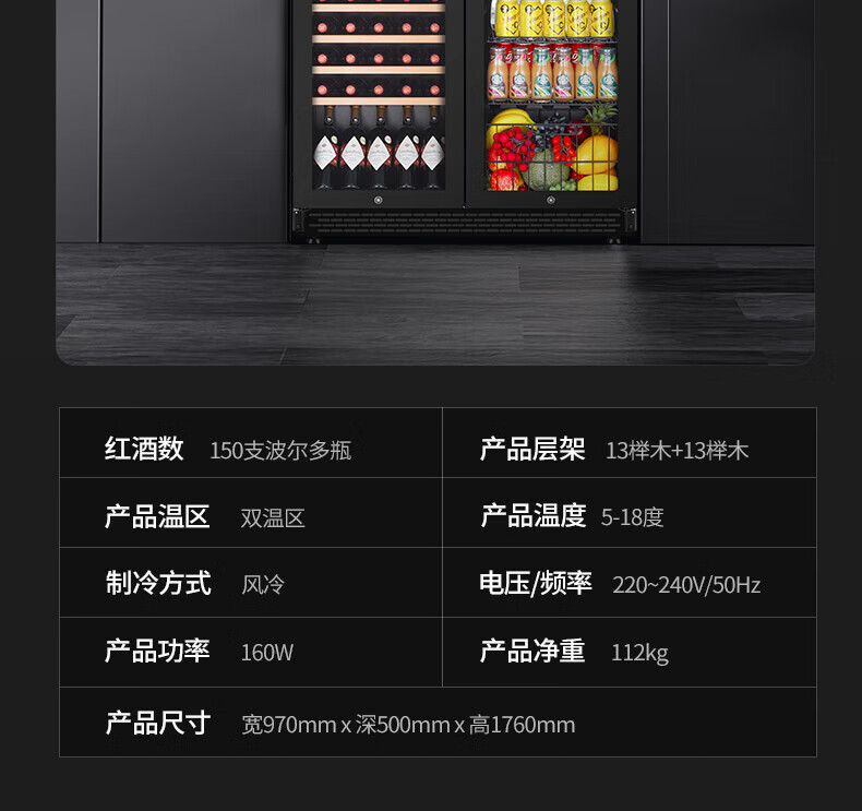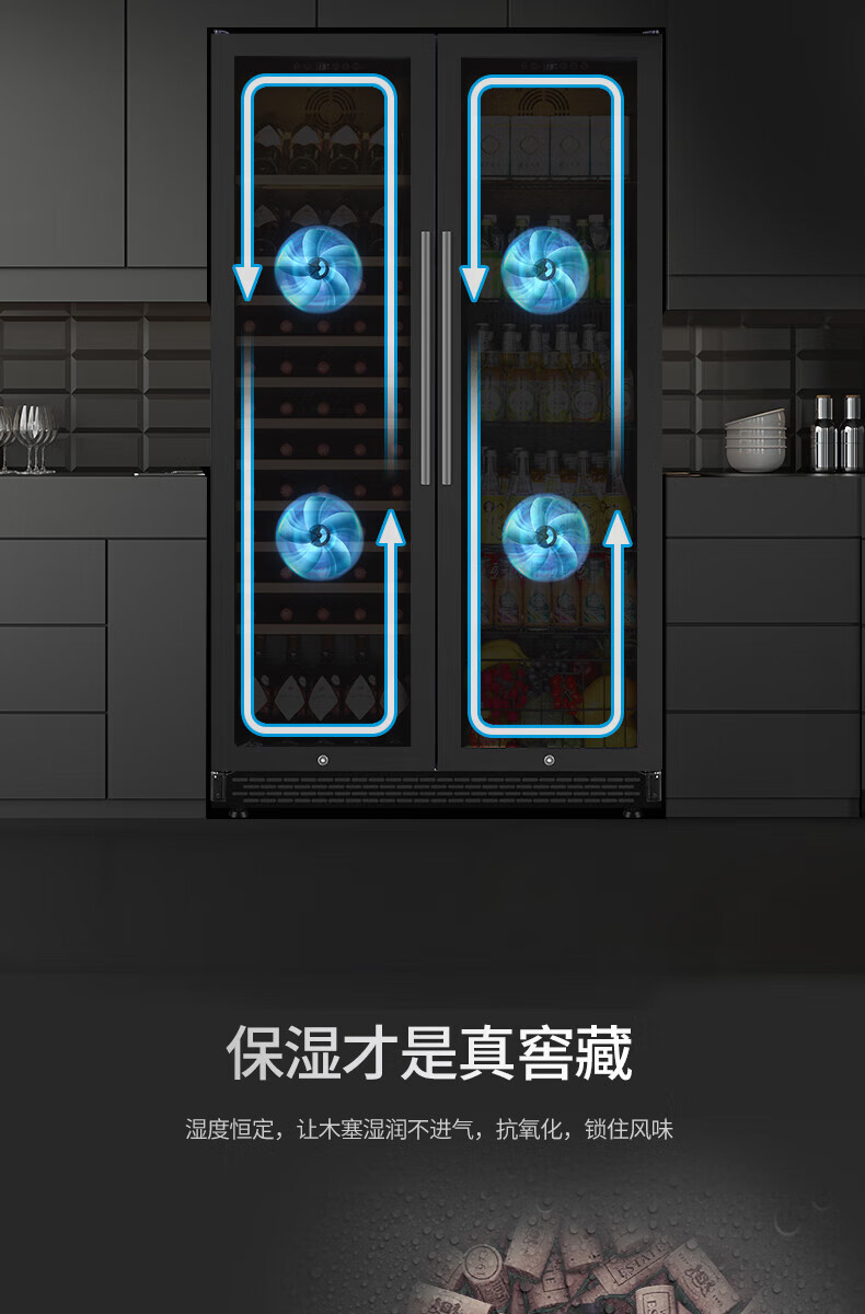 Bacchus double-door wine cabinet 150 bottles 1.76 meters ice bar constant temperature wine cabinet household refrigerated tea beer champagne wine built-in wine storage cabinet large living room villa left wine display + right ice bar (integrated dual temperature air cooling) 58 bottles
