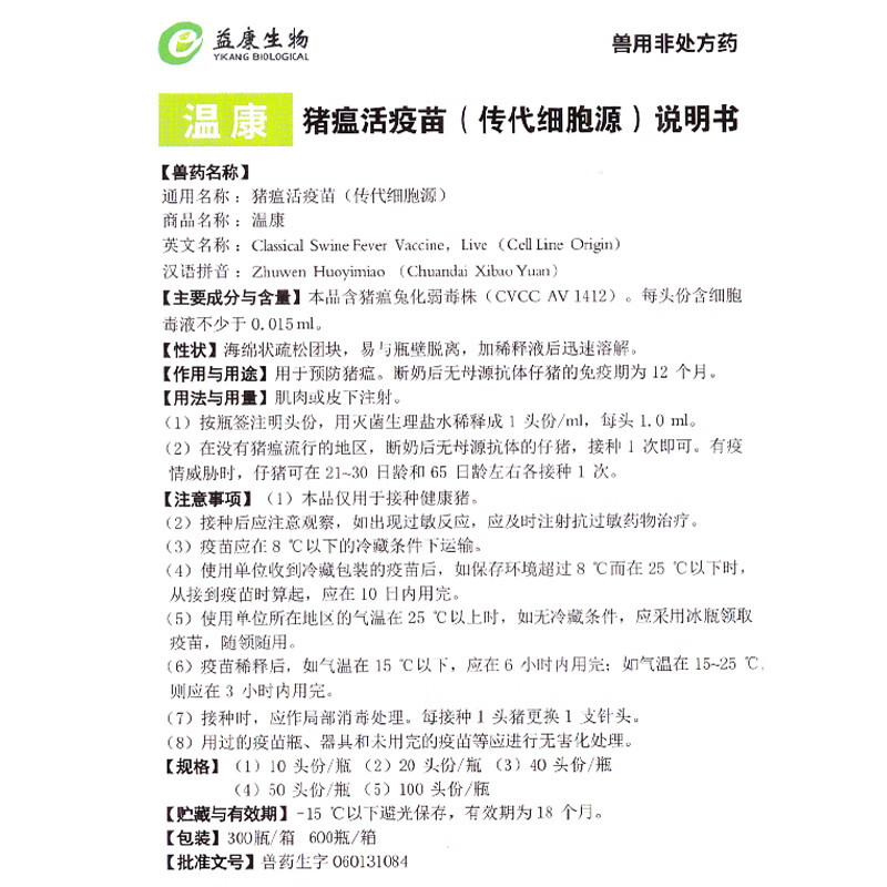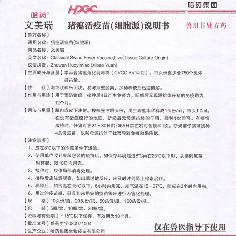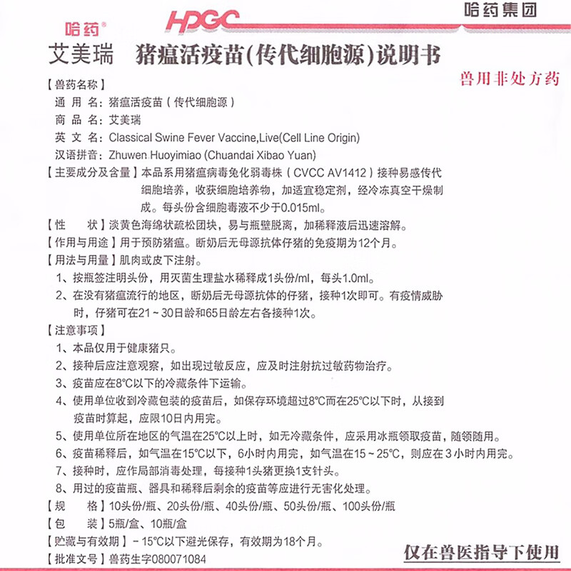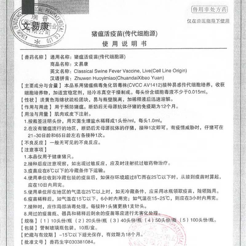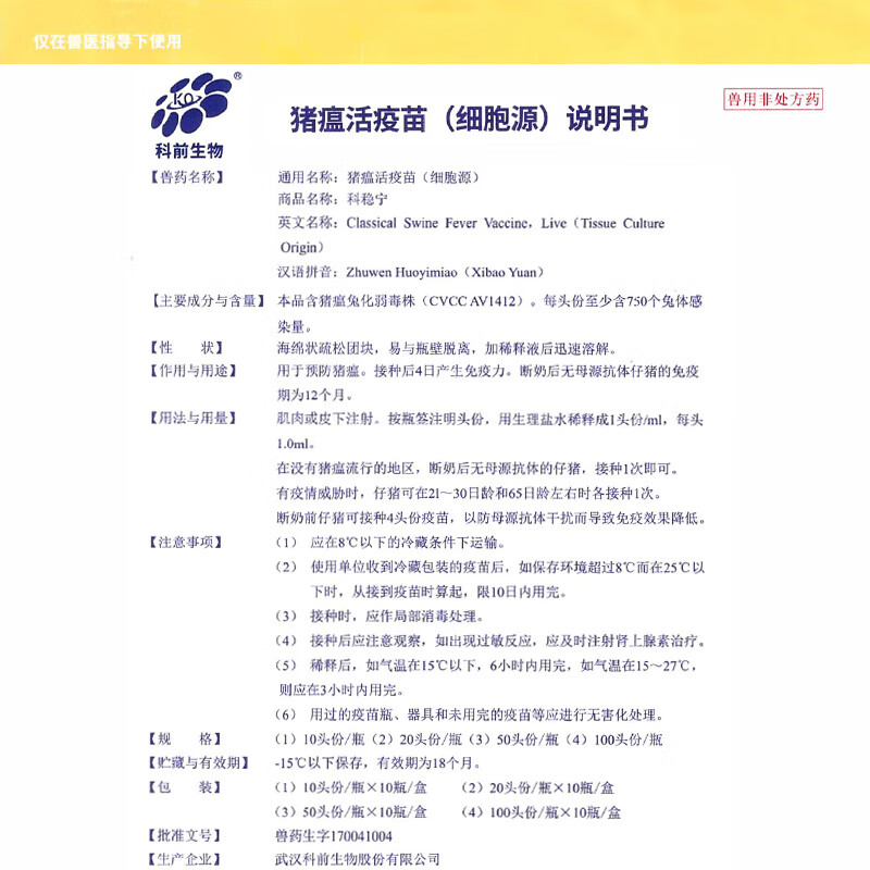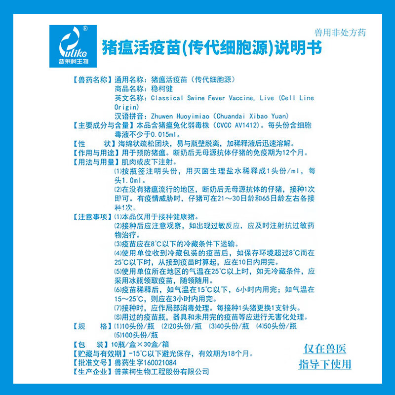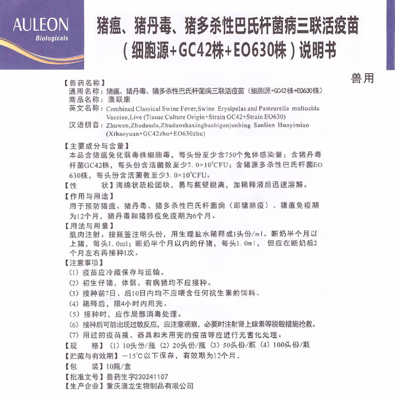 Vaccine for pigs, Plekoha medicine, inactivated swine fever vaccine, swine fever passage cell source, rabbit attenuated strain, Aoliankang swine fever triple combination 10 heads/10 bottles
