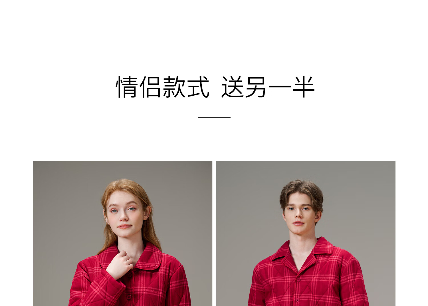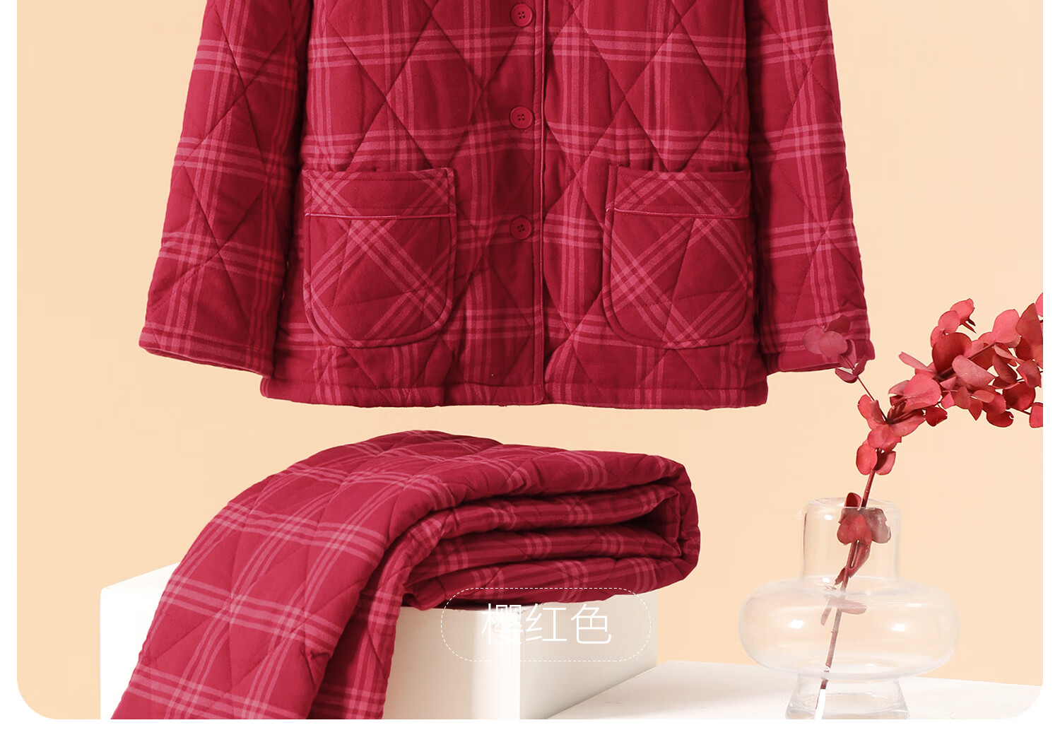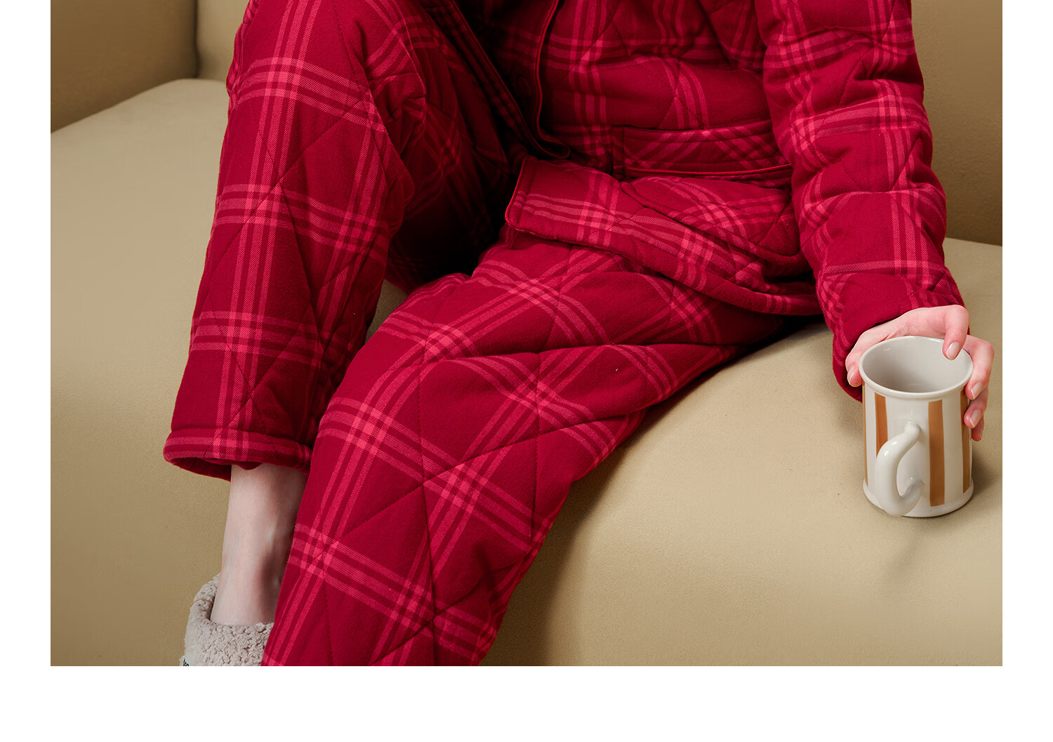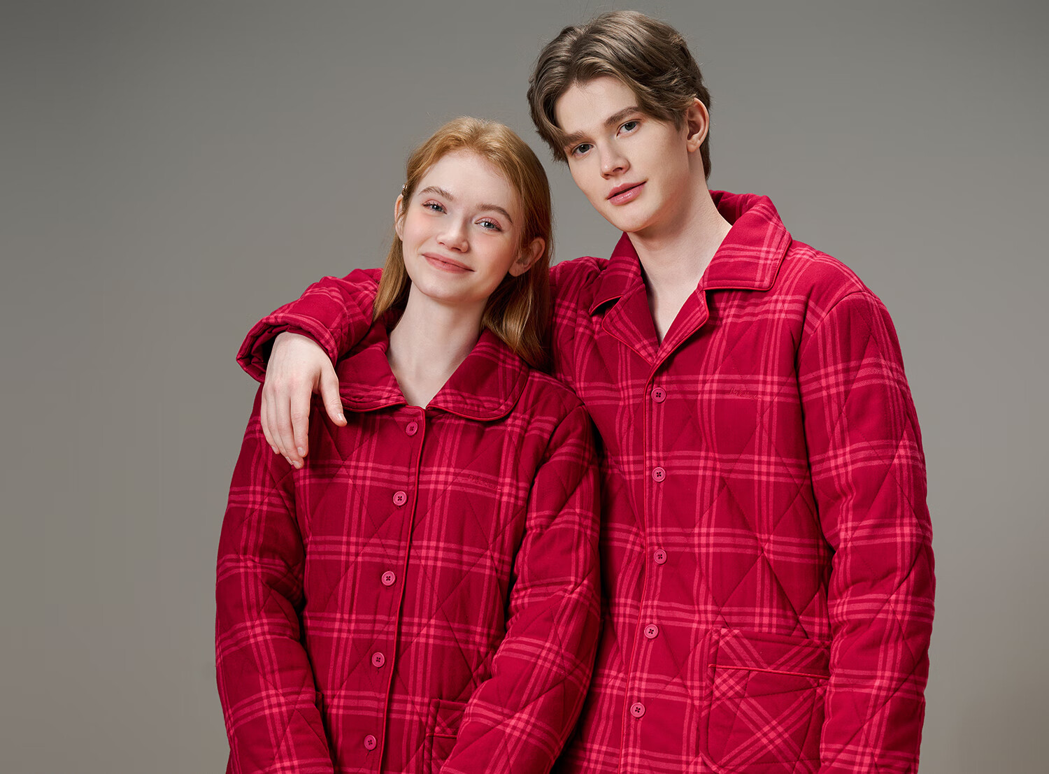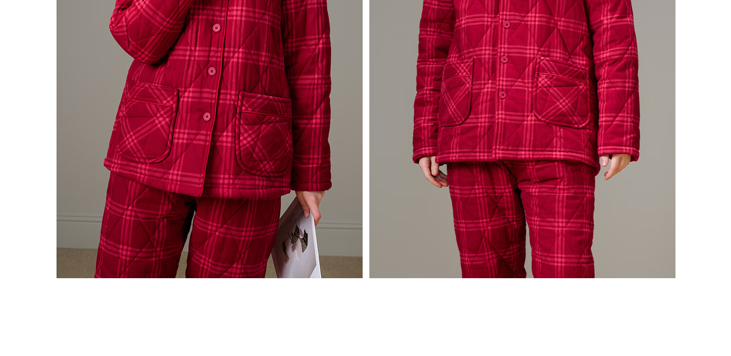 American Standard Couple Three-Layer Thickened Padded Pajamas Set for Women Autumn and Winter Red Wedding Pure Cotton Plaid Home Clothing for Men Cherry Red (Male) XL