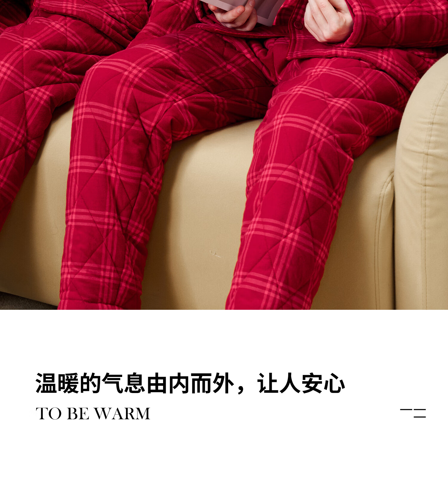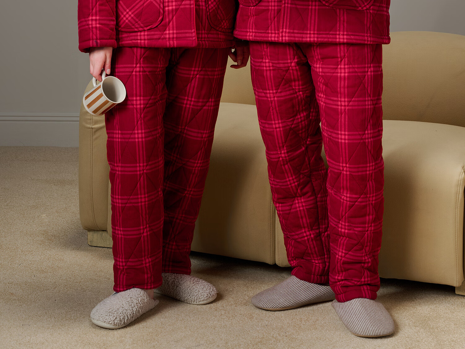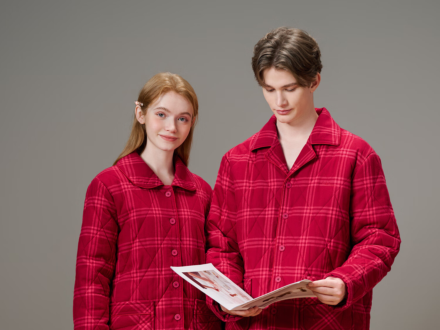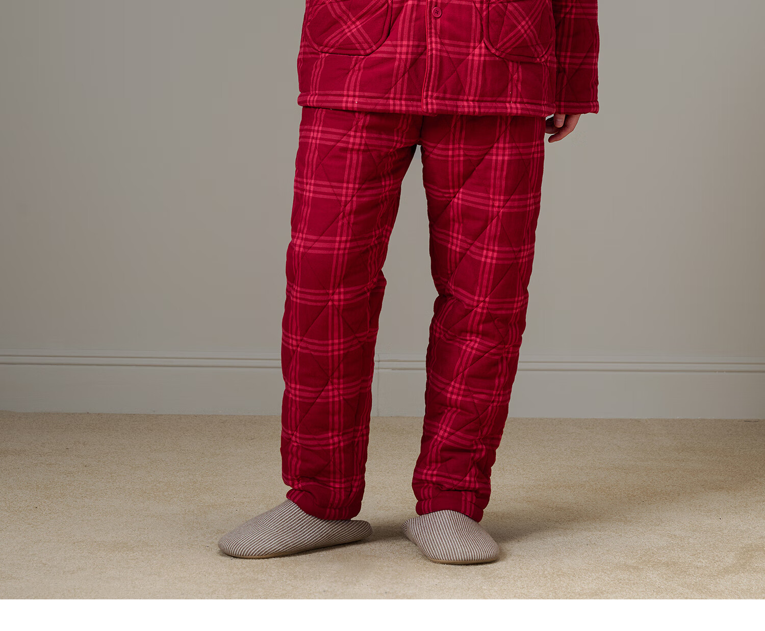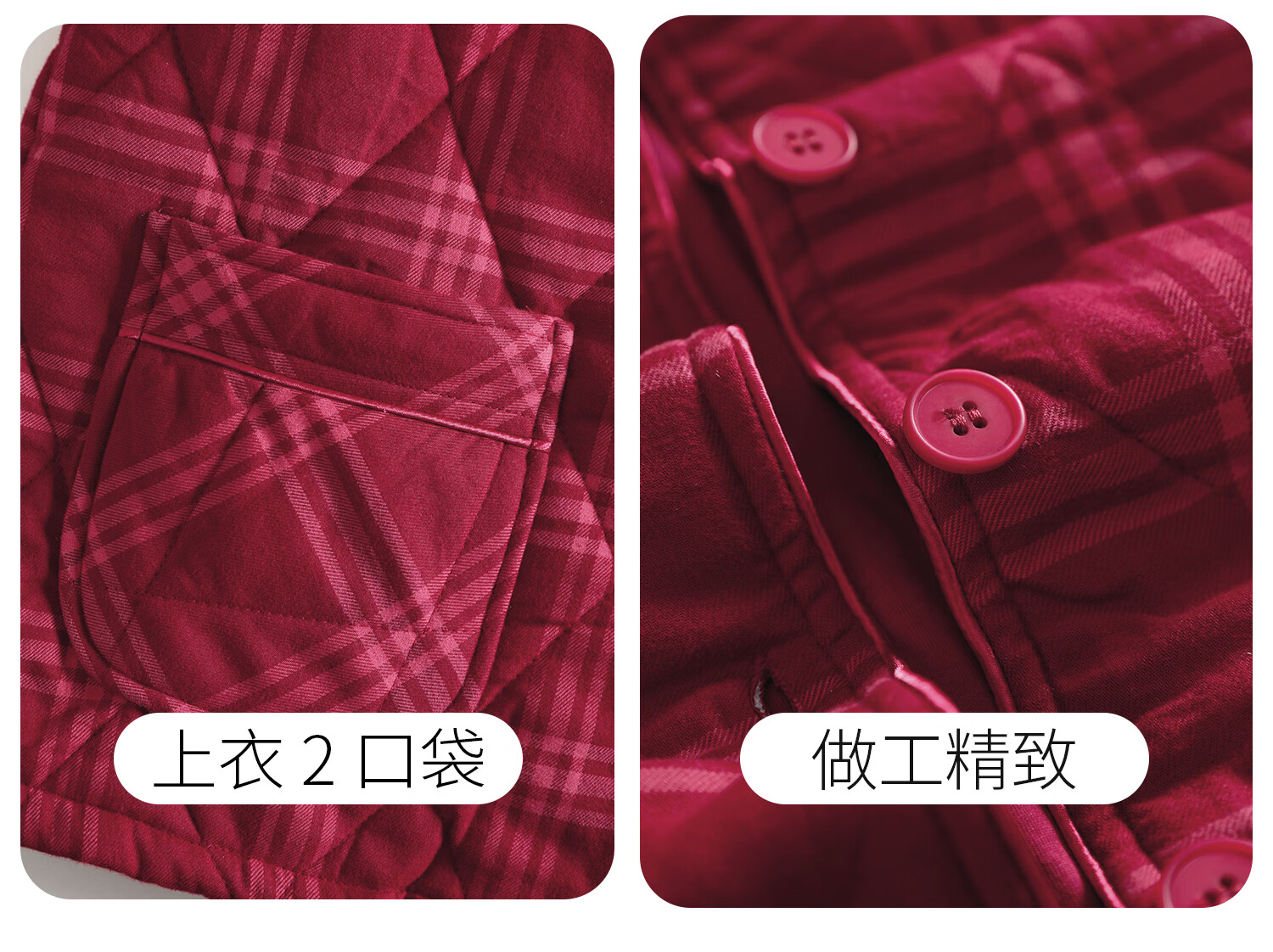 American Standard Couple Three-Layer Thickened Padded Pajamas Set for Women Autumn and Winter Red Wedding Pure Cotton Plaid Home Clothing for Men Cherry Red (Male) XL