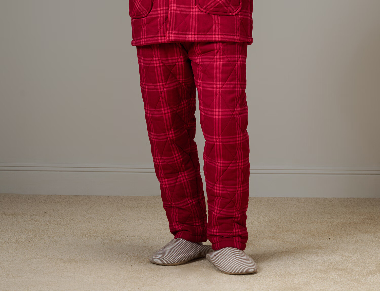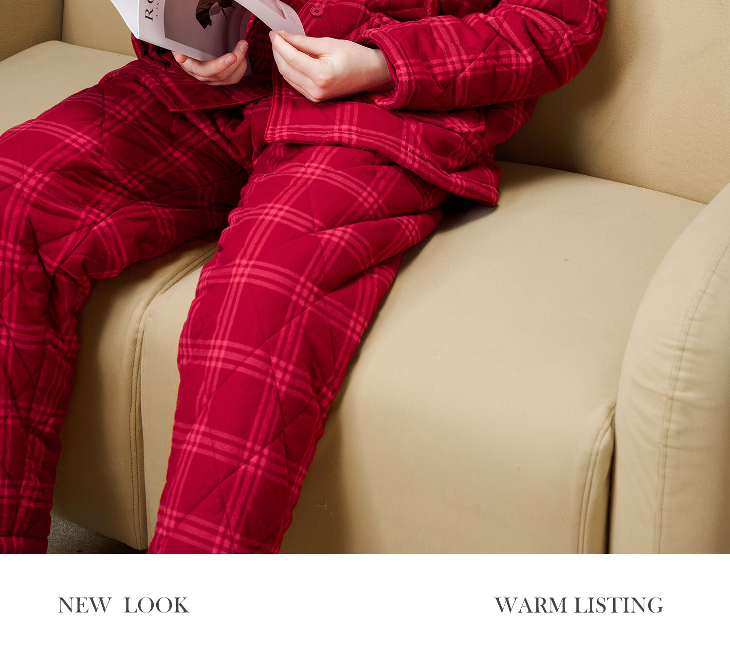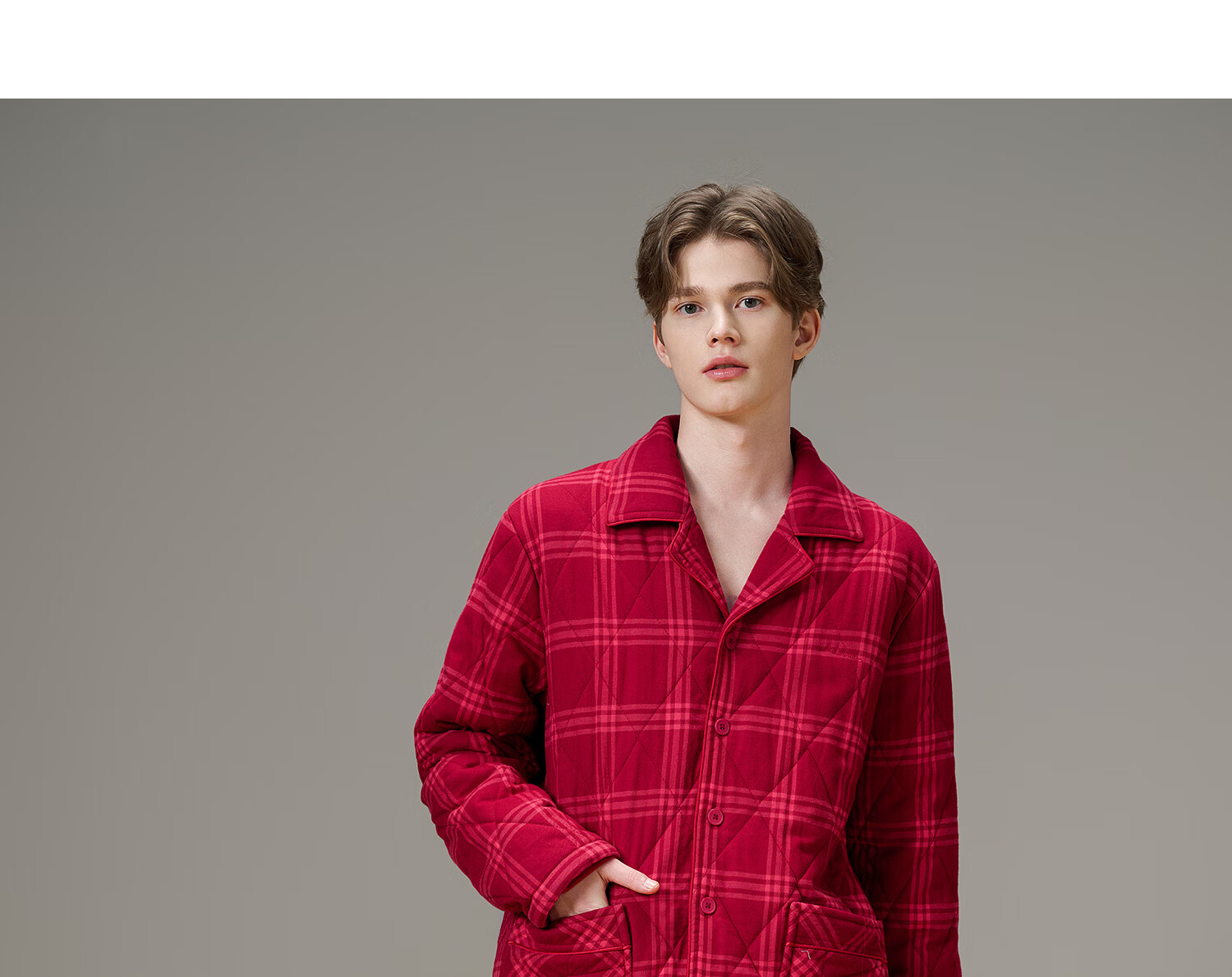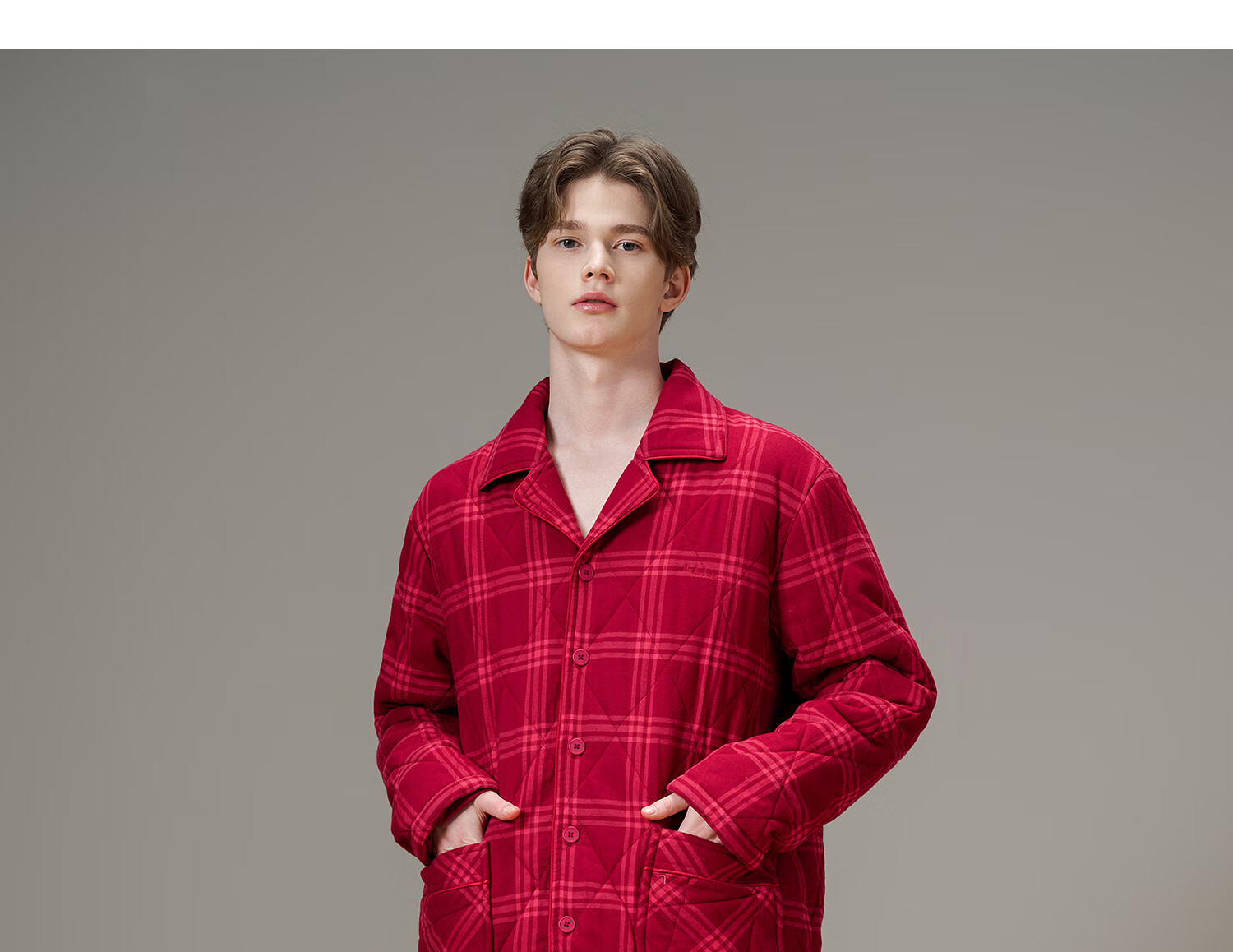American Standard Couple Three-Layer Thickened Padded Pajamas Set for Women Autumn and Winter Red Wedding Pure Cotton Plaid Home Clothing for Men Cherry Red (Male) XL