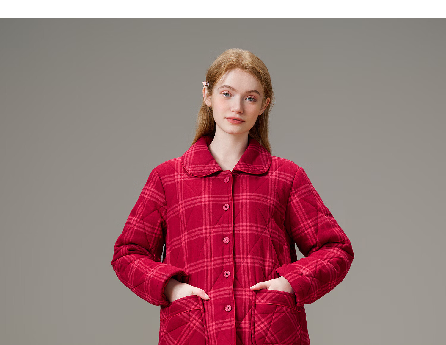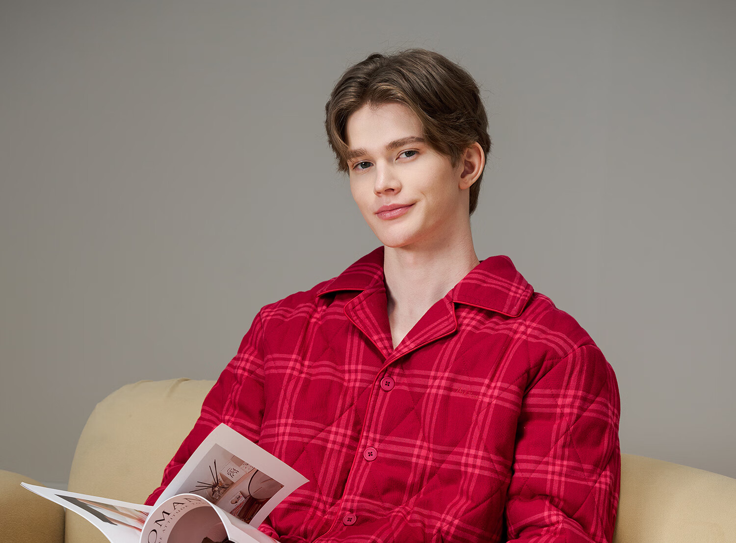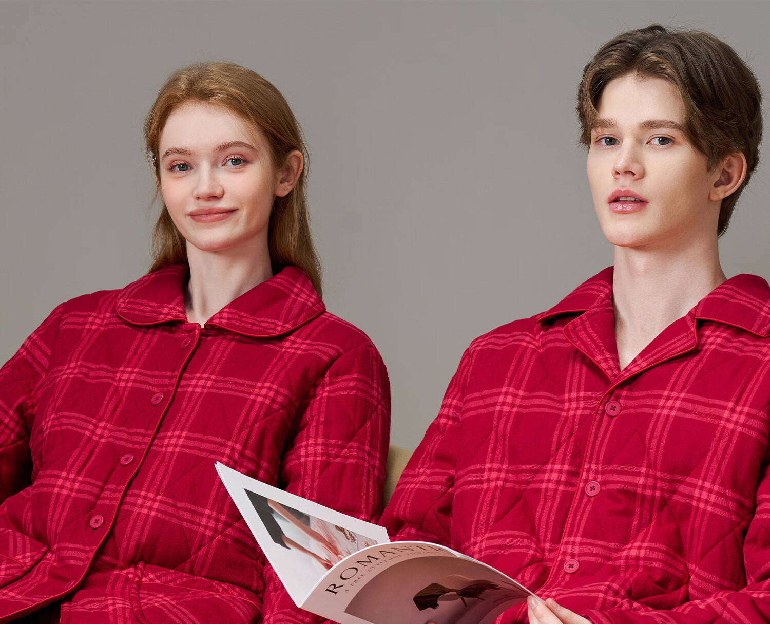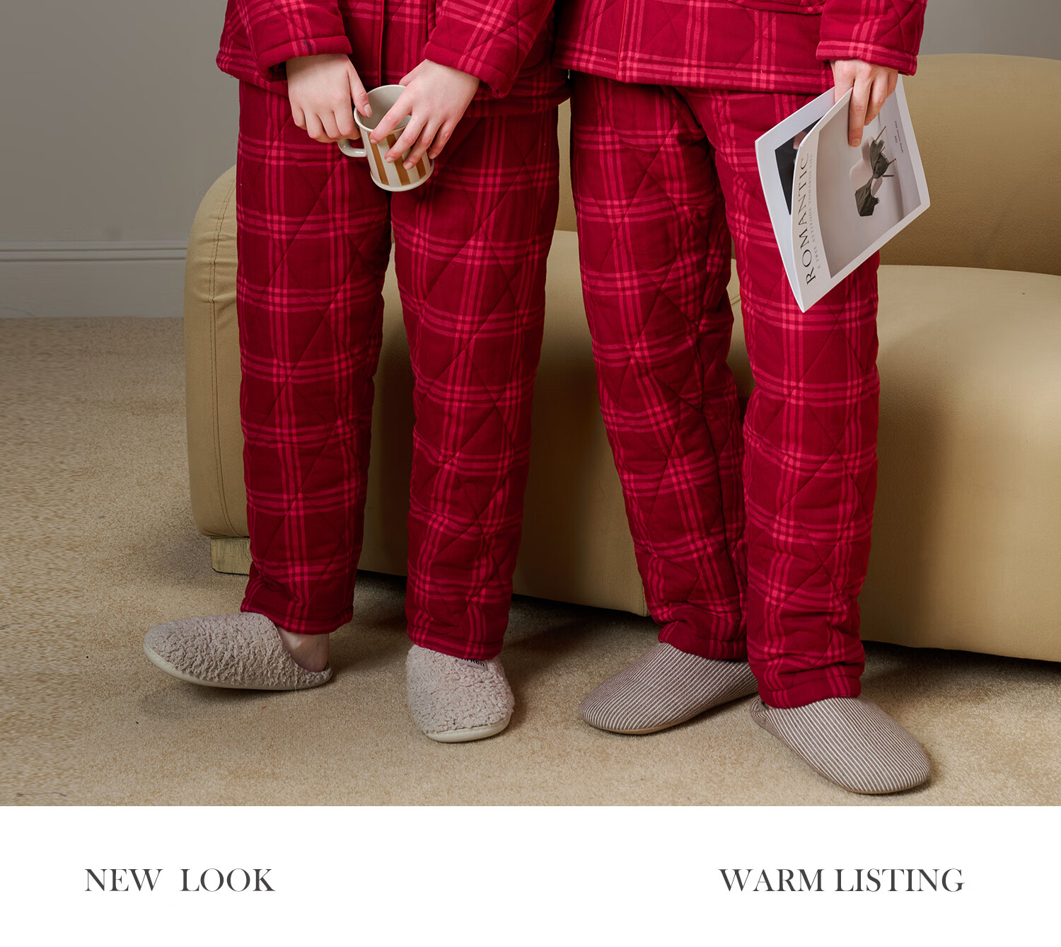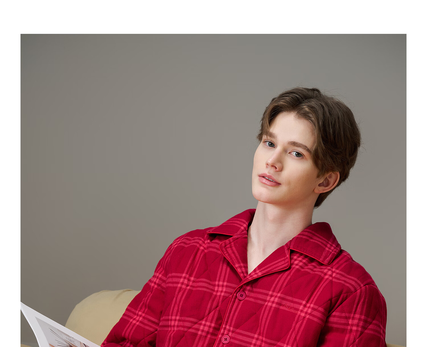 American Standard Couple Three-Layer Thickened Padded Pajamas Set for Women Autumn and Winter Red Wedding Pure Cotton Plaid Home Clothing for Men Cherry Red (Male) XL