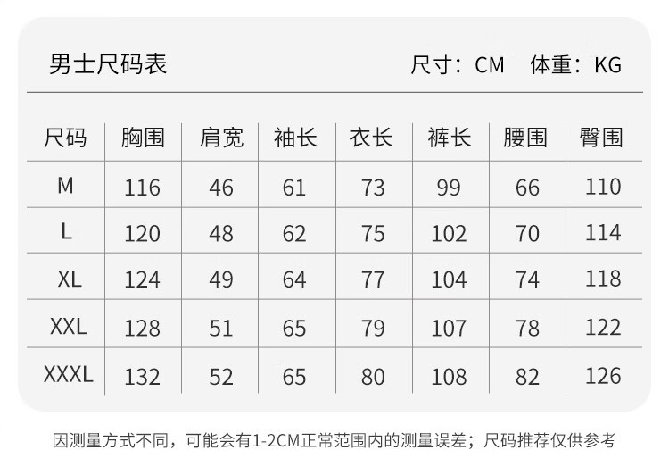 China (cm) 165 / 88-90 170 / 96-98 175 / 108-110 180 / 118-122 185 / 126-130