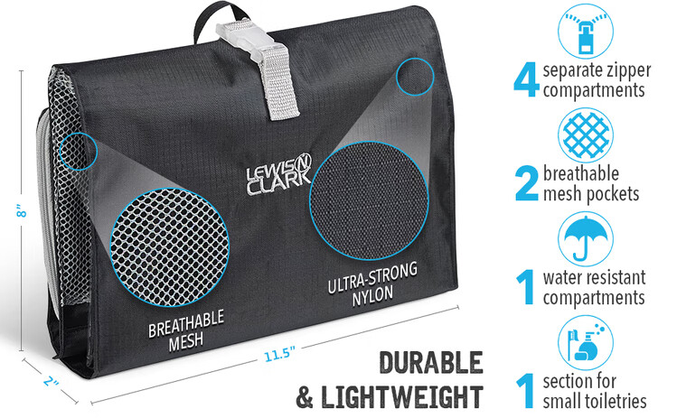 Lewis N. Clark portable folding travel toiletry bag, 4-part waterproof storage, a must-have for outdoor business trips