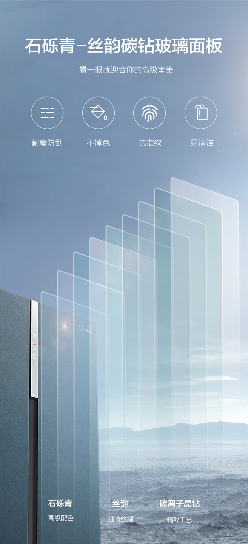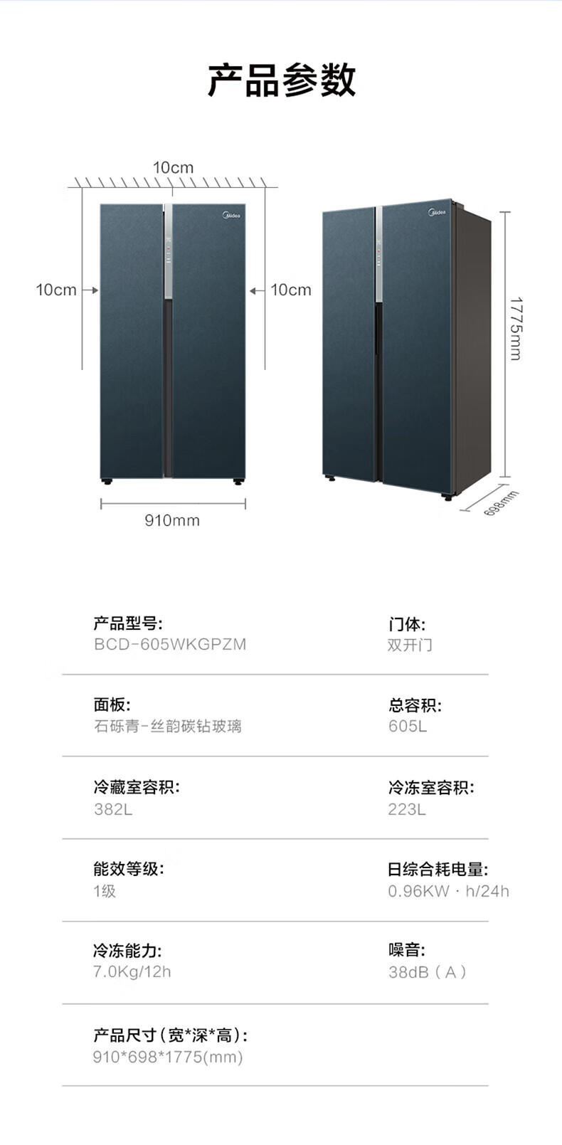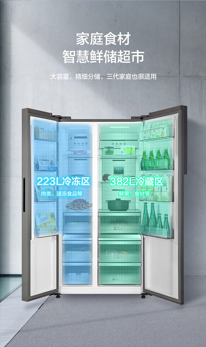 Midea Midea double-door household refrigerator large capacity first-level frequency conversion intelligent air-cooled frost-free BCD-605WKGPZM tail stock BCD-605WKGPZM stone gravel green glass door