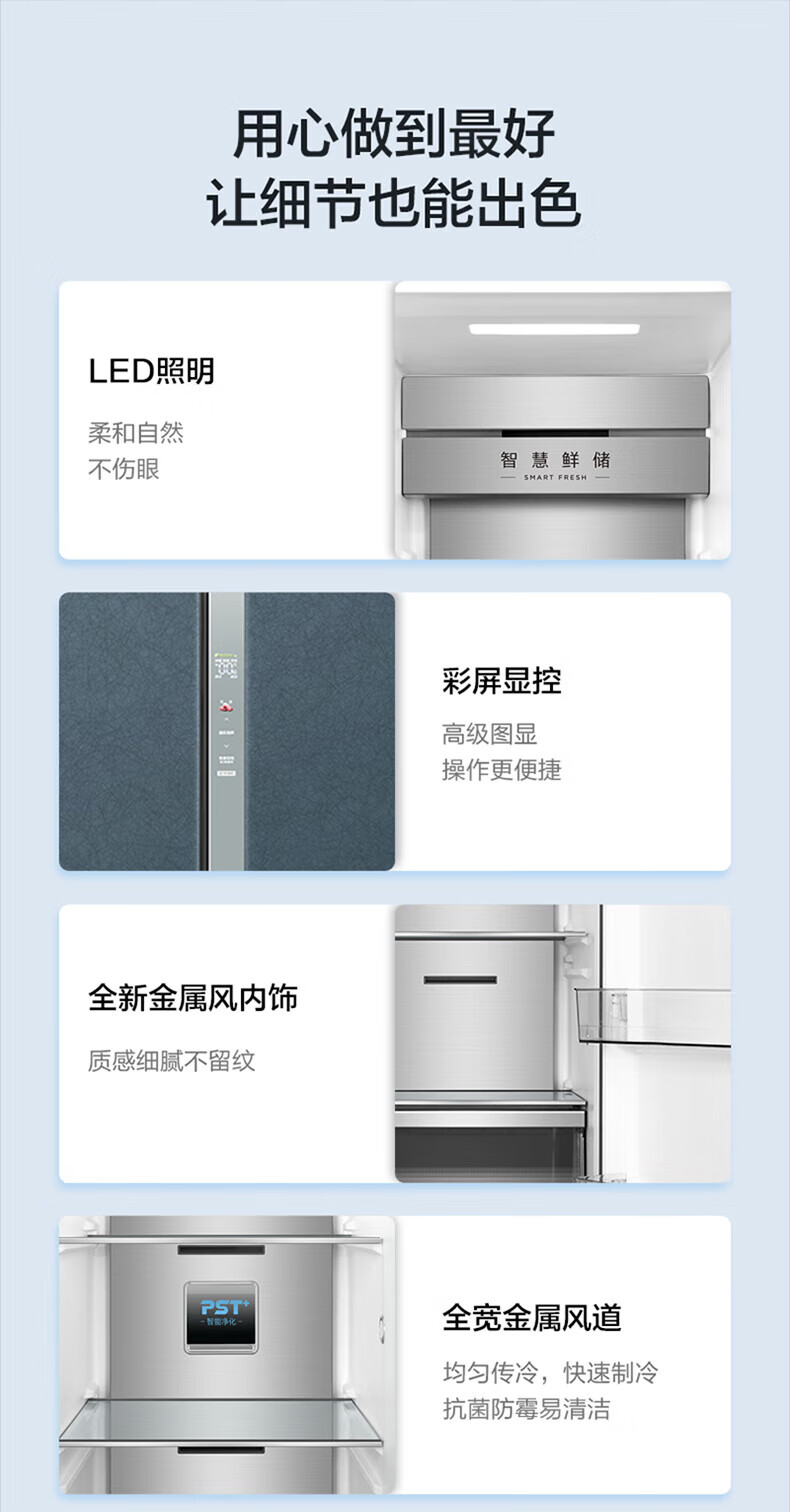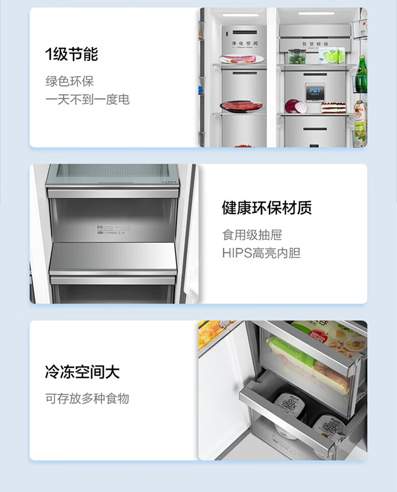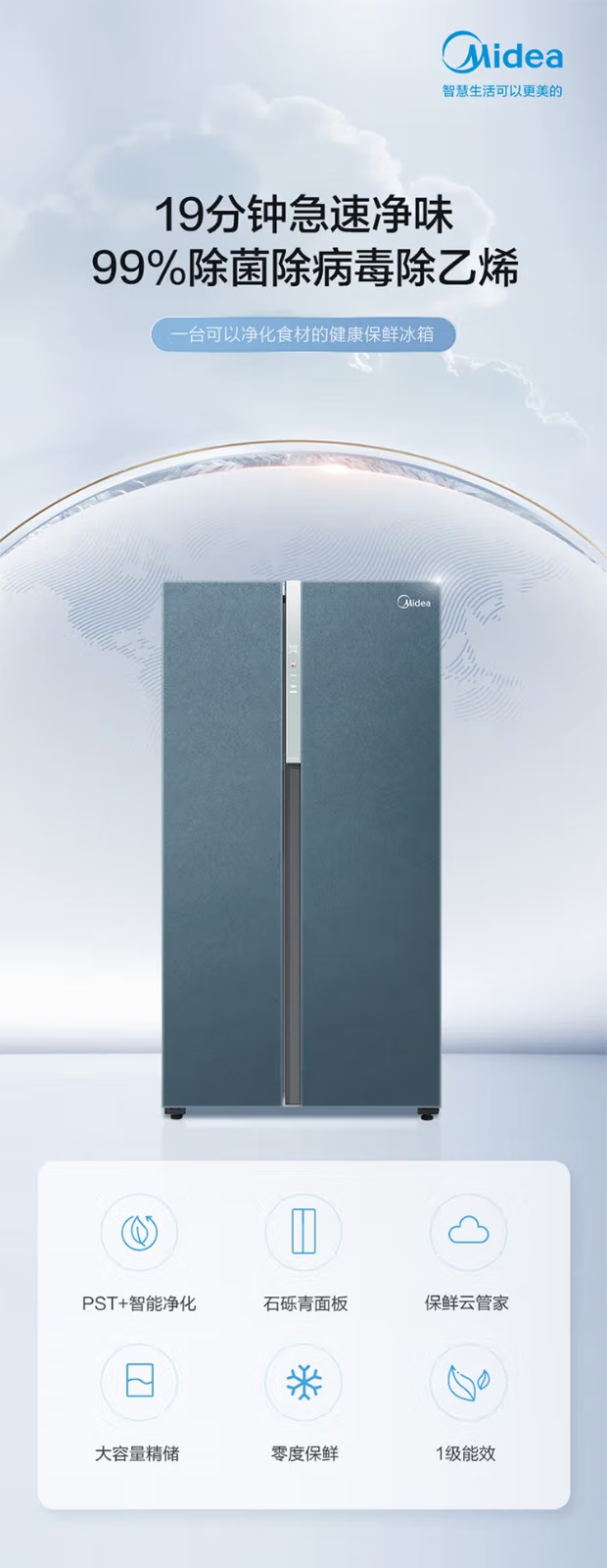 Midea Midea double-door household refrigerator large capacity first-level frequency conversion intelligent air-cooled frost-free BCD-605WKGPZM tail stock BCD-605WKGPZM stone gravel green glass door