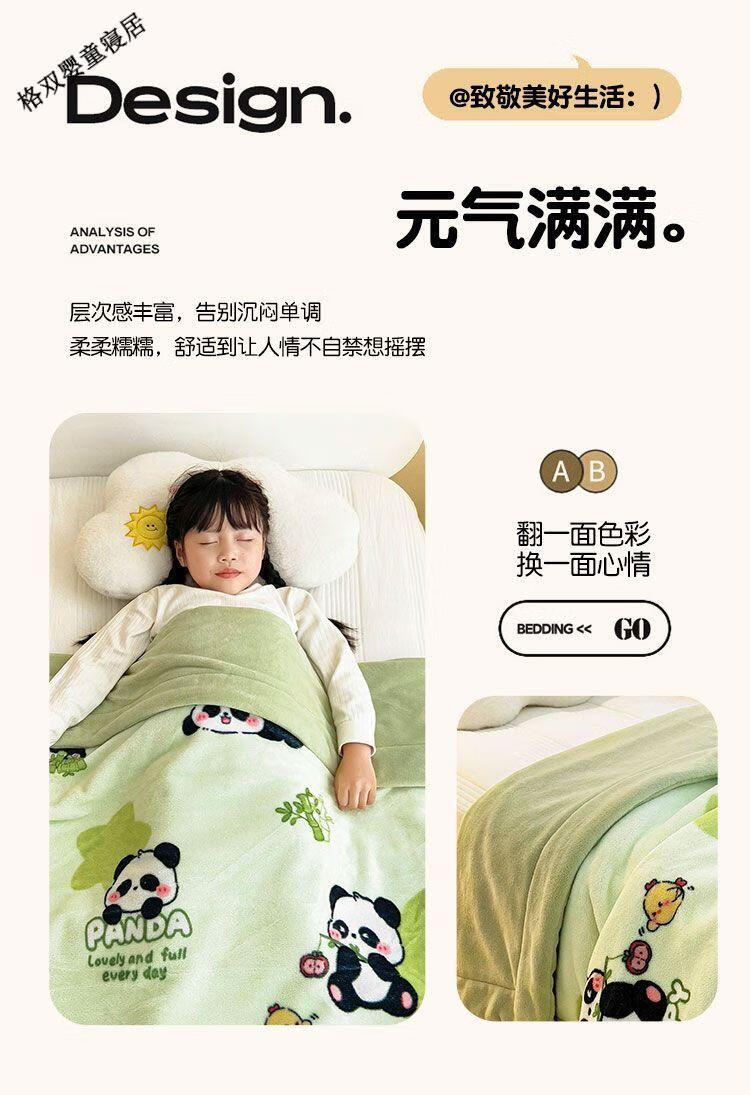 Disney Cute Panda Blanket Type A Milk Velvet Newborn Baby Blanket Children's Small Blanket Cover Autumn and Winter Double Layer Thickened Panda Zaizai Soft Milk Velvet 100*120cm Infant and Child Style