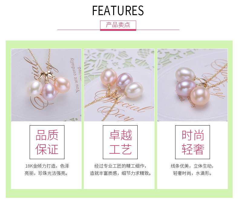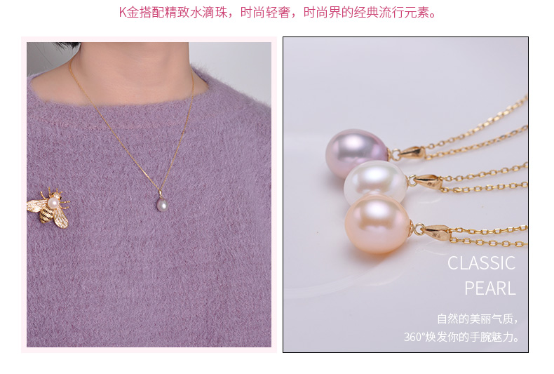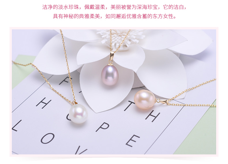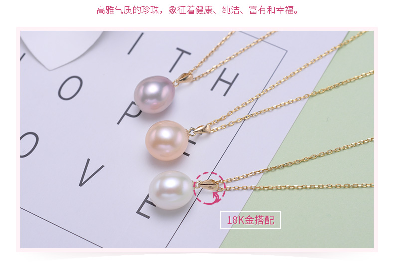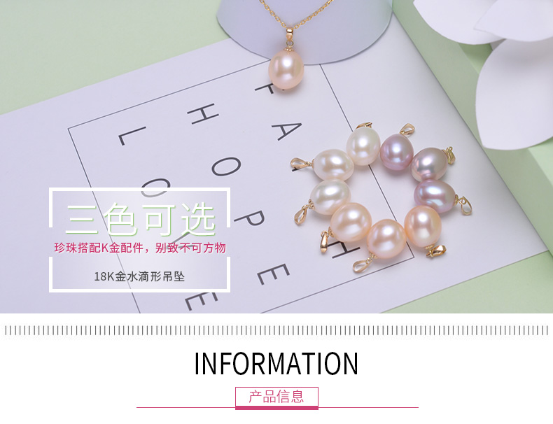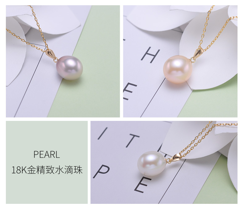 Luoyi 9.5-10mm drop-shaped freshwater pearl 18K gold pendant with three colors available white pearl
