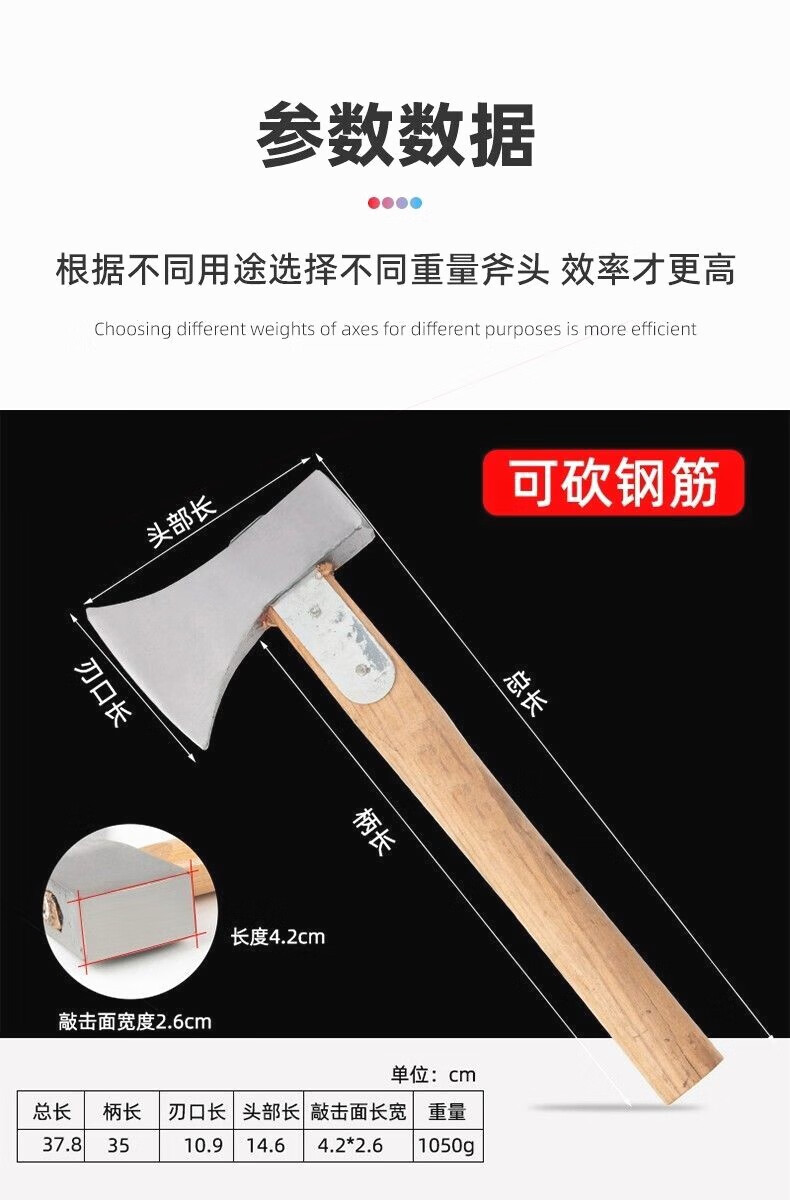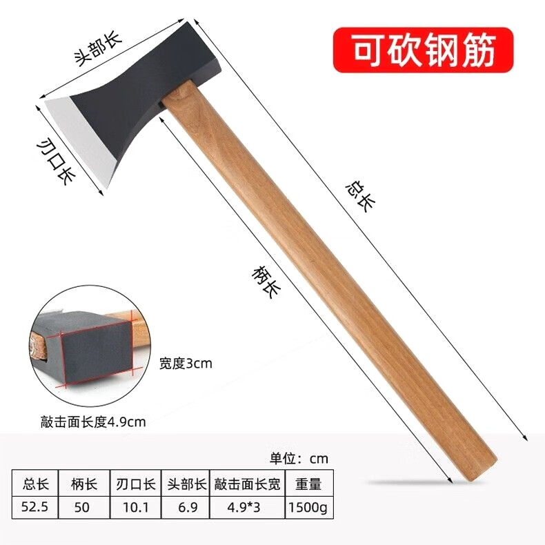 CLCEY imported from Germany ax firewood ax outdoor carpentry special small ax hand ax bone chopping knife all steel mountain ax 2.5Jin Jin equals 0.5kg double-sided blade black sand can cut steel bars