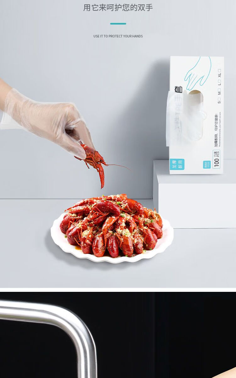 Disposable gloves for food catering and hairdressing household thickened hand mask transparent plastic crayfish gloves 100 pieces disposable gloves