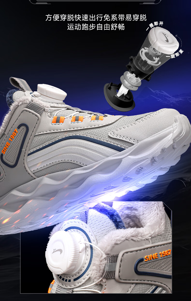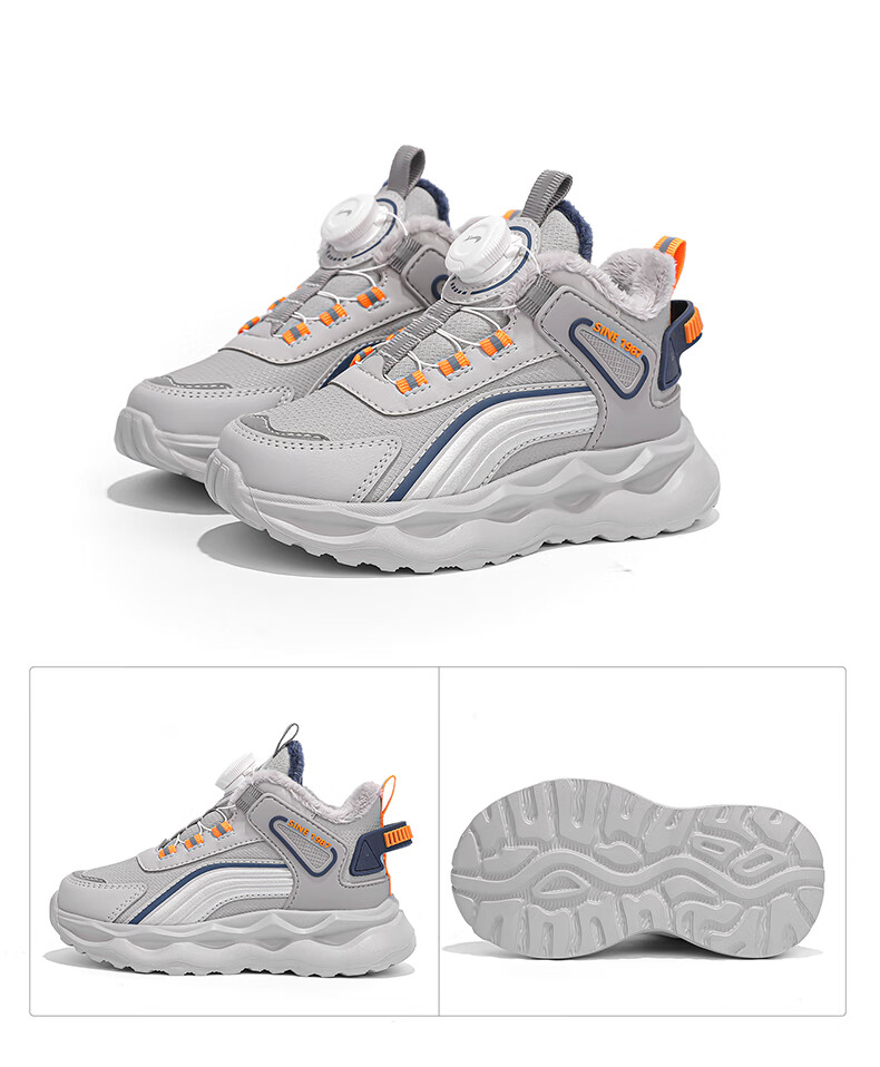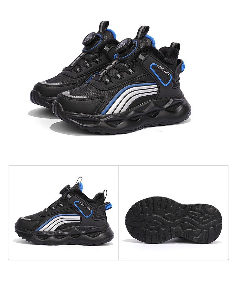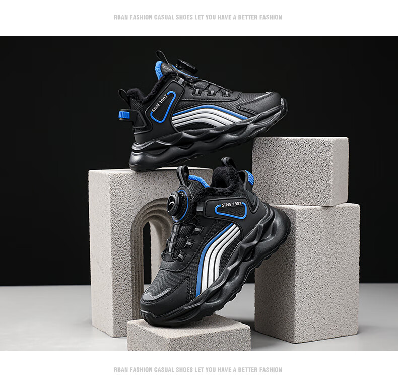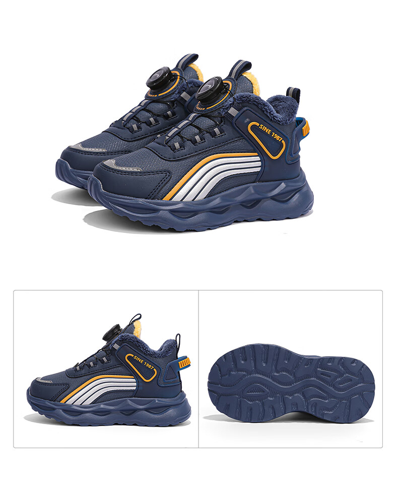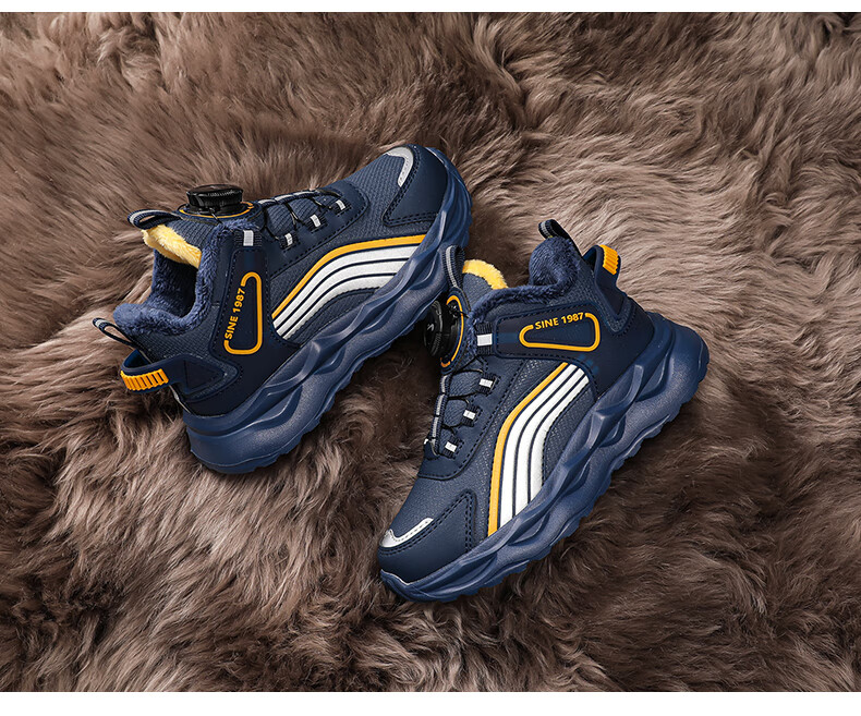 Guirenniao children's shoes 2025 winter new velvet thickened cotton shoes leather surface waterproof and warm children's sports shoes boys and girls trendy shoes dark blue size 37