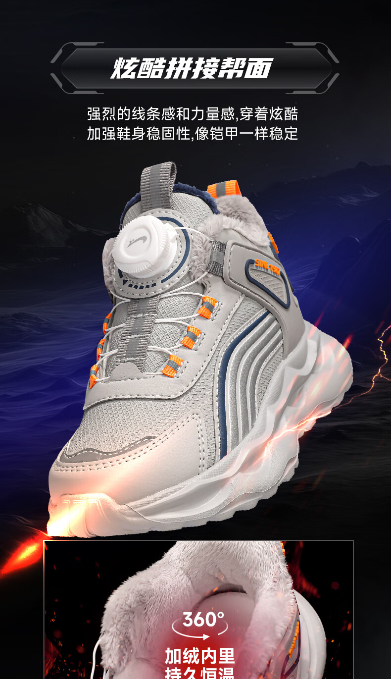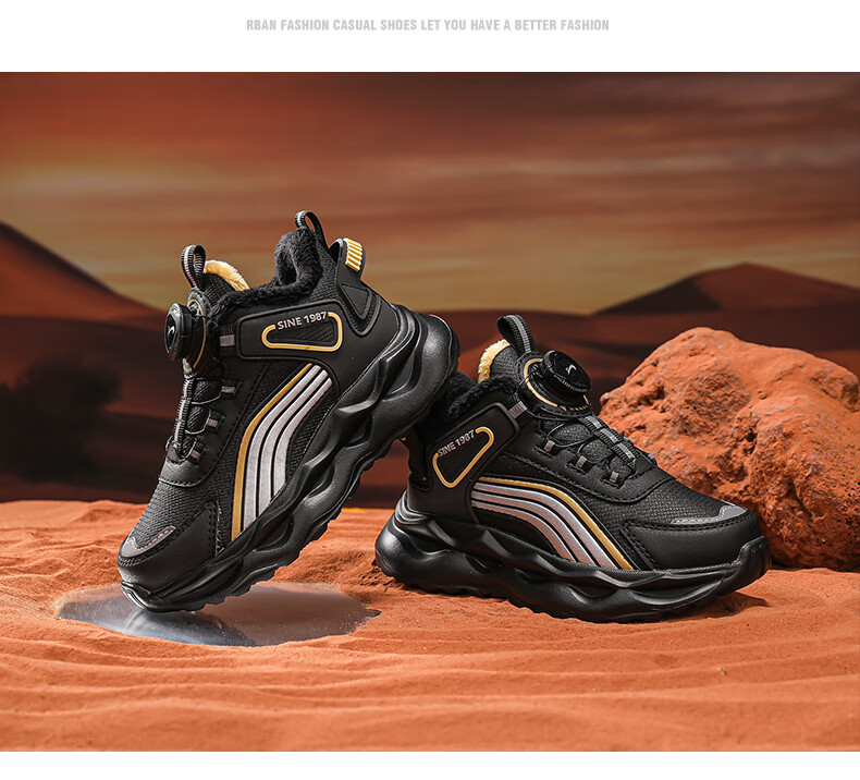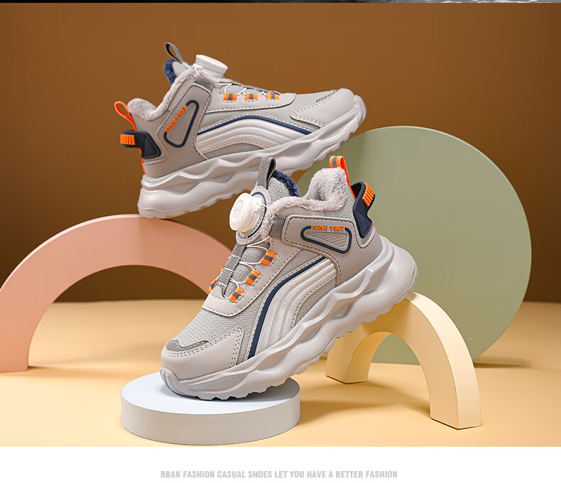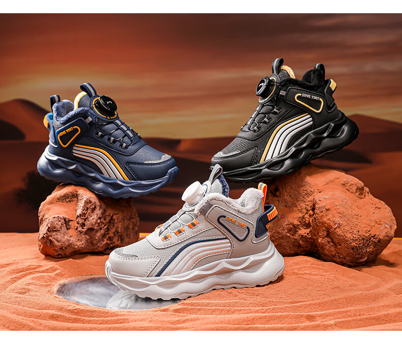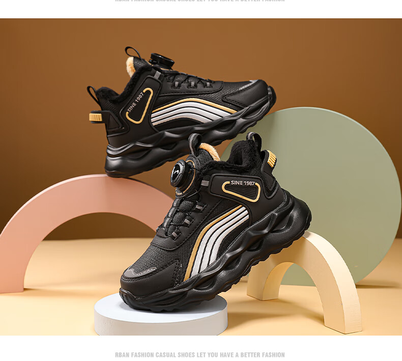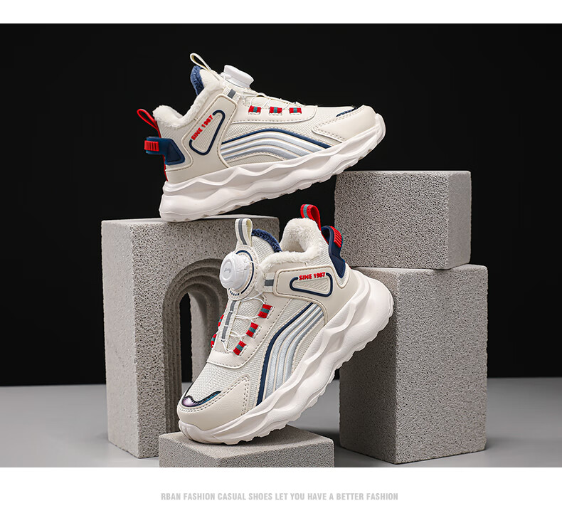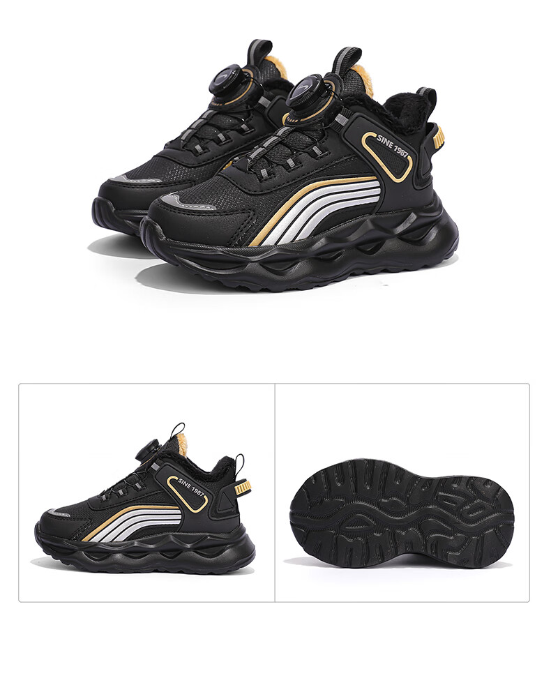Guirenniao children's shoes 2025 winter new velvet thickened cotton shoes leather surface waterproof and warm children's sports shoes boys and girls trendy shoes dark blue size 37