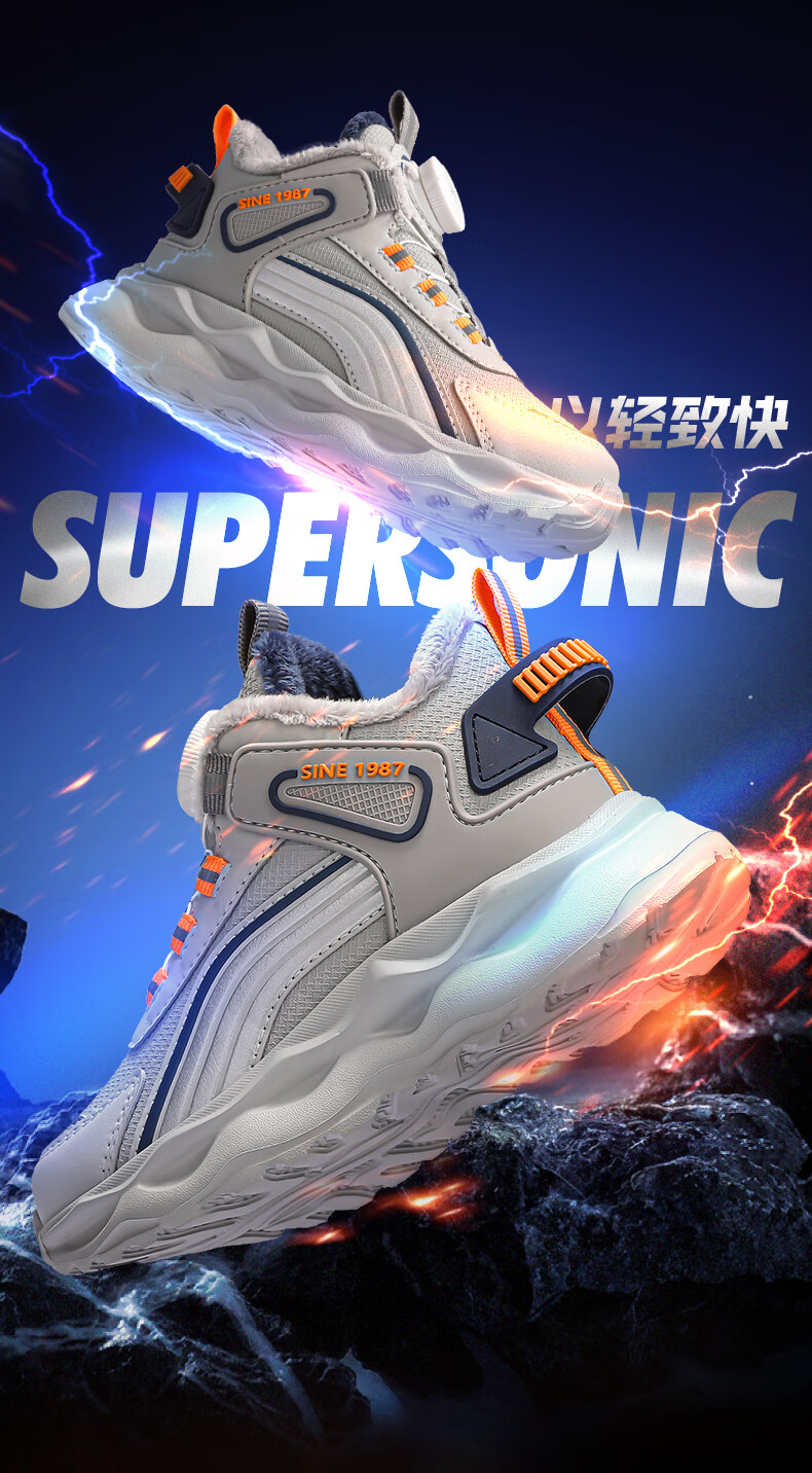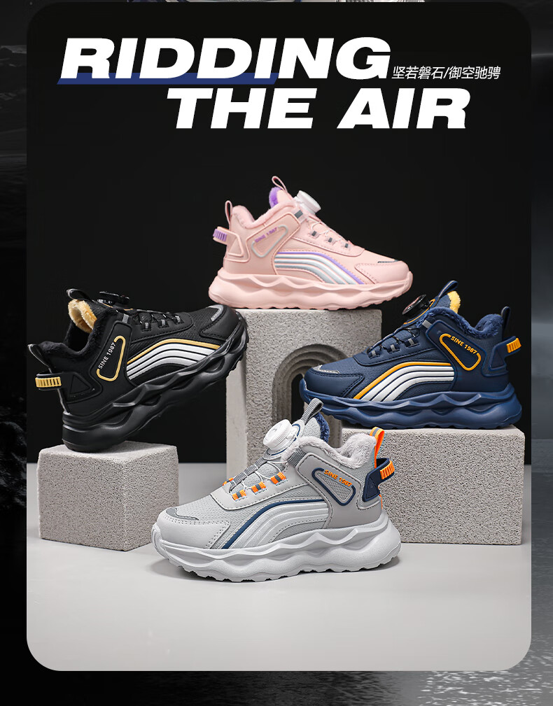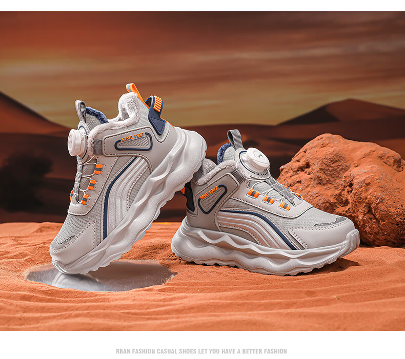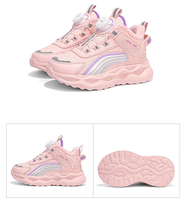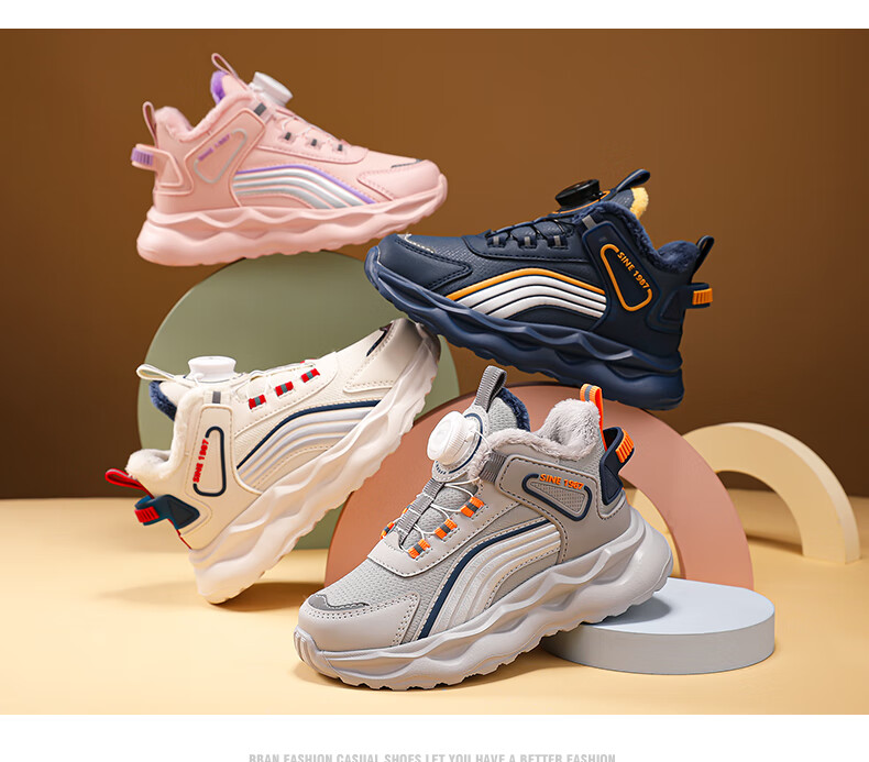 Guirenniao children's shoes 2025 winter new velvet thickened cotton shoes leather surface waterproof and warm children's sports shoes boys and girls trendy shoes dark blue size 37