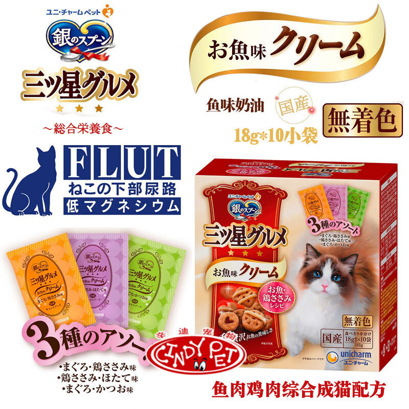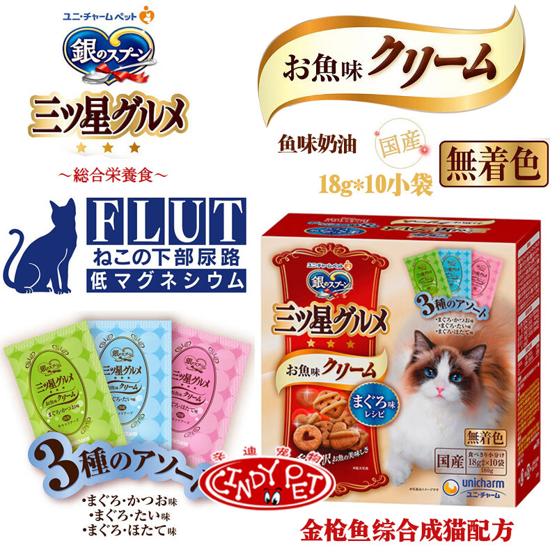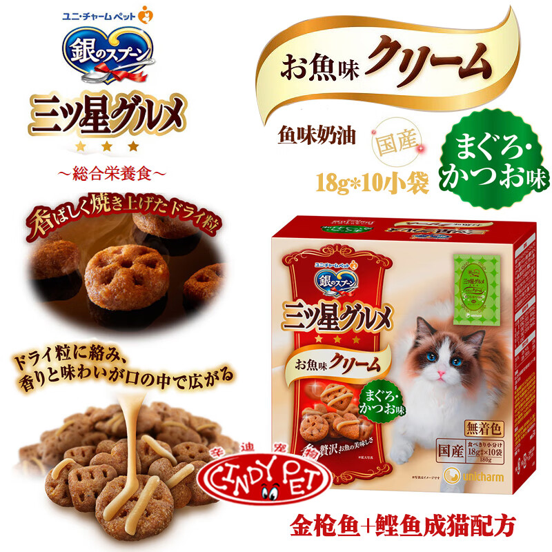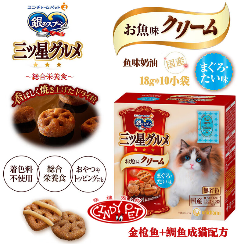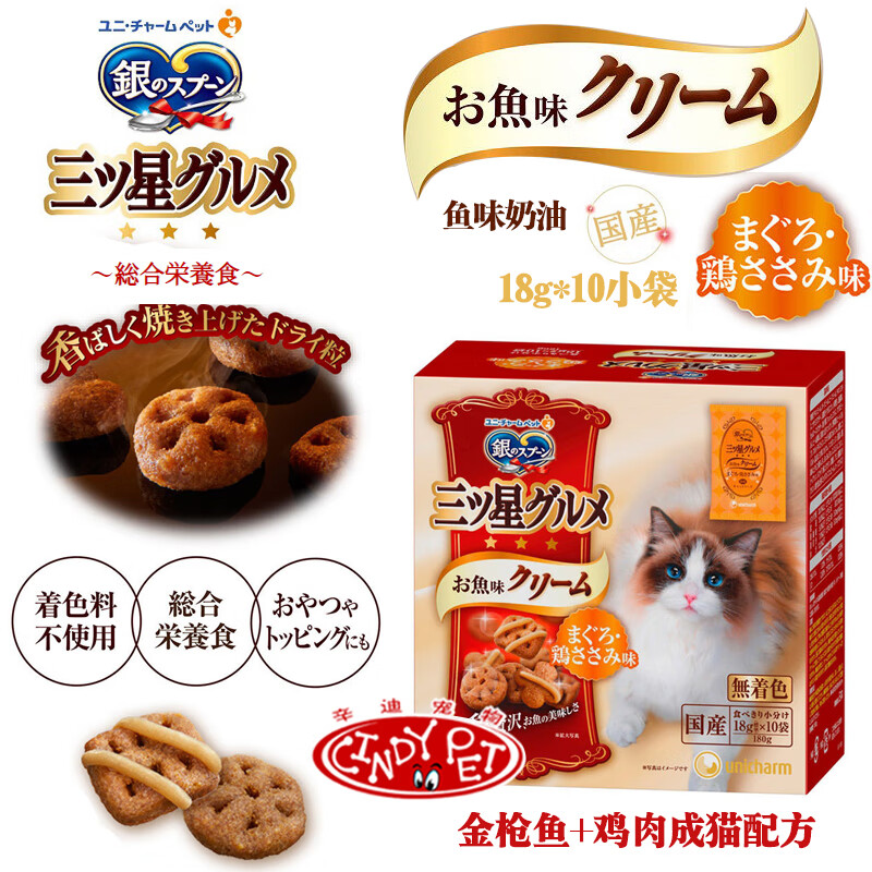 Du Lailin Japan's original imported silver spoon Samsung gourmet cream cat biscuits crispy silver spoon cat food hair removal snacks cream biscuits tuna + bonito 180g 1 box