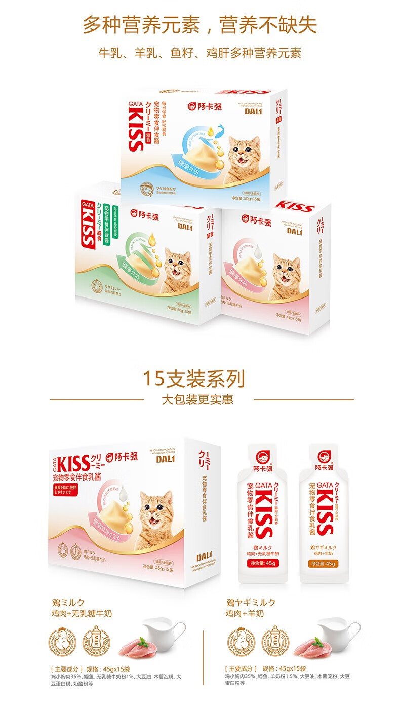 AKACHAN AKACHAN KISS Mixed Food Sauce Pet Cat Snacks Cat Strips Adult and Young Cats Caviar Cat Sauce Hydrating Nutritional Strips 15 Count Several Mixed Mixes X15 Count 1 Box