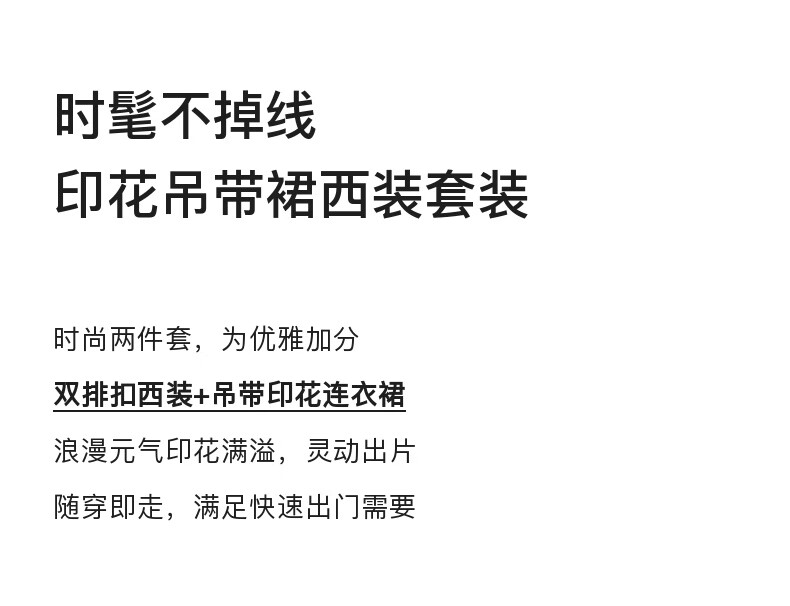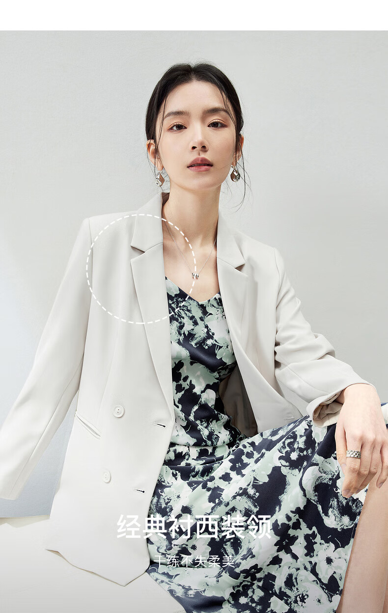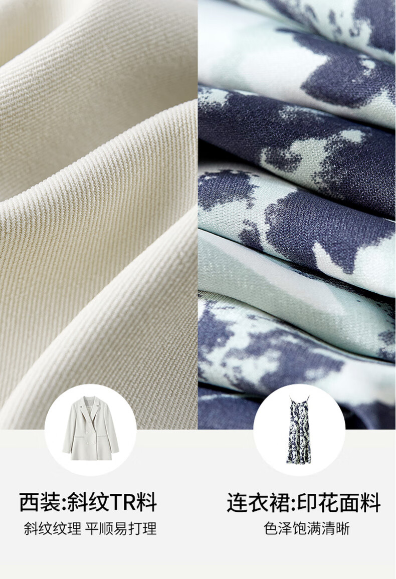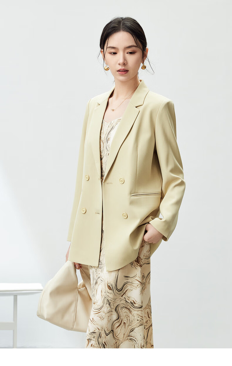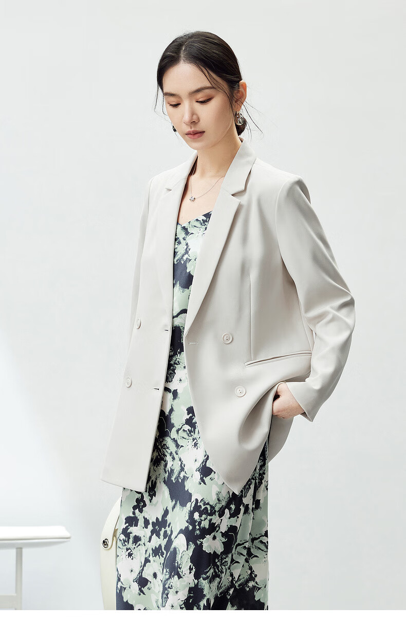 Chandubila fashionable and elegant double-breasted blazer romantic printed suspender dress suit apricot with gray blue XL