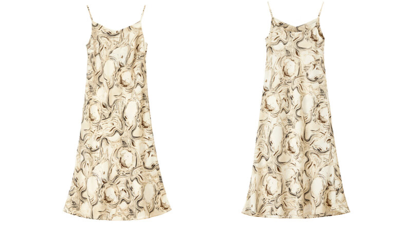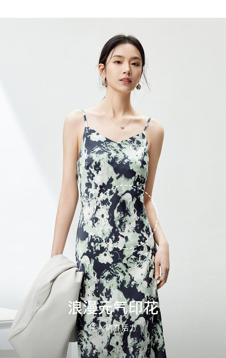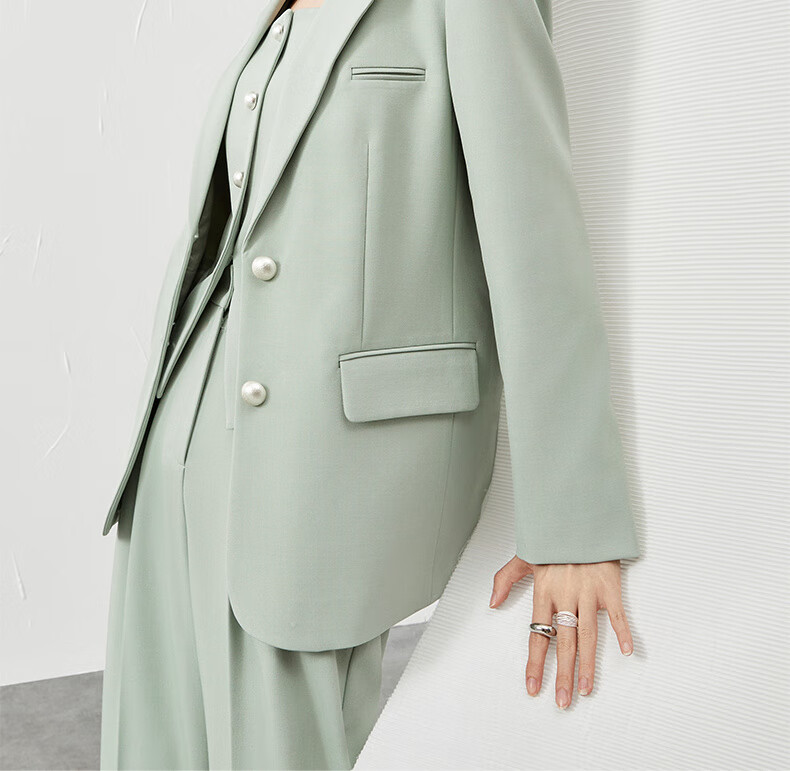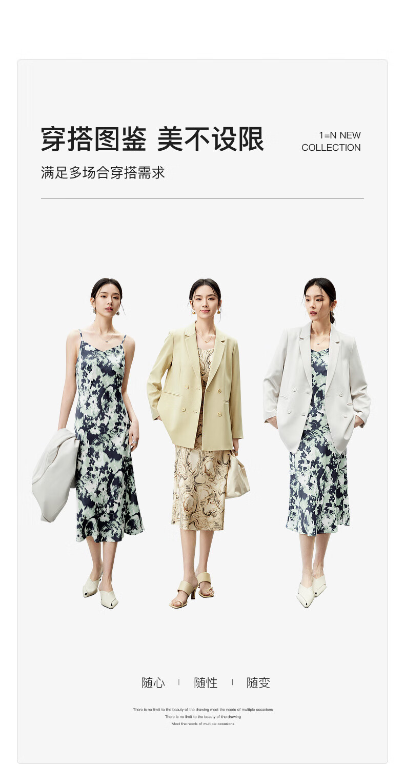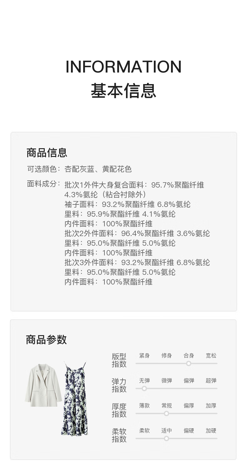 Chandubila fashionable and elegant double-breasted blazer romantic printed suspender dress suit apricot with gray blue XL