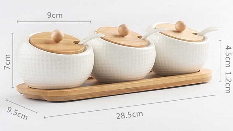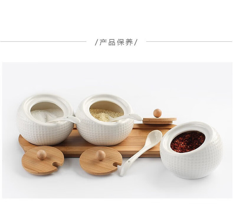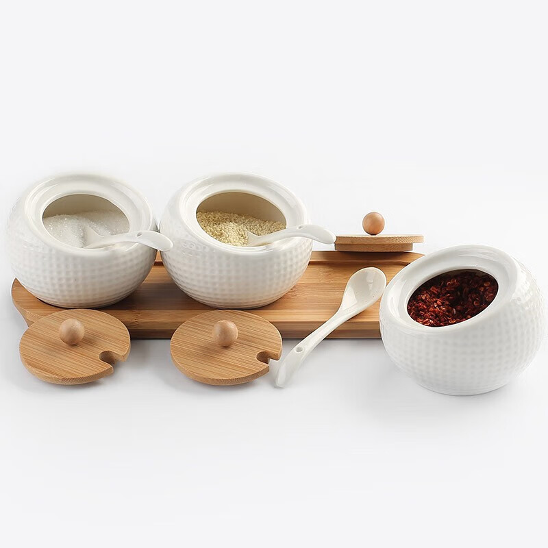 Wilkie ceramic seasoning jar seasoning box seasoning jar kitchen seasoning box seasoning container set sealed spoon jar combination 3-piece set seasoning jar + spoon lid + tray three-piece set