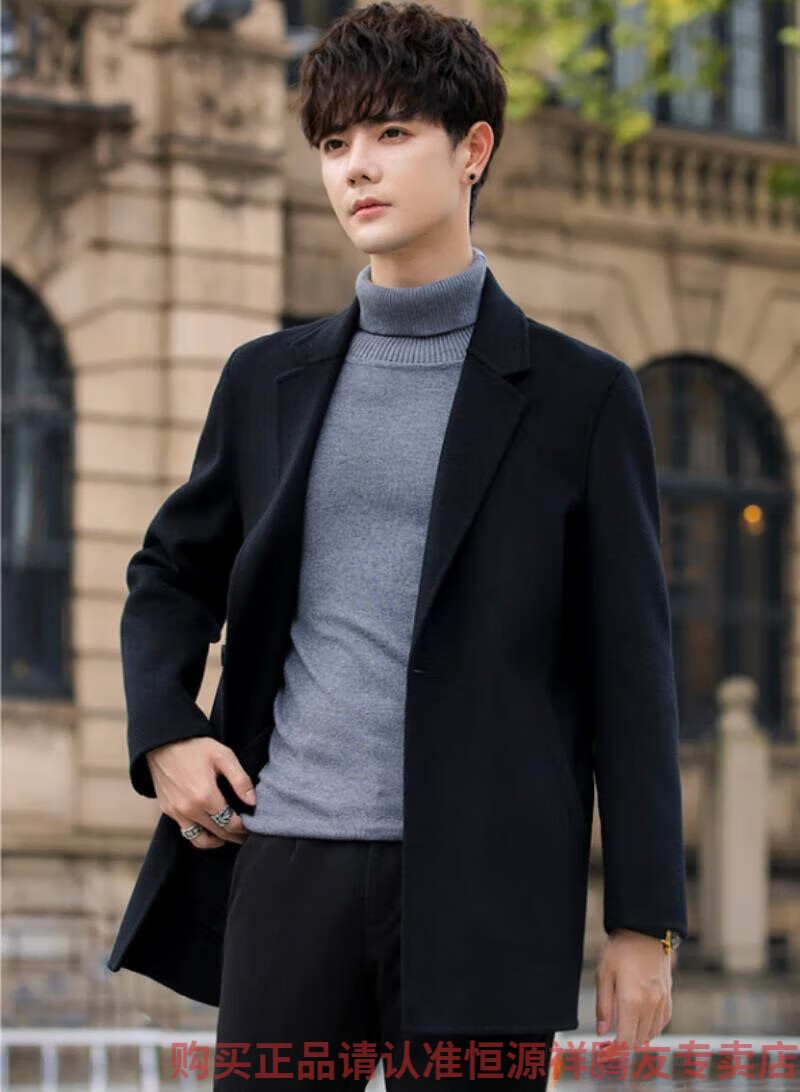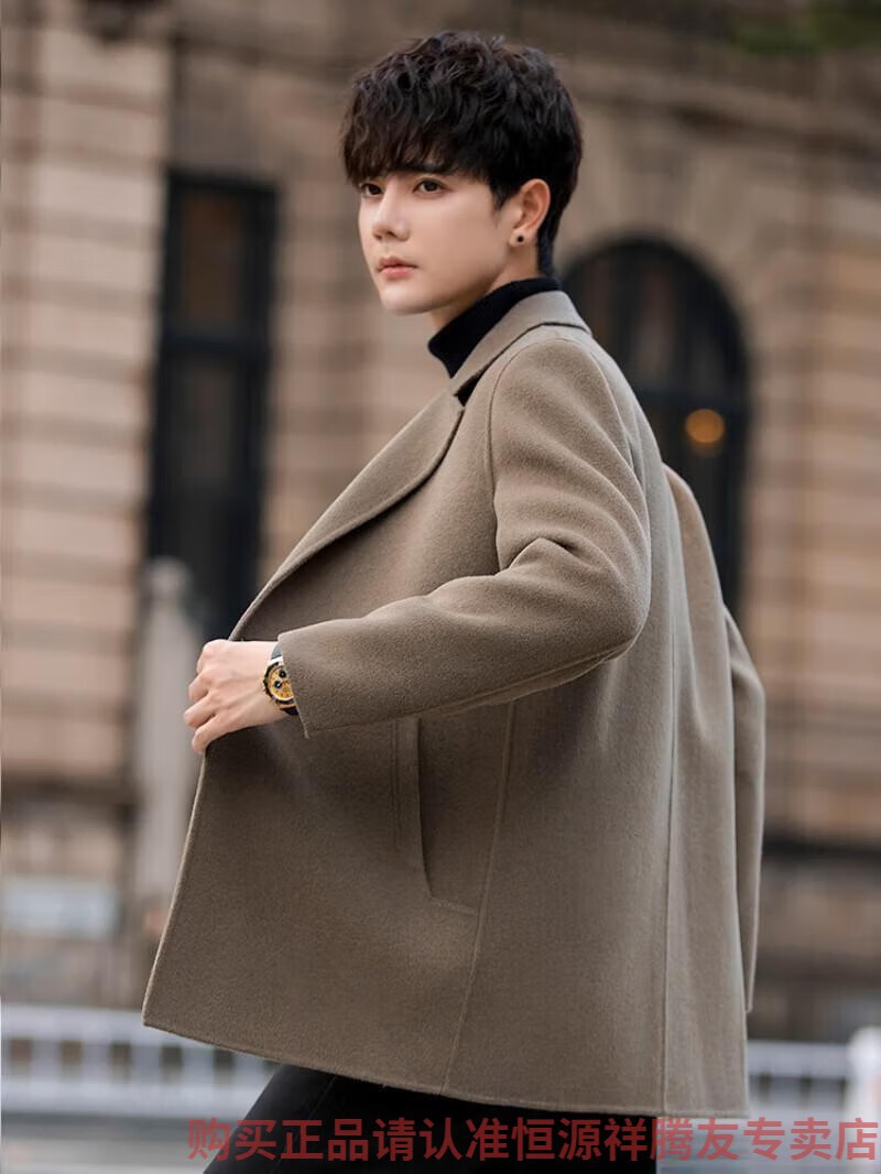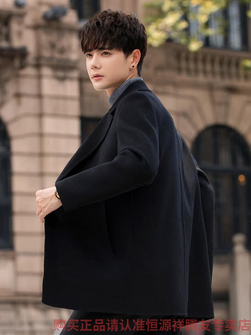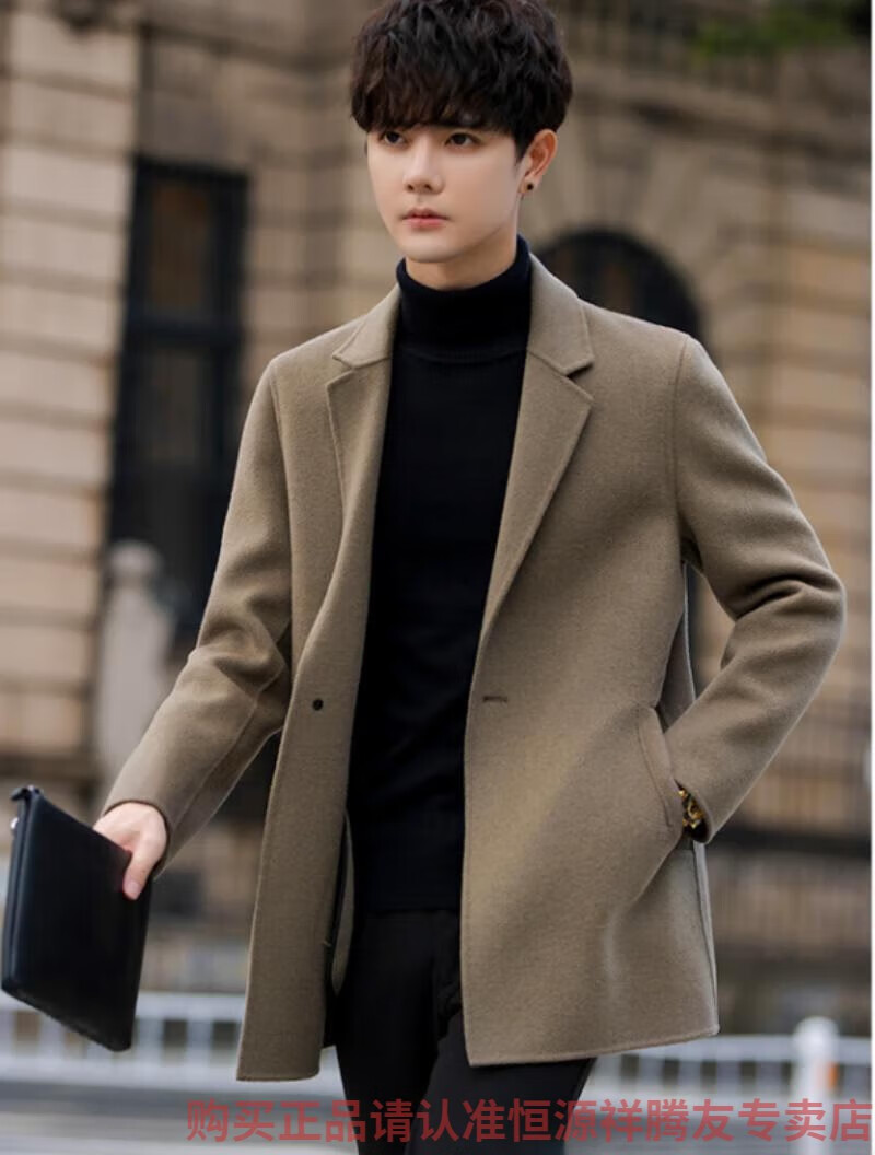 Hengyuanxiang winter woolen suit top men's thickened coat Korean style loose woolen woolen high-end suit men's woolen coat brown high-end quality 2XL recommended 140-155Jin Jin equals 0.5 kg