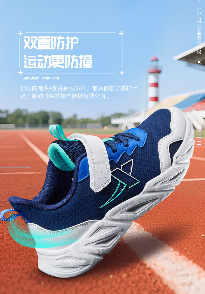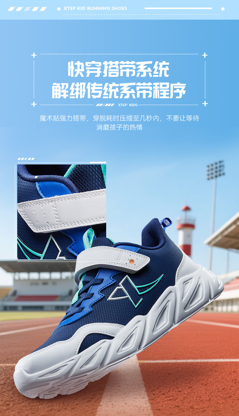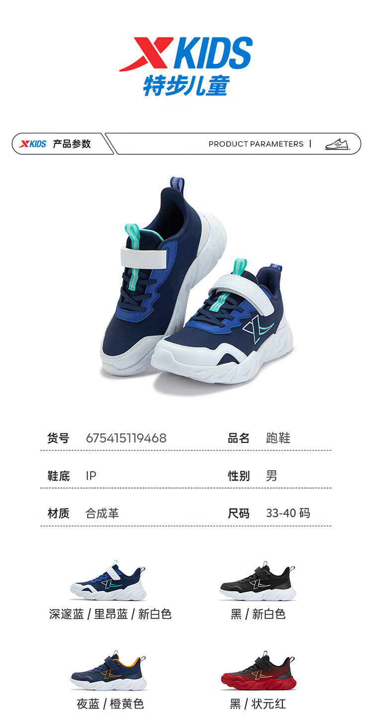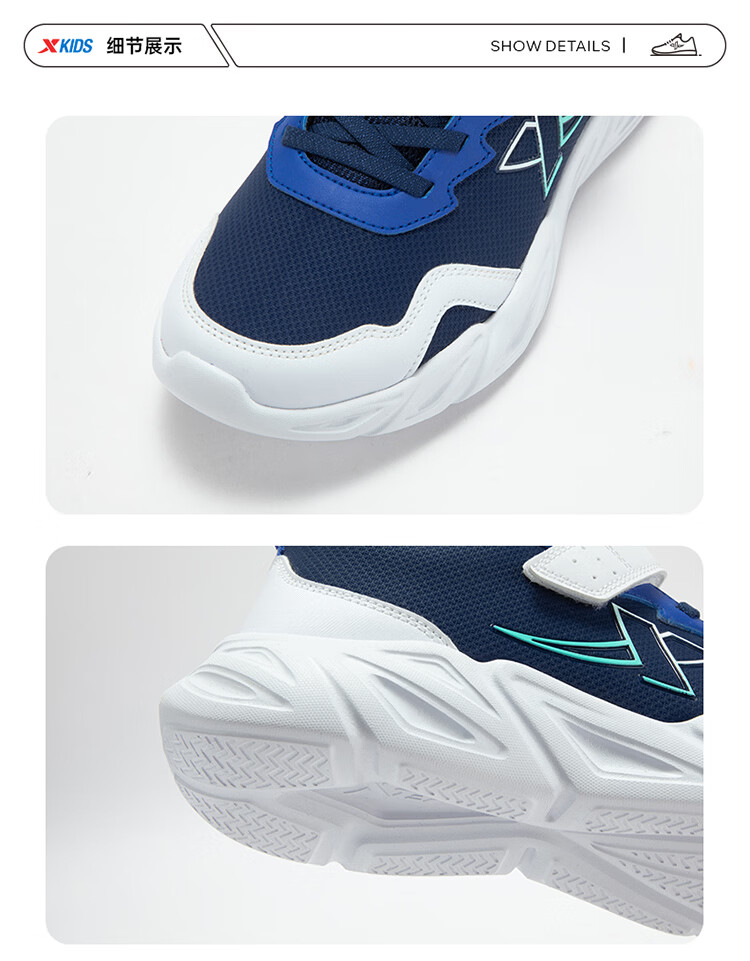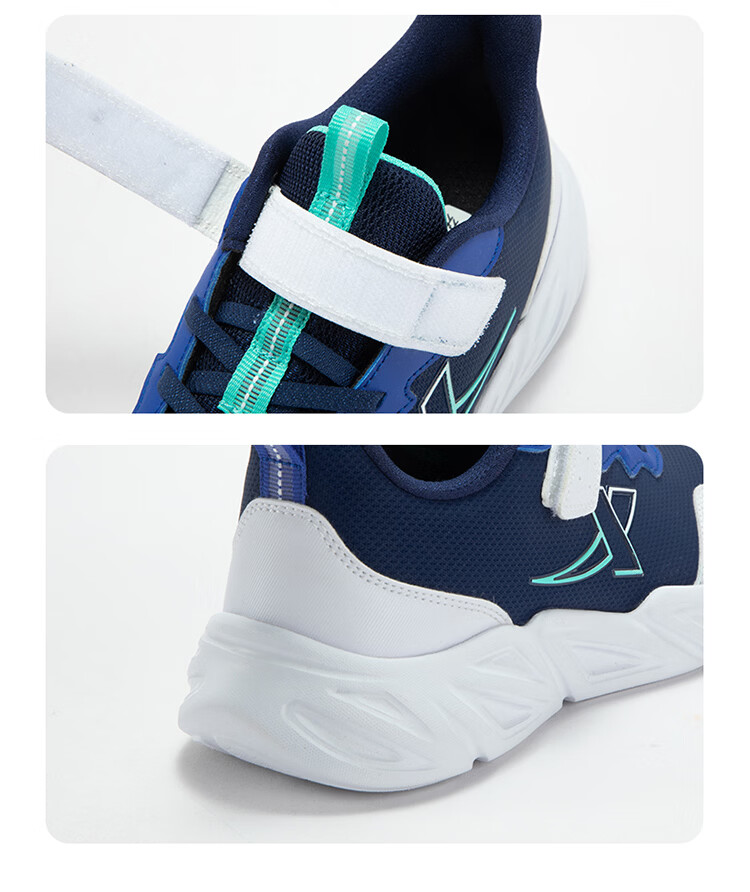 Xtep children's shoes, children's running shoes, boys, middle and large children, four-season mesh leather non-slip cushioning running shoes, Velcro buckle sports running shoes, sail white/green 9550 leather style, size 40