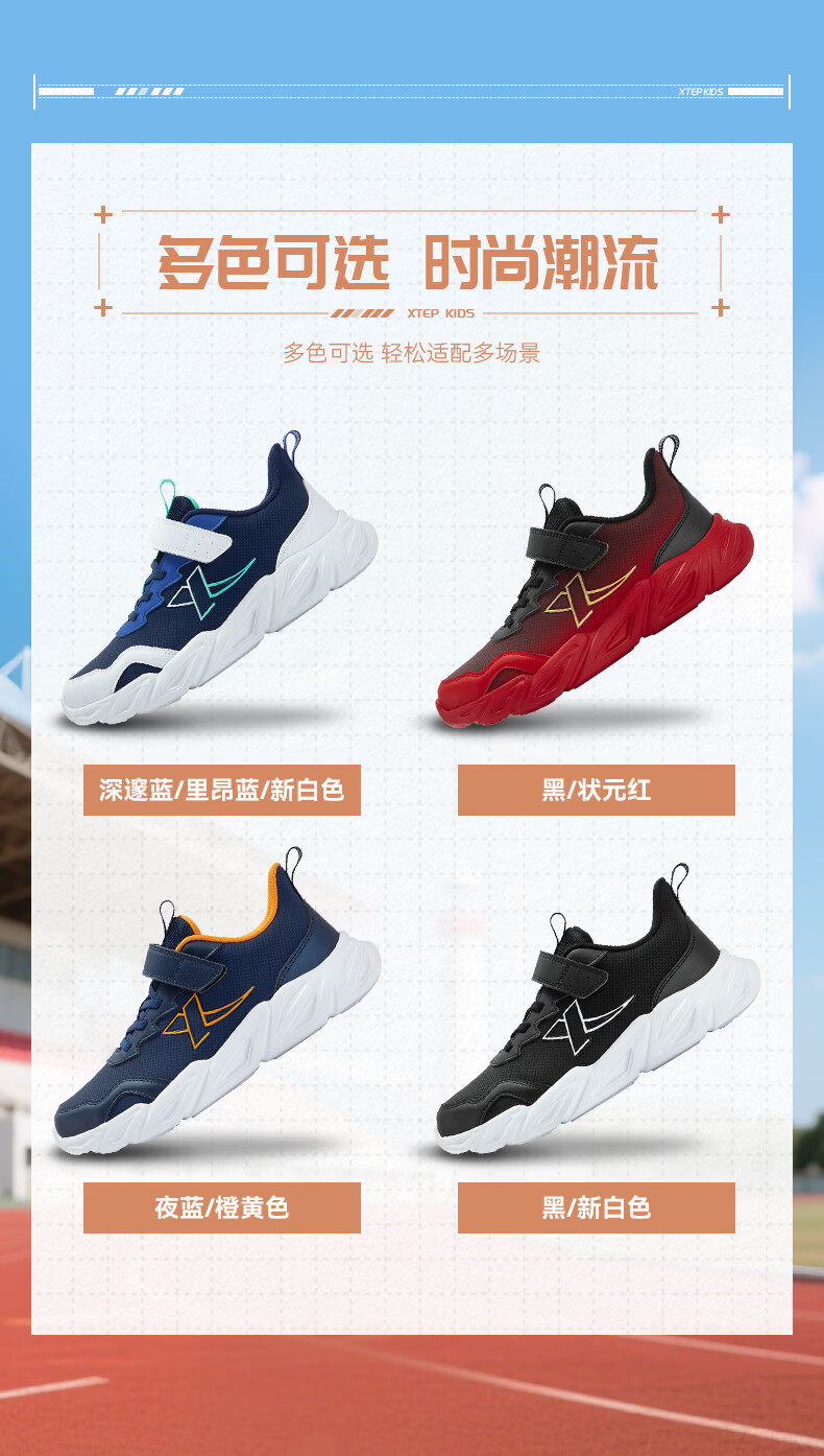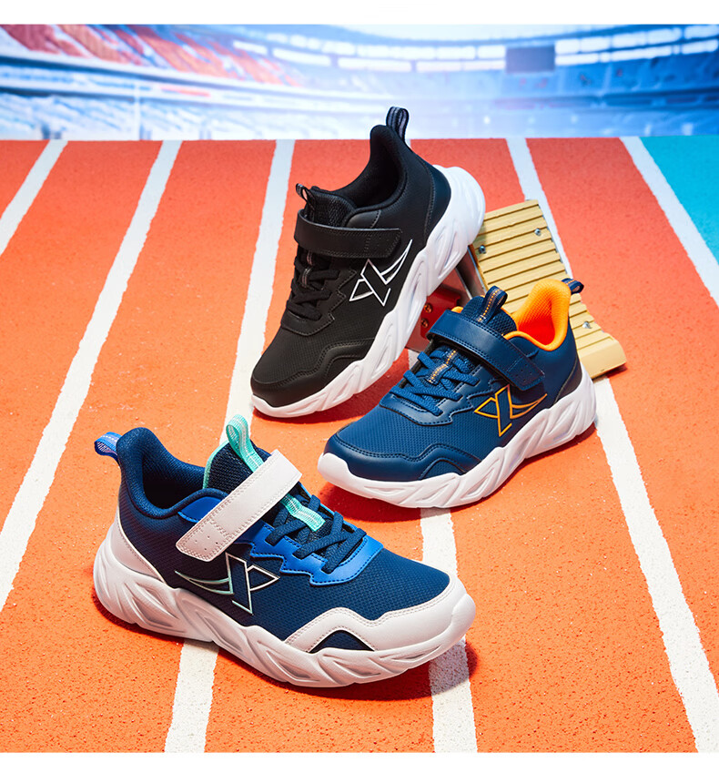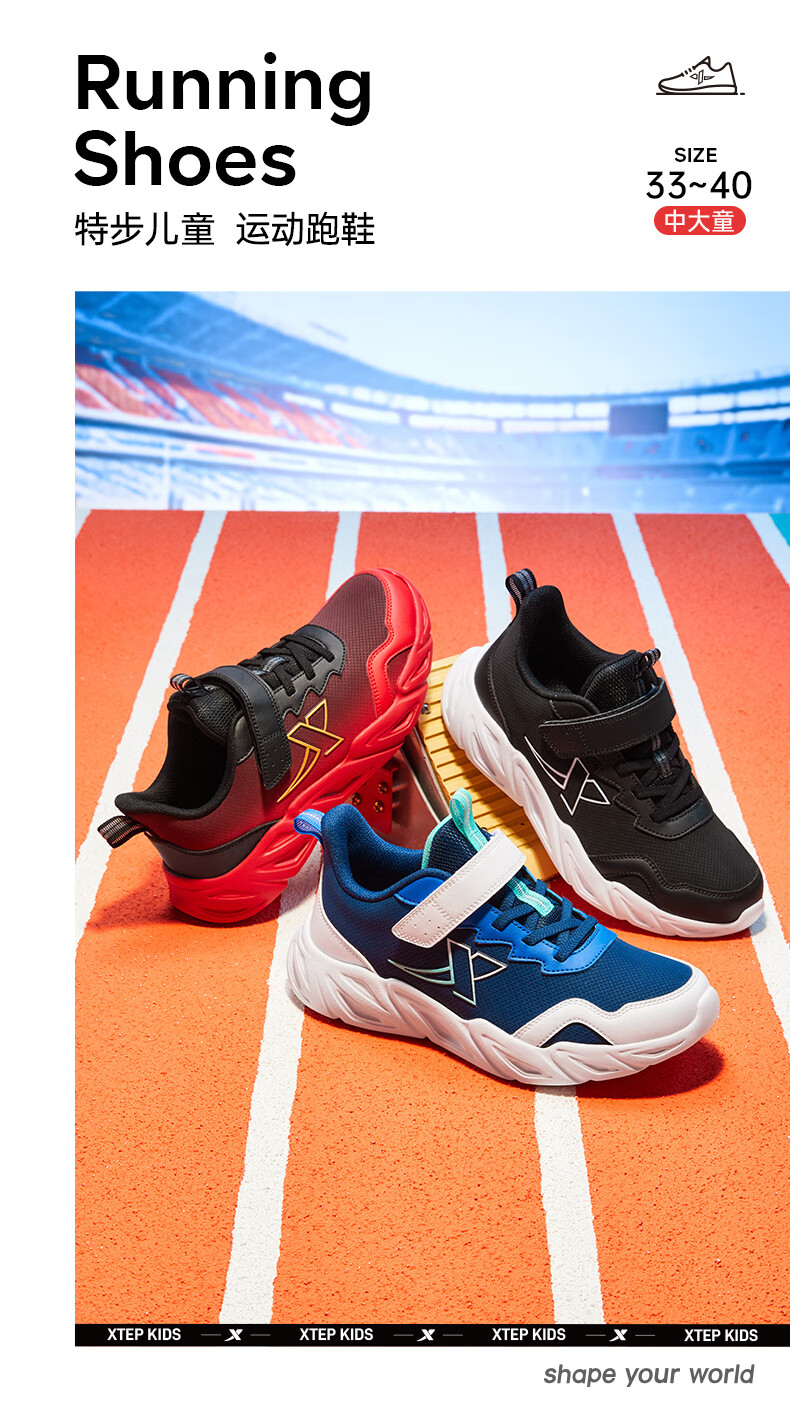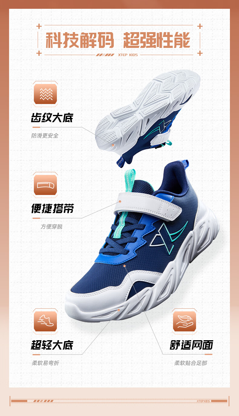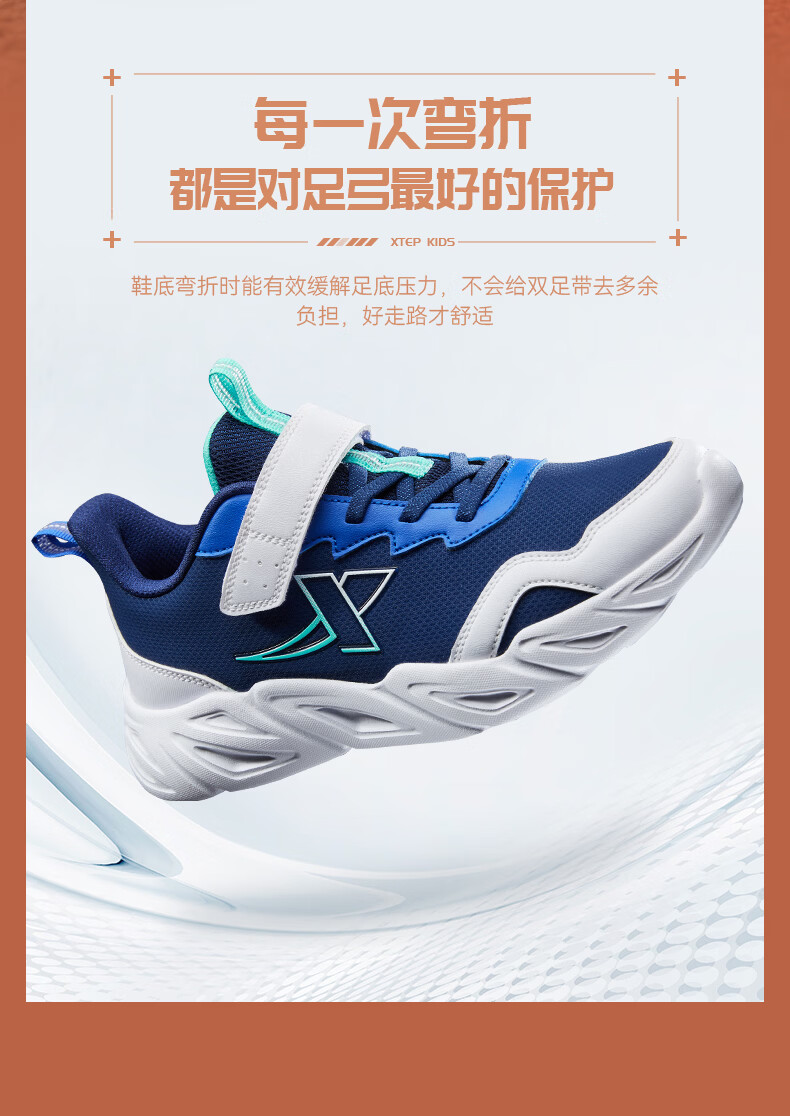 Xtep children's shoes, children's running shoes, boys, middle and large children, four-season mesh leather non-slip cushioning running shoes, Velcro buckle sports running shoes, sail white/green 9550 leather style, size 40