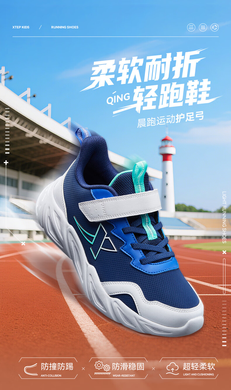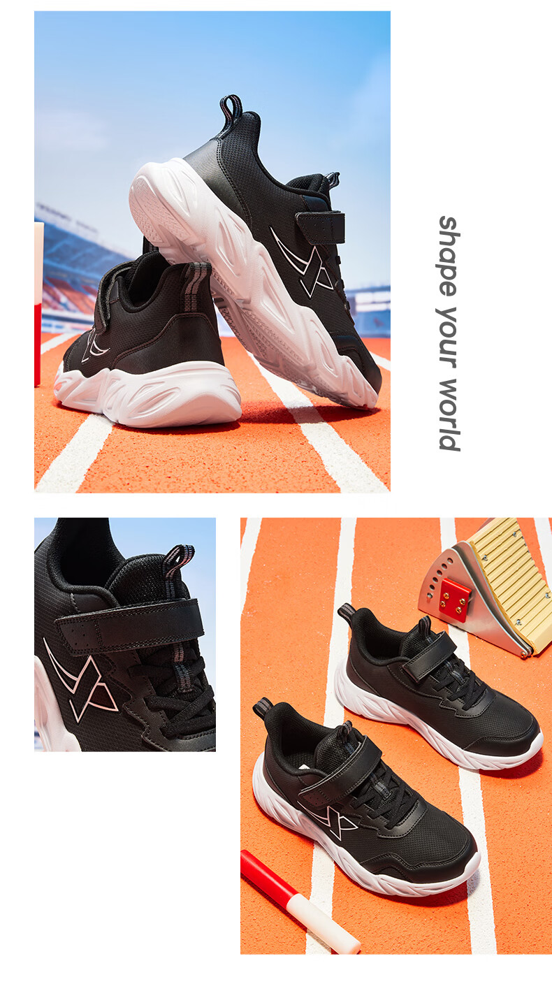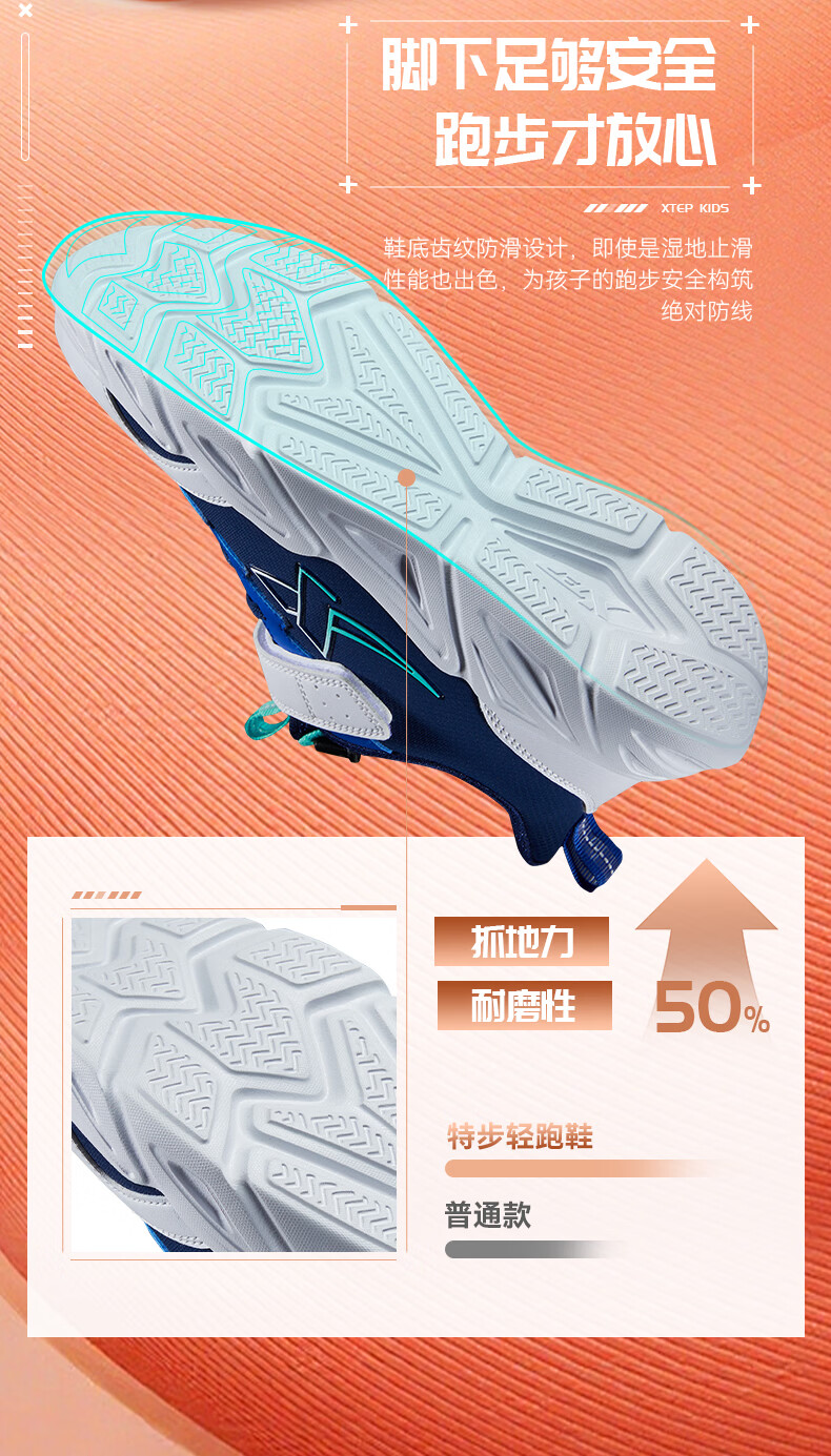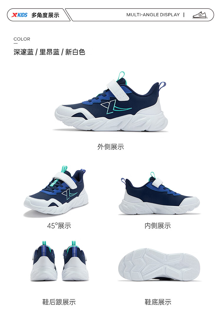 Xtep children's shoes, children's running shoes, boys, middle and large children, four-season mesh leather non-slip cushioning running shoes, Velcro buckle sports running shoes, sail white/green 9550 leather style, size 40
