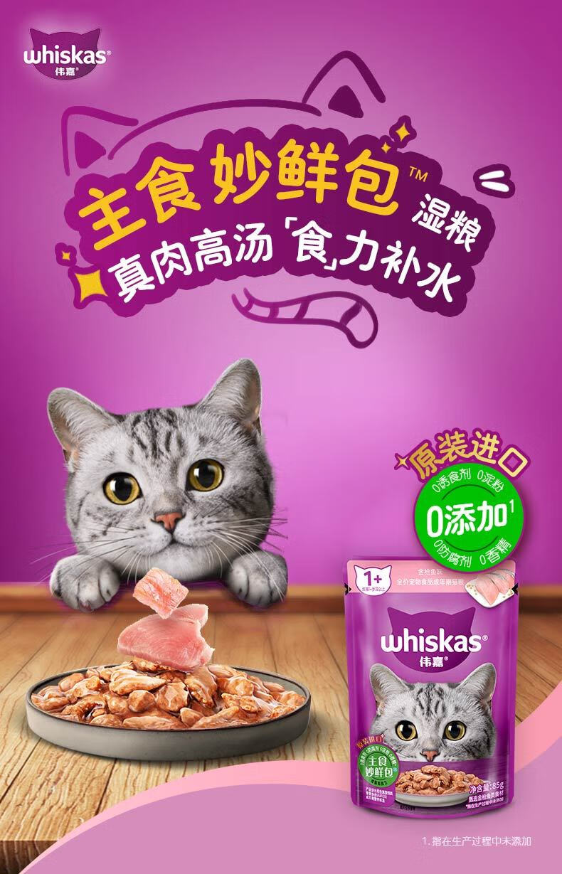 Whiskas Miaoxian Bao Cat Nutritional Hydration Wet Food Pack Fattening Cat Snack 85gX12 Pack oo Adult Cat Tuna Flavor