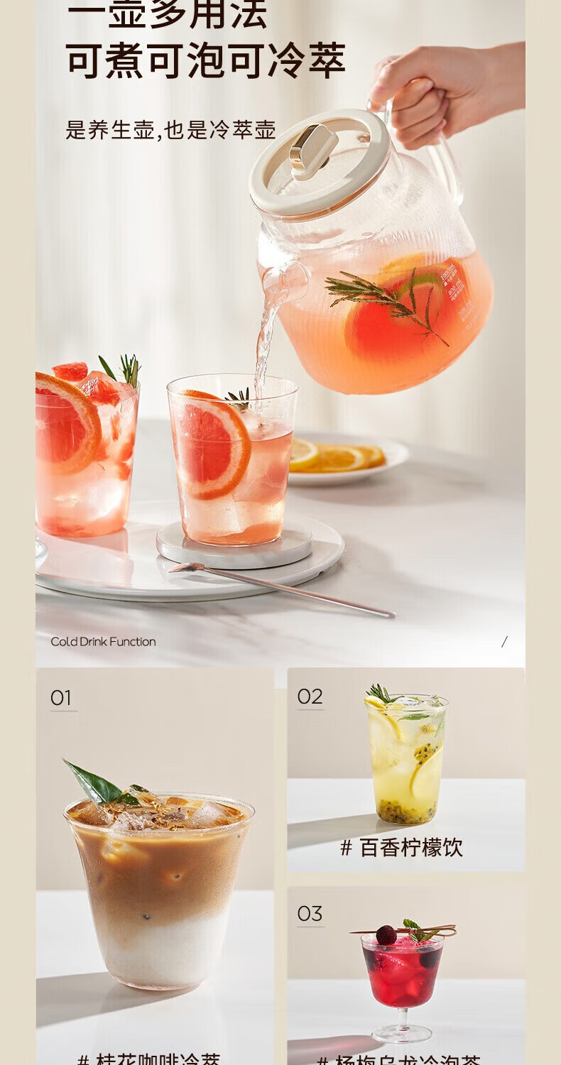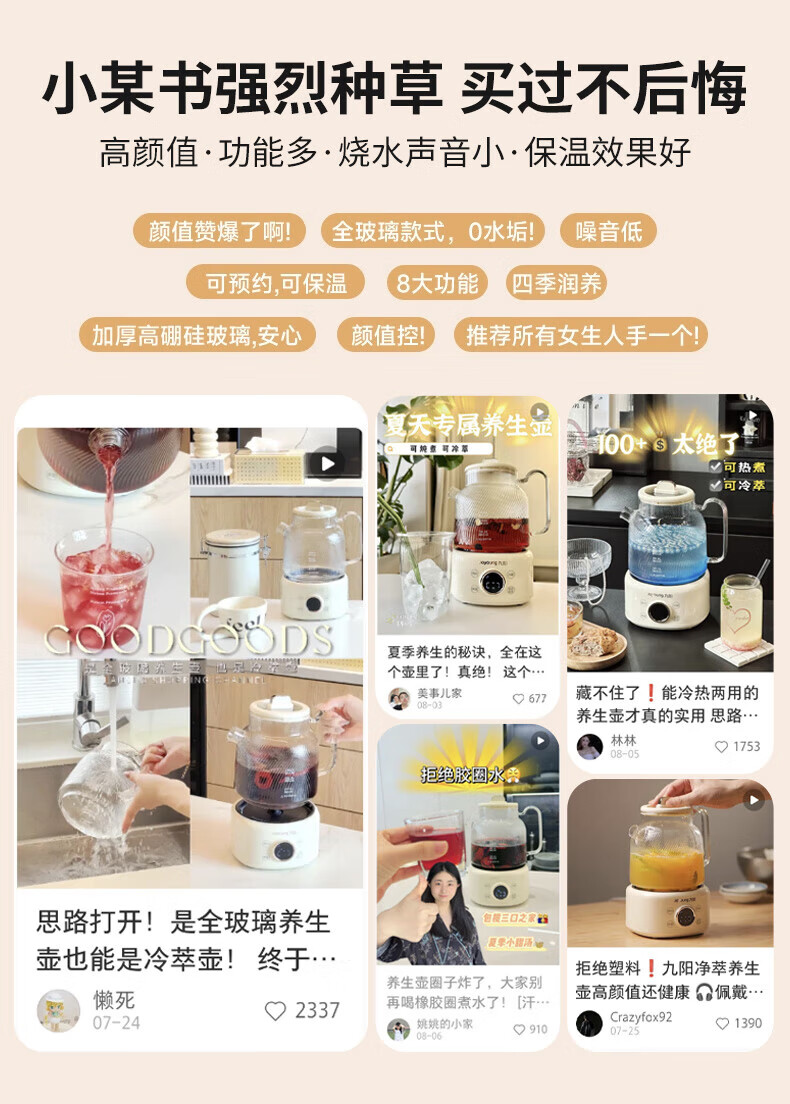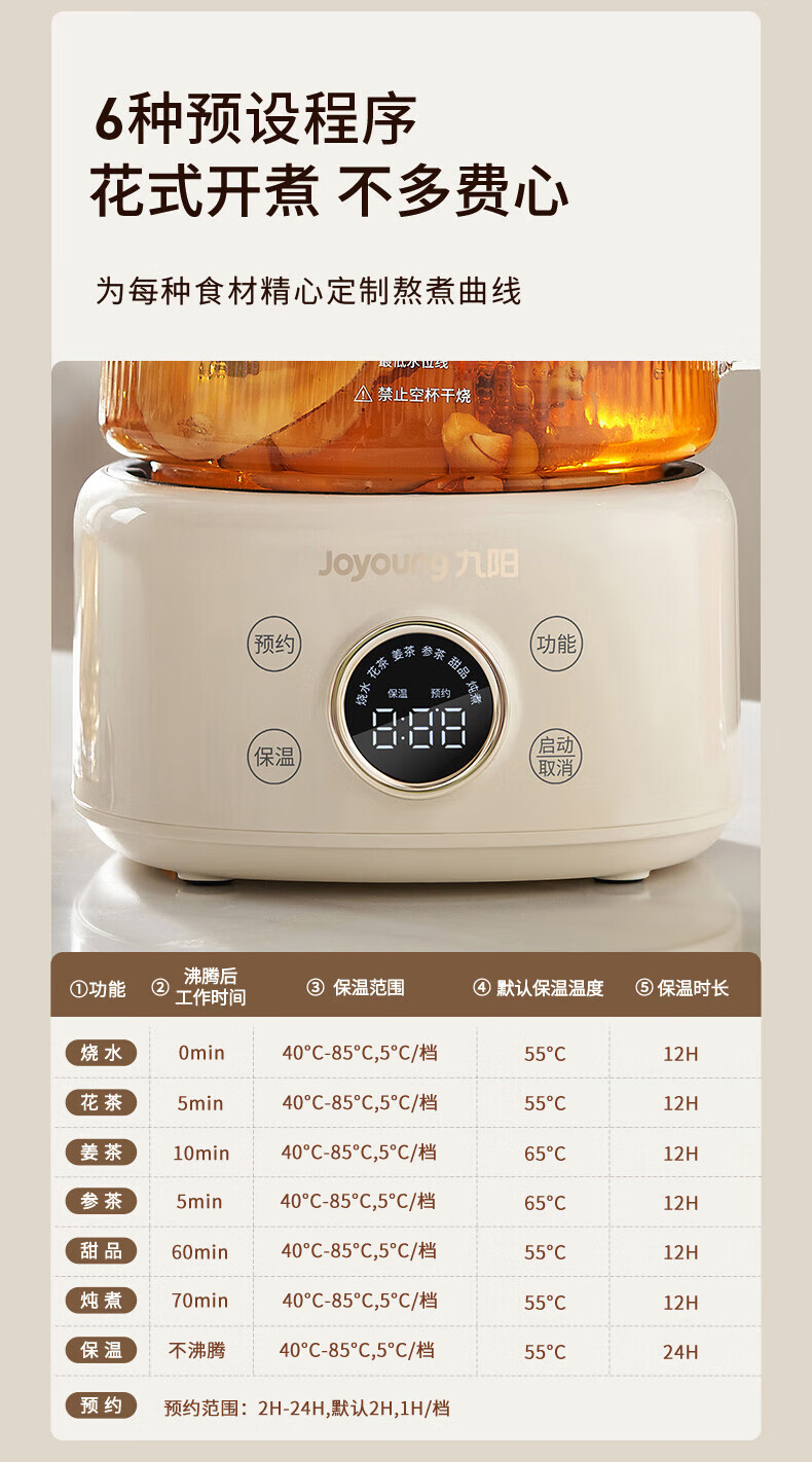 Joyoung all-glass health kettle, tea kettle, office floral teapot, health kettle, stew pot all in one, mini health cup, electric stew cup, electric heating cup WY101, 24H appointment keeping WY101 1L