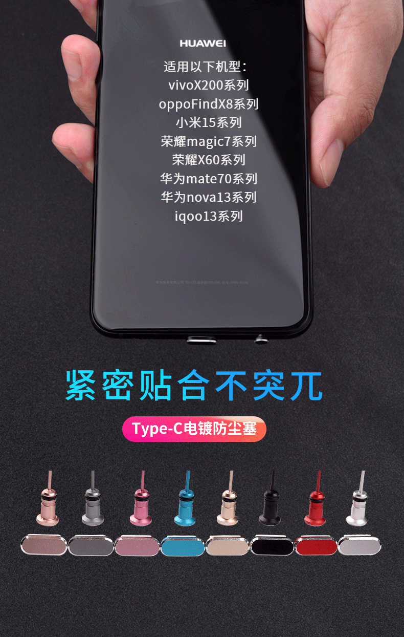 Cancel is suitable for Typec mobile phone dust plug vivoX200 Honor 100 universal dust plug dust plug metal charging port plug platinum silver Type-C dust plug iqoo13 series