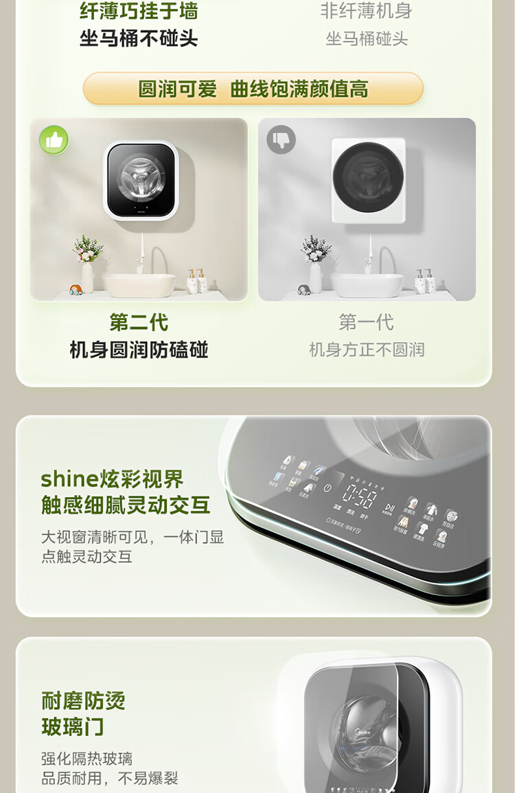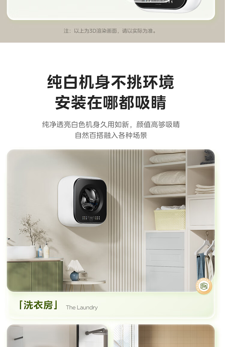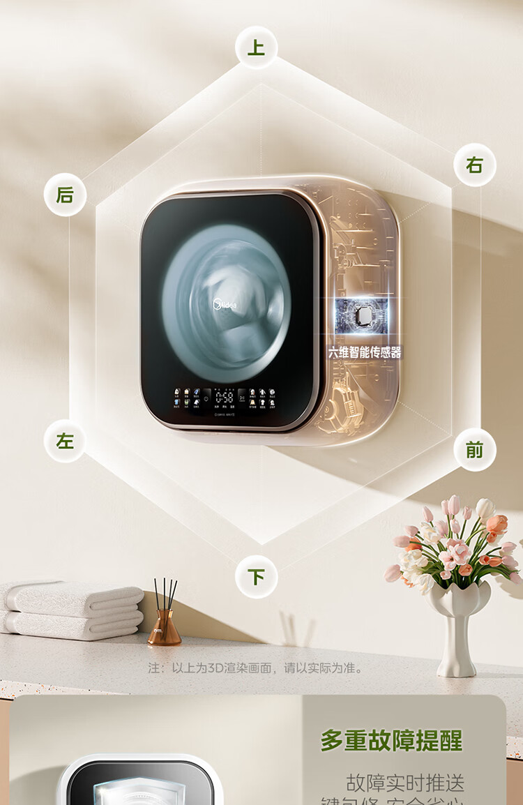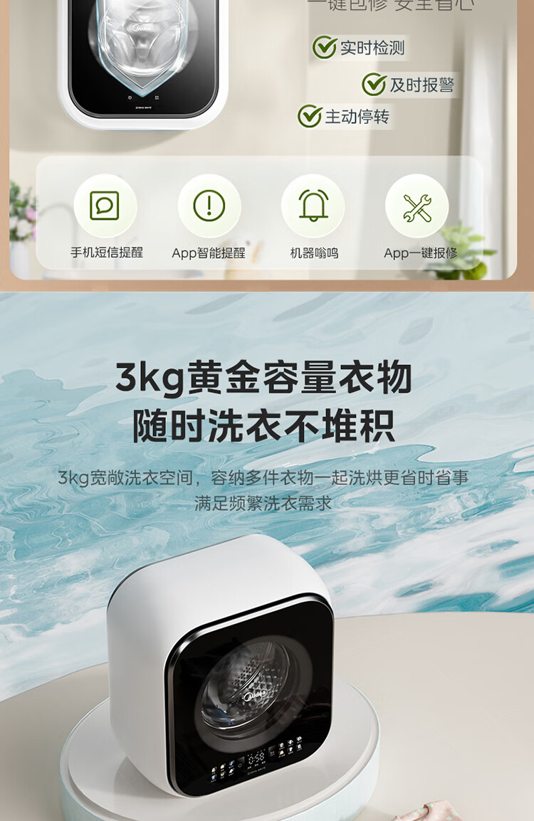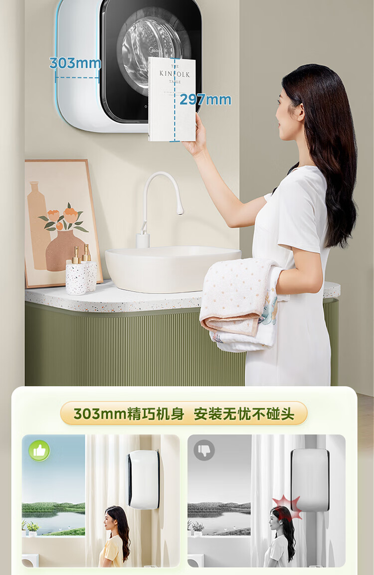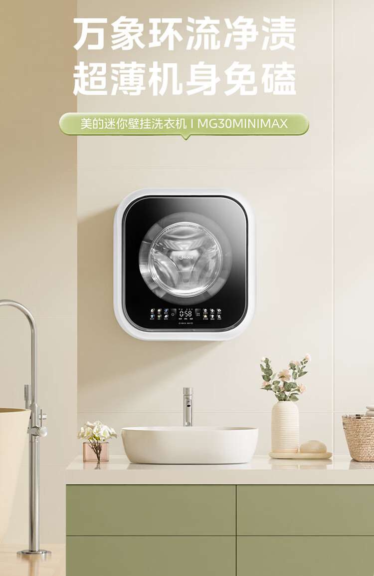 Midea wall-mounted drum washing machine fully automatic household 3kg capacity silver ion sterilization high cleaning ratio 95 high temperature sterilization frequency conversion home appliance replacement subsidy MG30MINIMAX wall-mounted 3kg