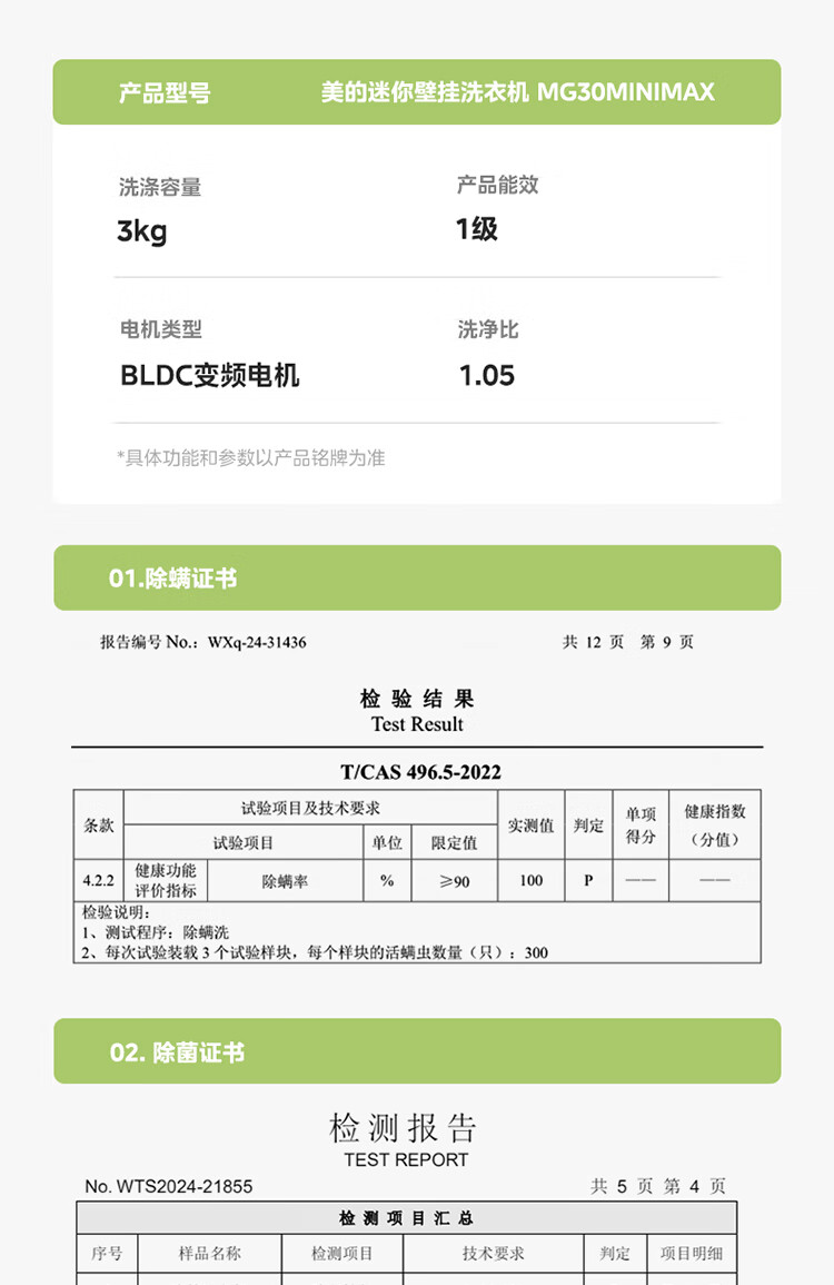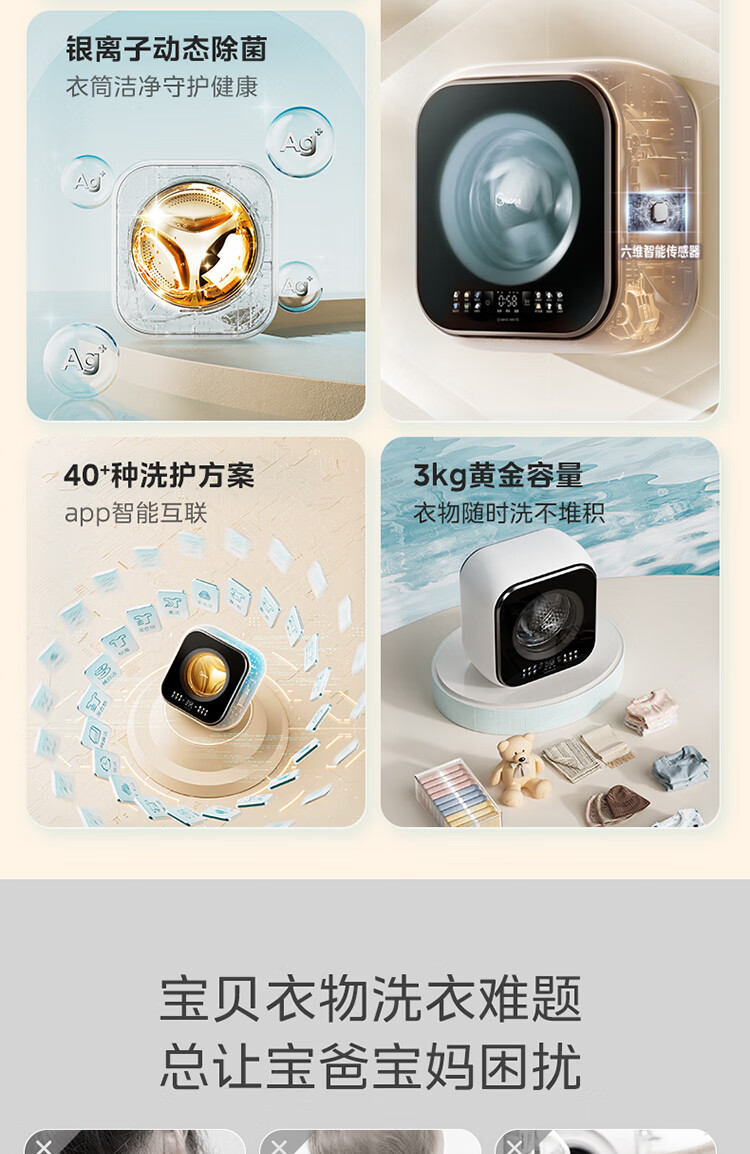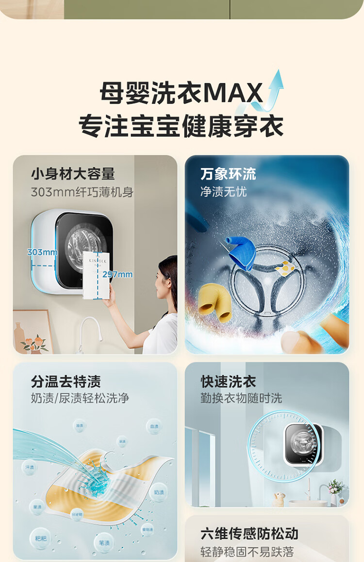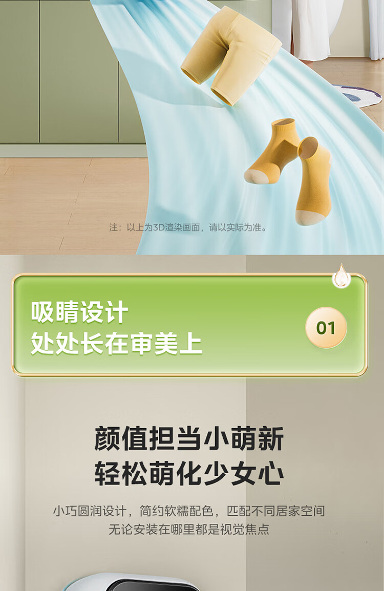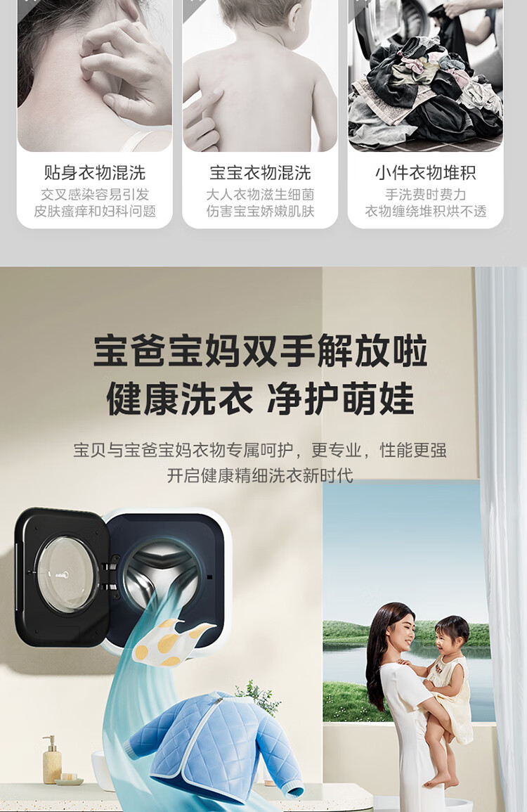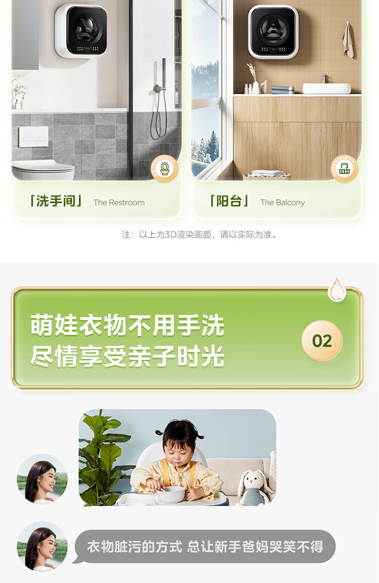 Midea wall-mounted drum washing machine fully automatic household 3kg capacity silver ion sterilization high cleaning ratio 95 high temperature sterilization frequency conversion home appliance replacement subsidy MG30MINIMAX wall-mounted 3kg