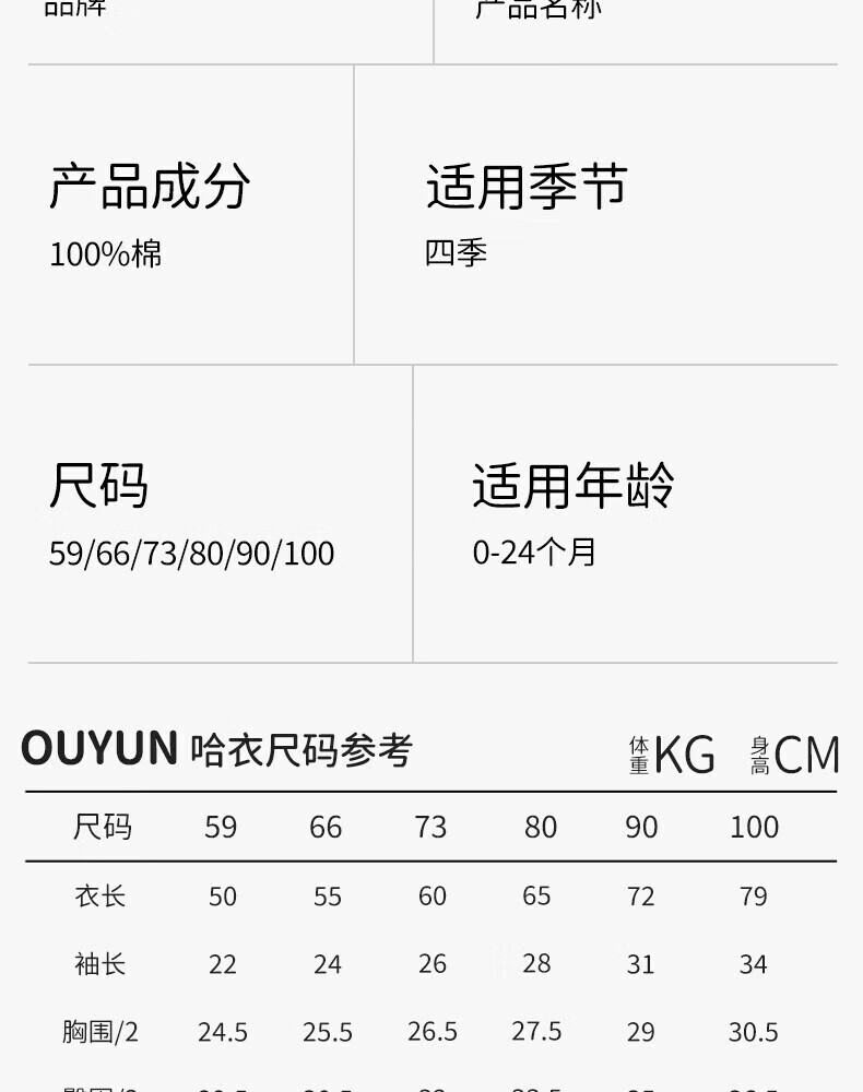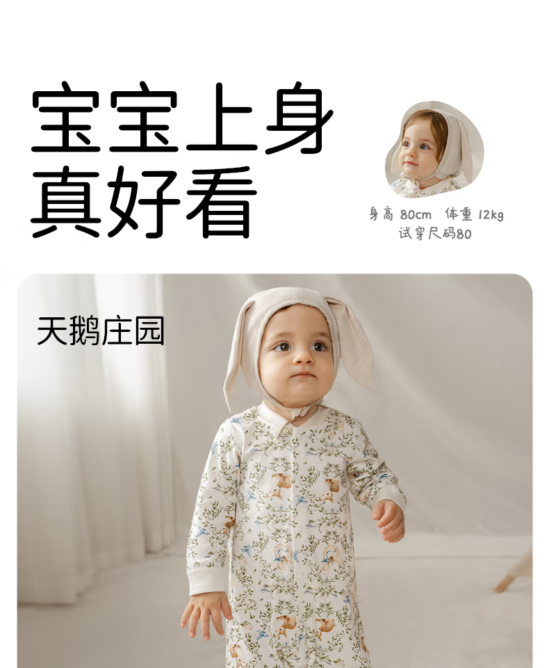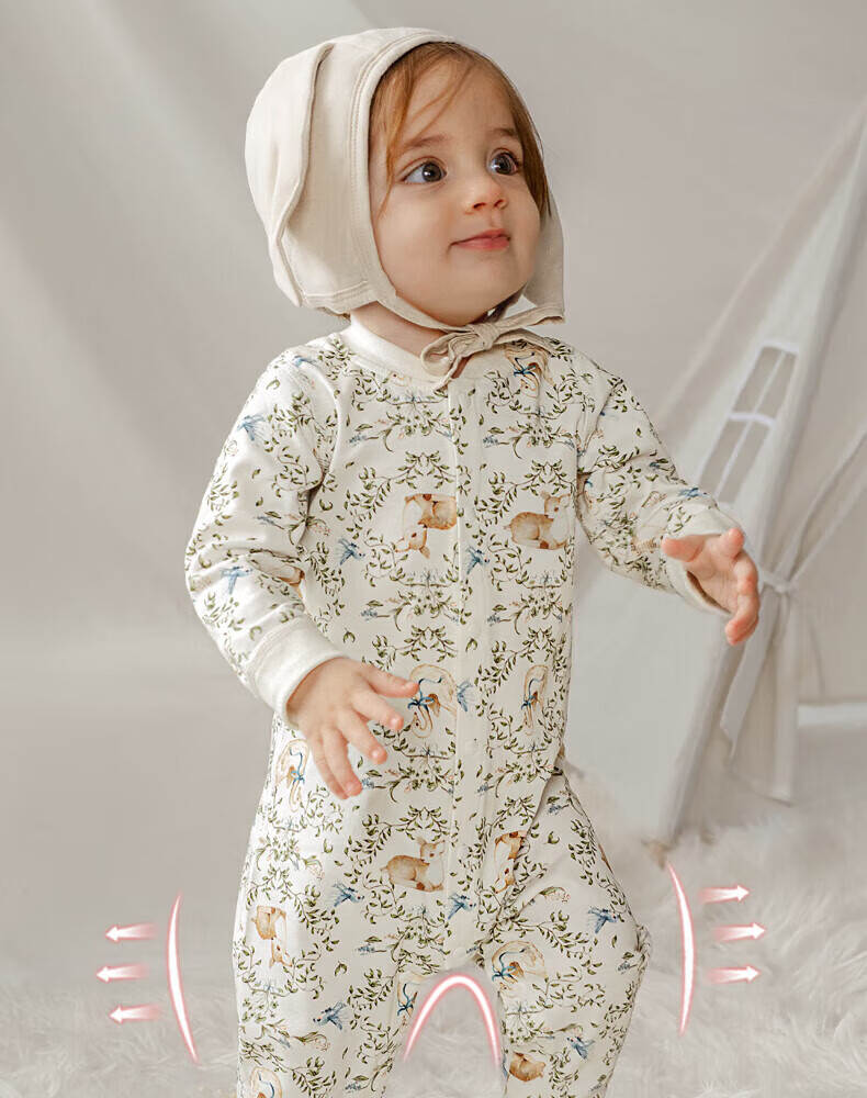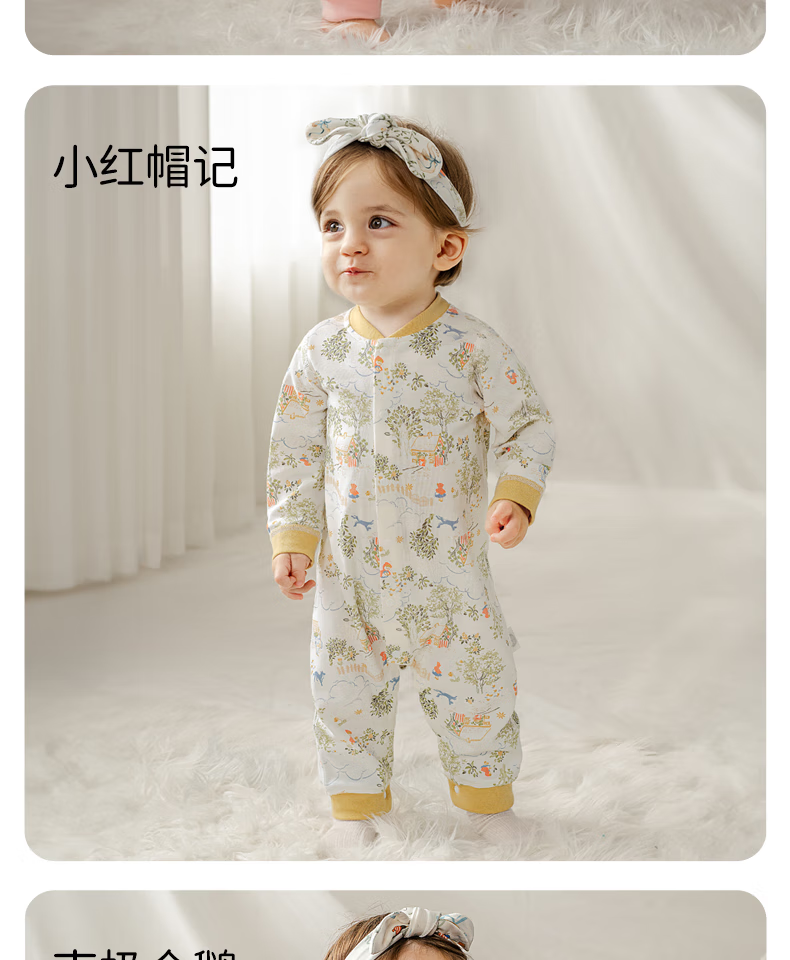 OUYUN baby jumpsuit, baby autumn clothing, pure cotton long-sleeved air-conditioned clothing, four-season romper, men's and women's pajamas, Little Red Riding Hood, pure cotton, skin-friendly-7A antibacterial, 80cm, recommended height 74-80cm