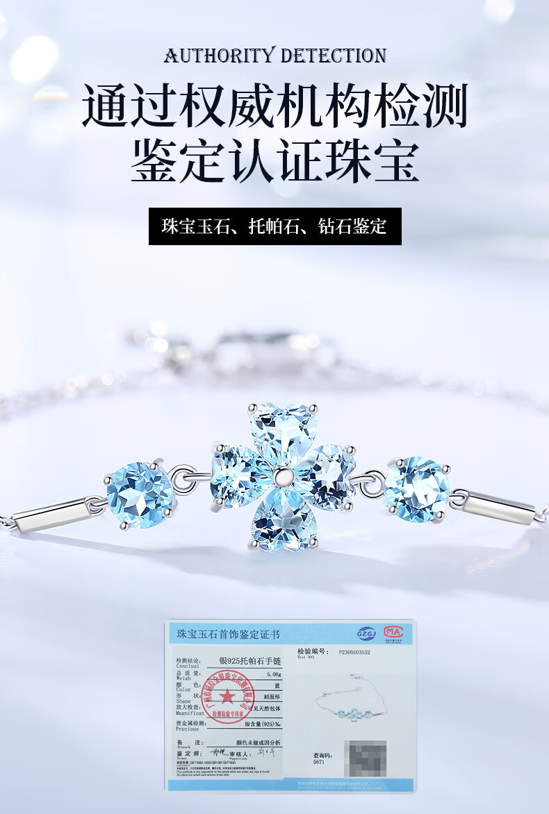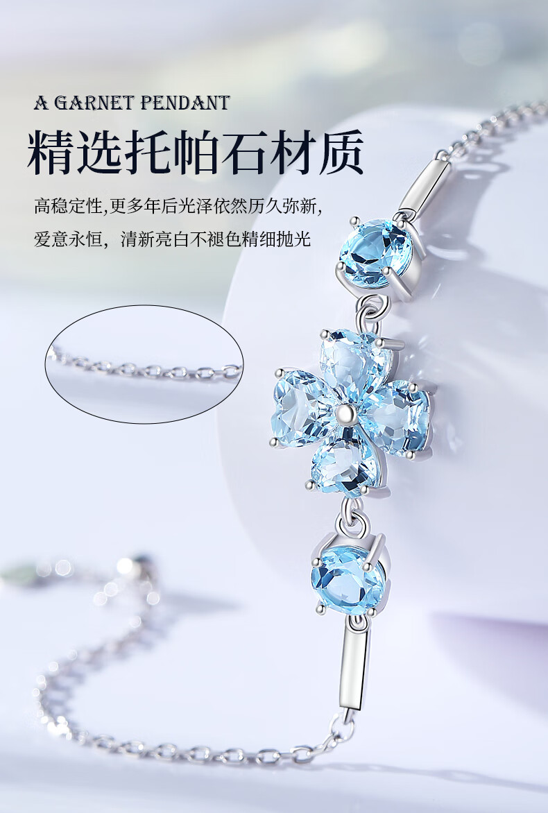Changcai Sky Blue Natural Topaz Bracelet High-end Mom’s Birthday Gift for Girlfriend Design Niche Chain Birthday Gift Hand